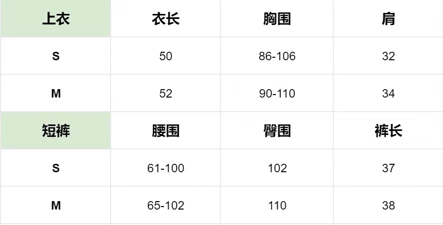 上衣100% 纯棉,短裤82%棉、16%锦纶、2%氨纶,上下的纱线肌理感不同,水洗标都有。