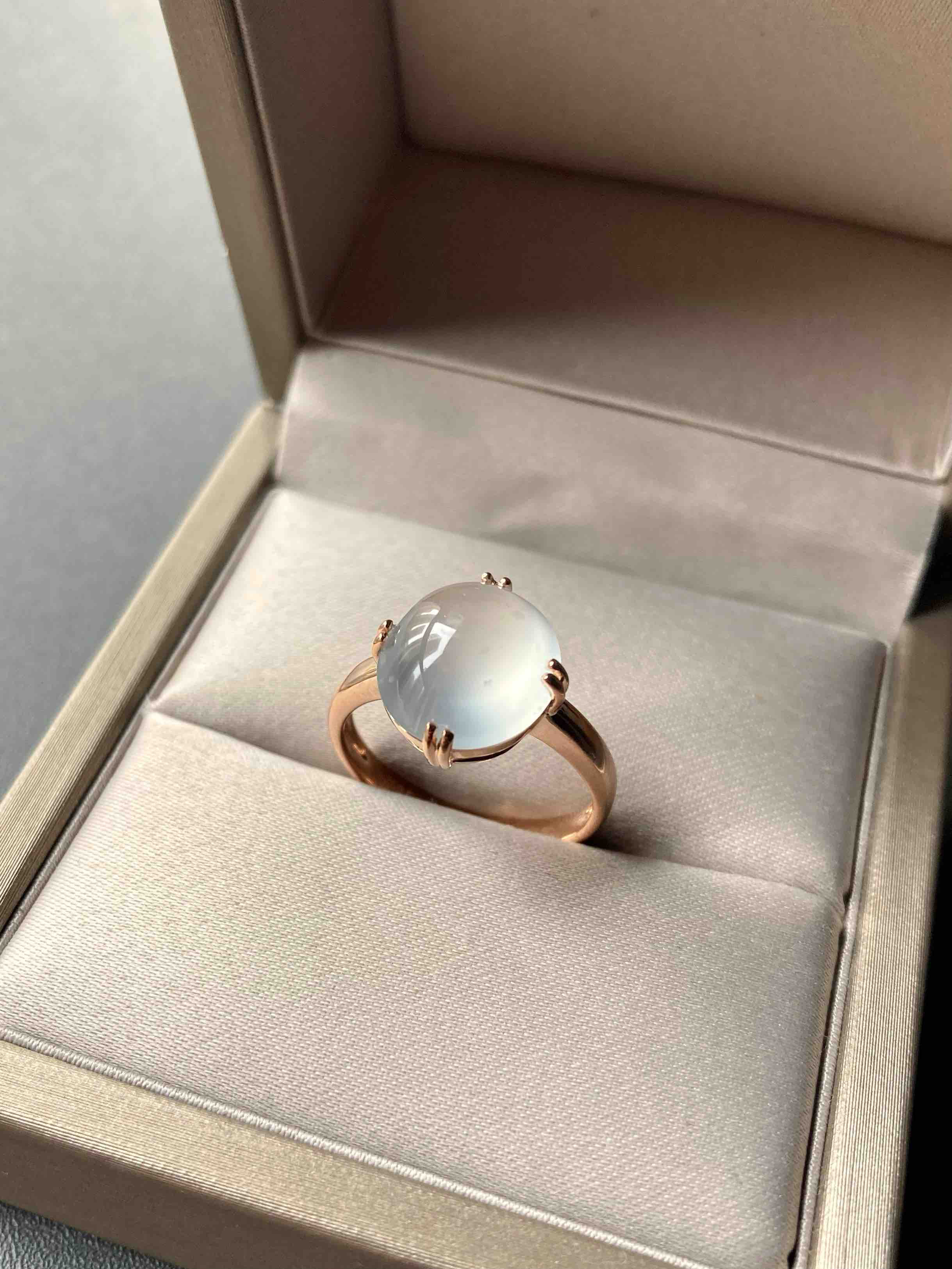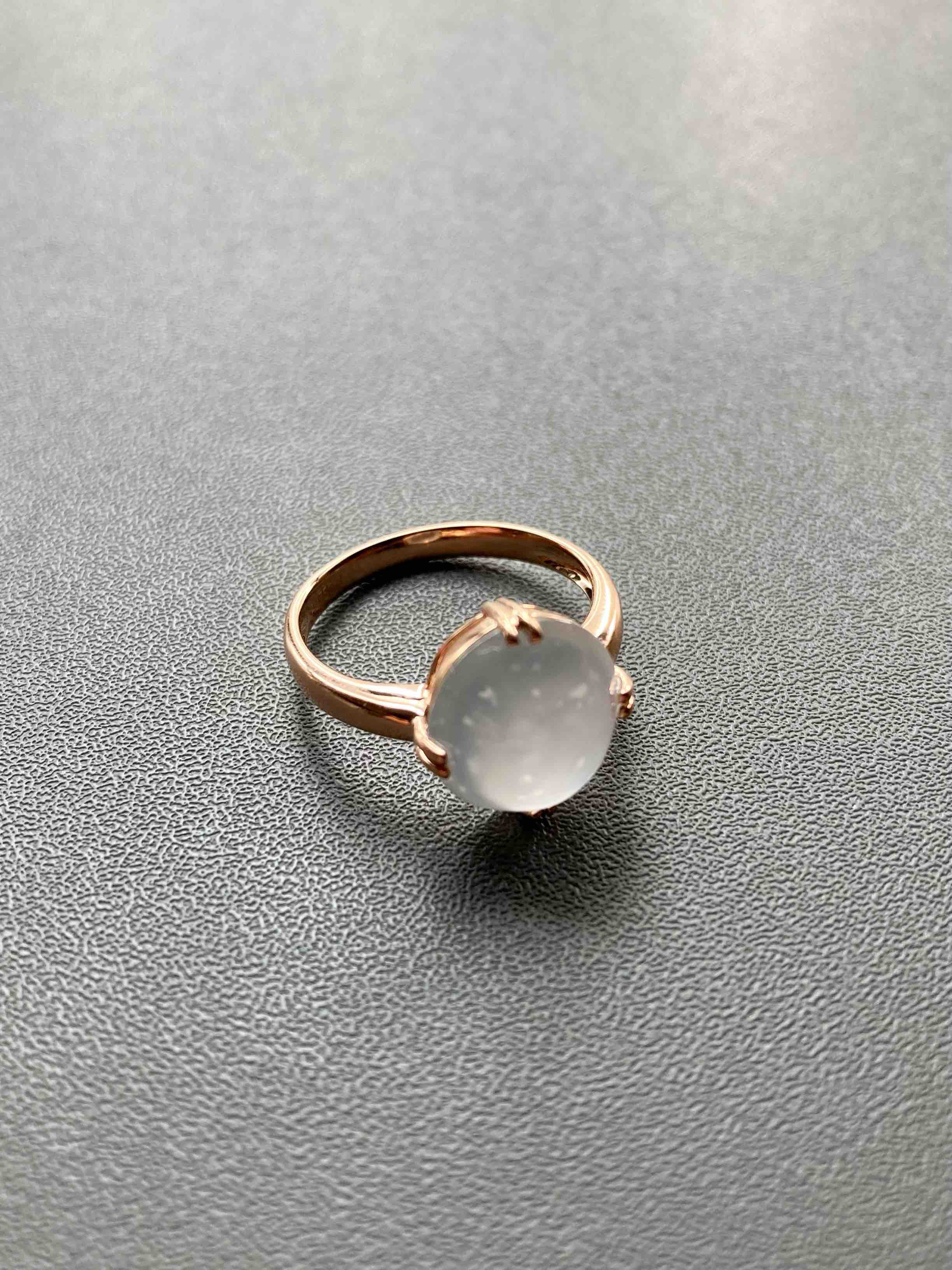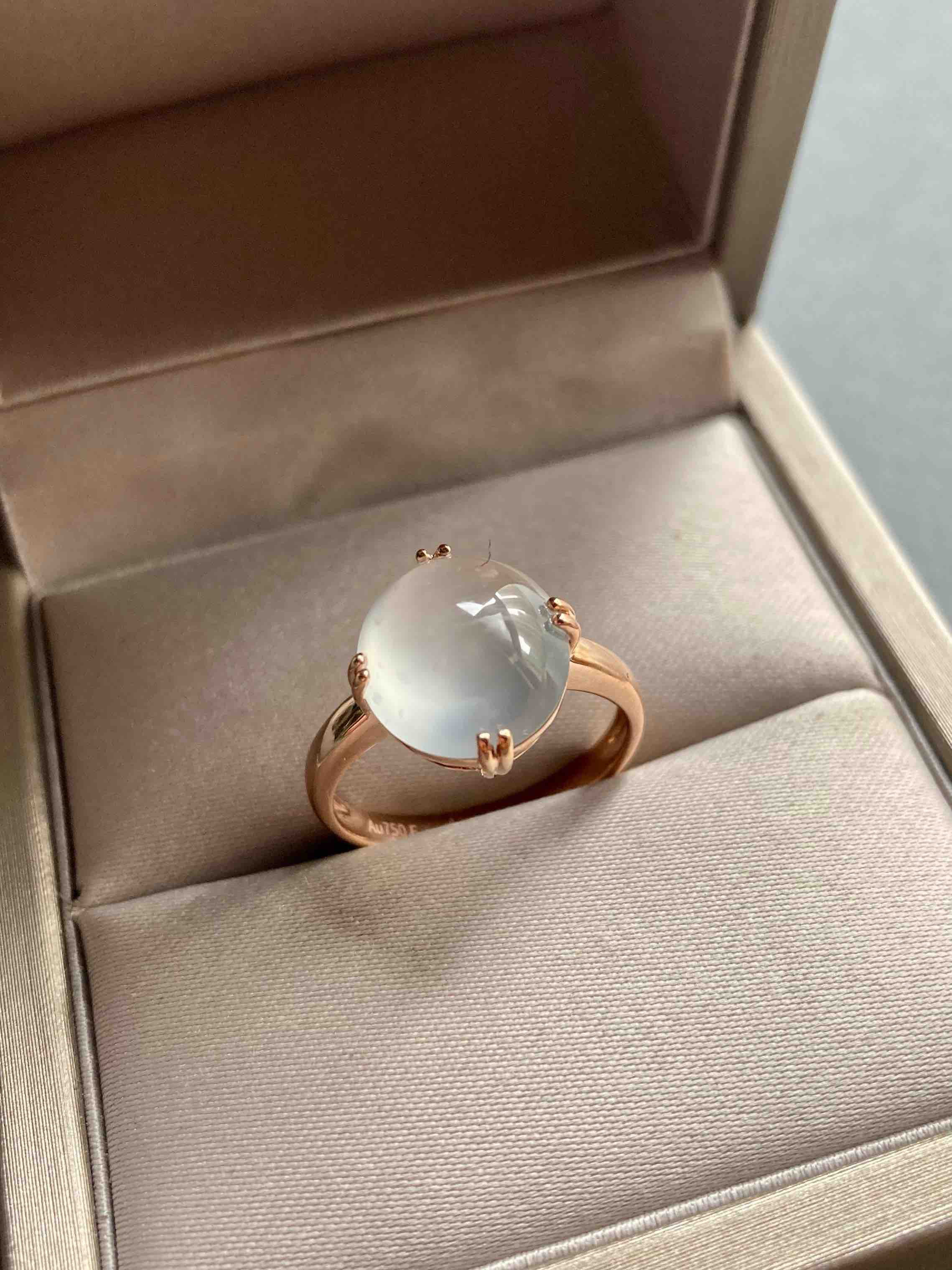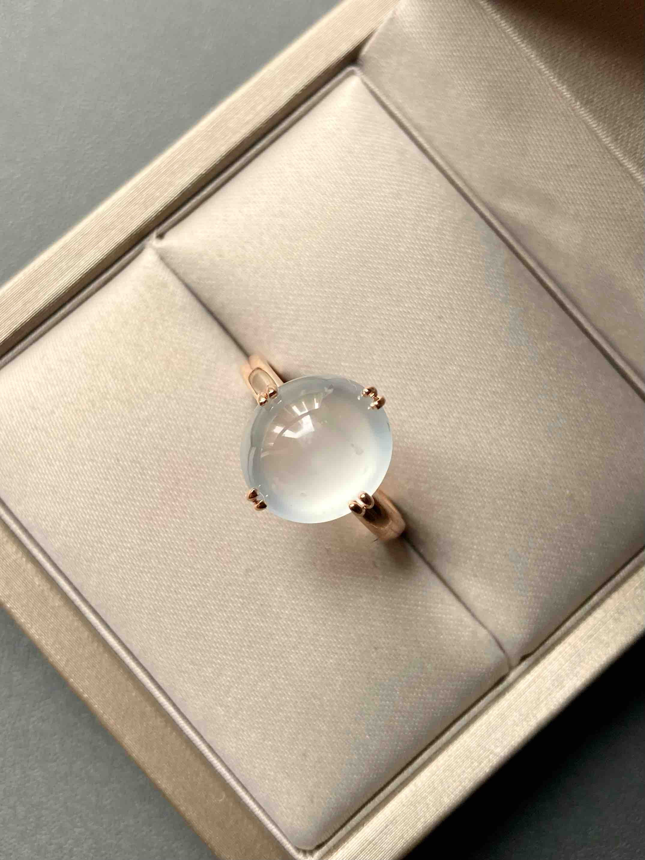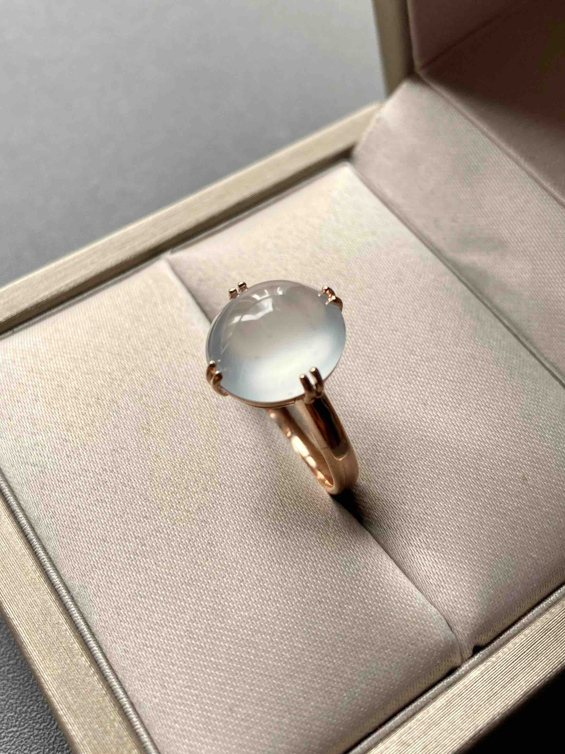玻璃种雪花棉大蛋面戒指18k玫瑰金镶嵌