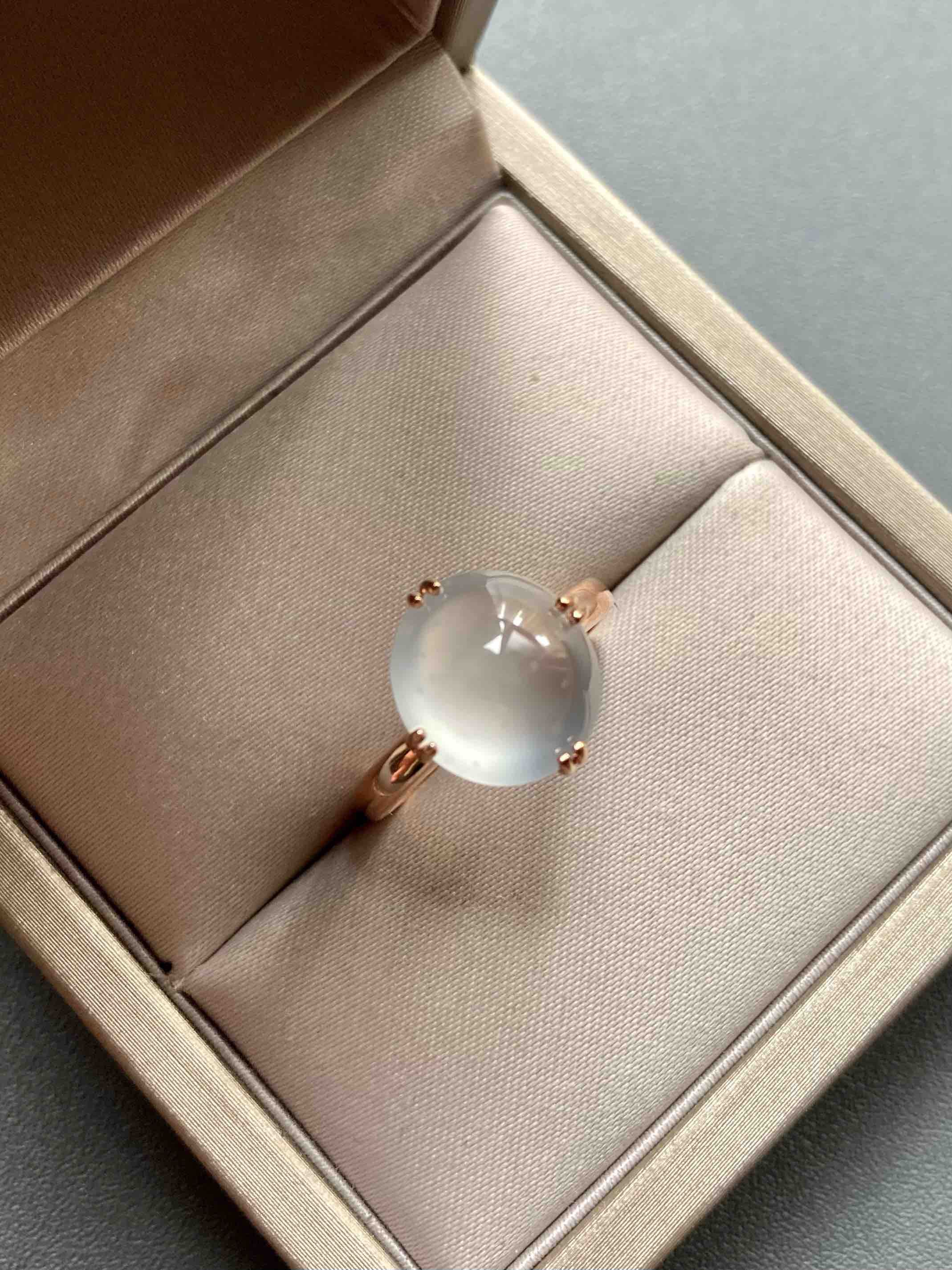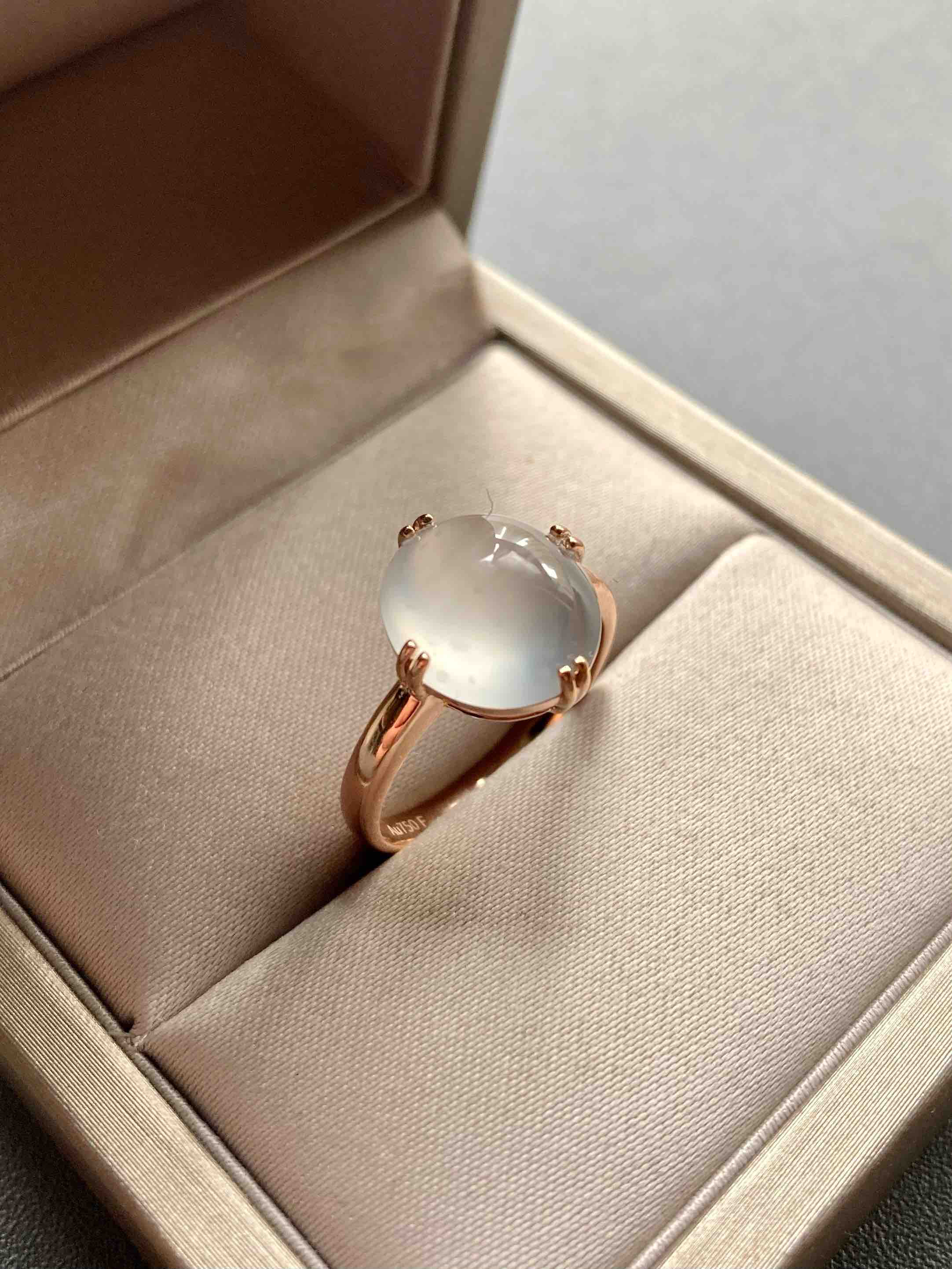 福利时间,禄来家的经典款,玻璃种雪花棉厚庄大蛋面戒指,18k玫瑰金镶嵌,蛋面厚实饱满,荧光四射,镶嵌款式大气简约,蛋面12×11.2×5.1mm,价格还不到五位数,明漏,快捡,圈号13可改大小