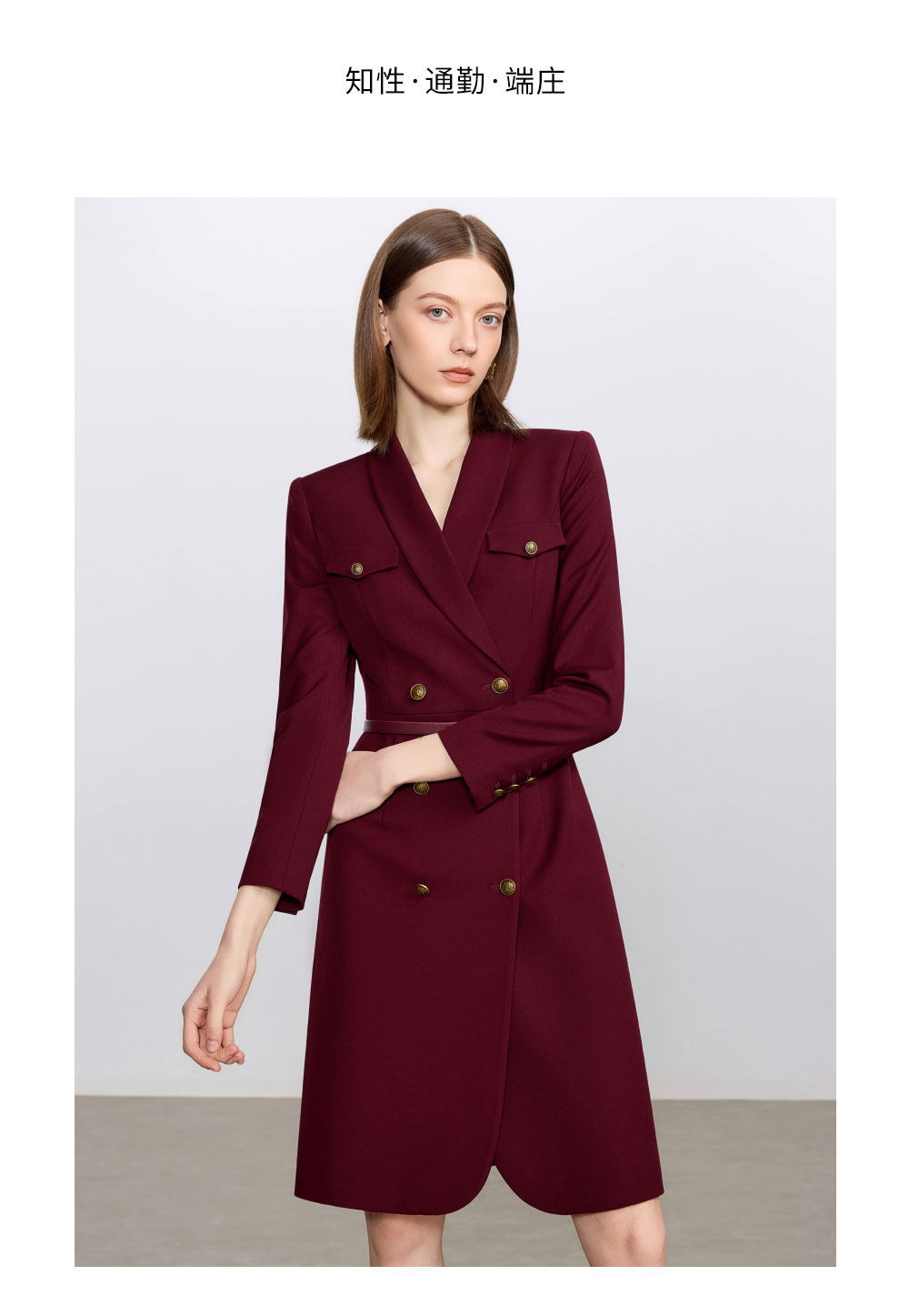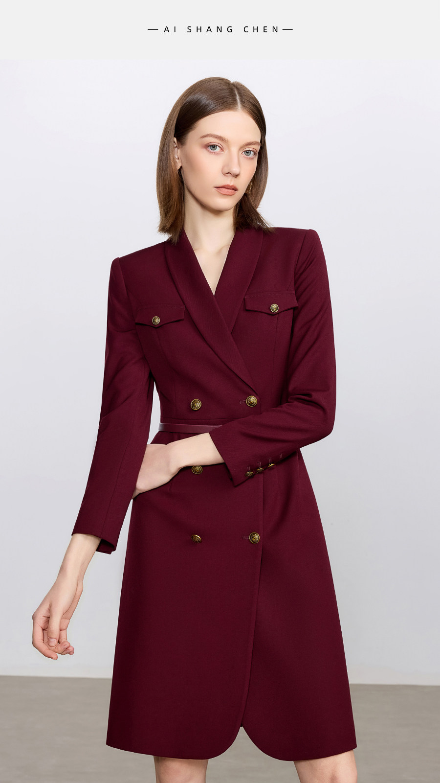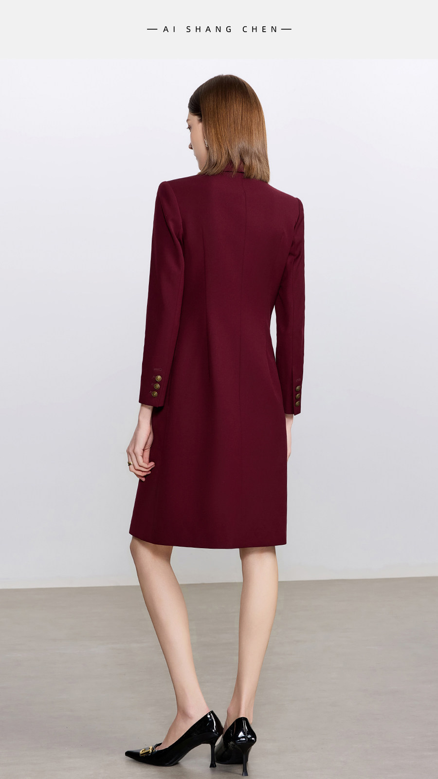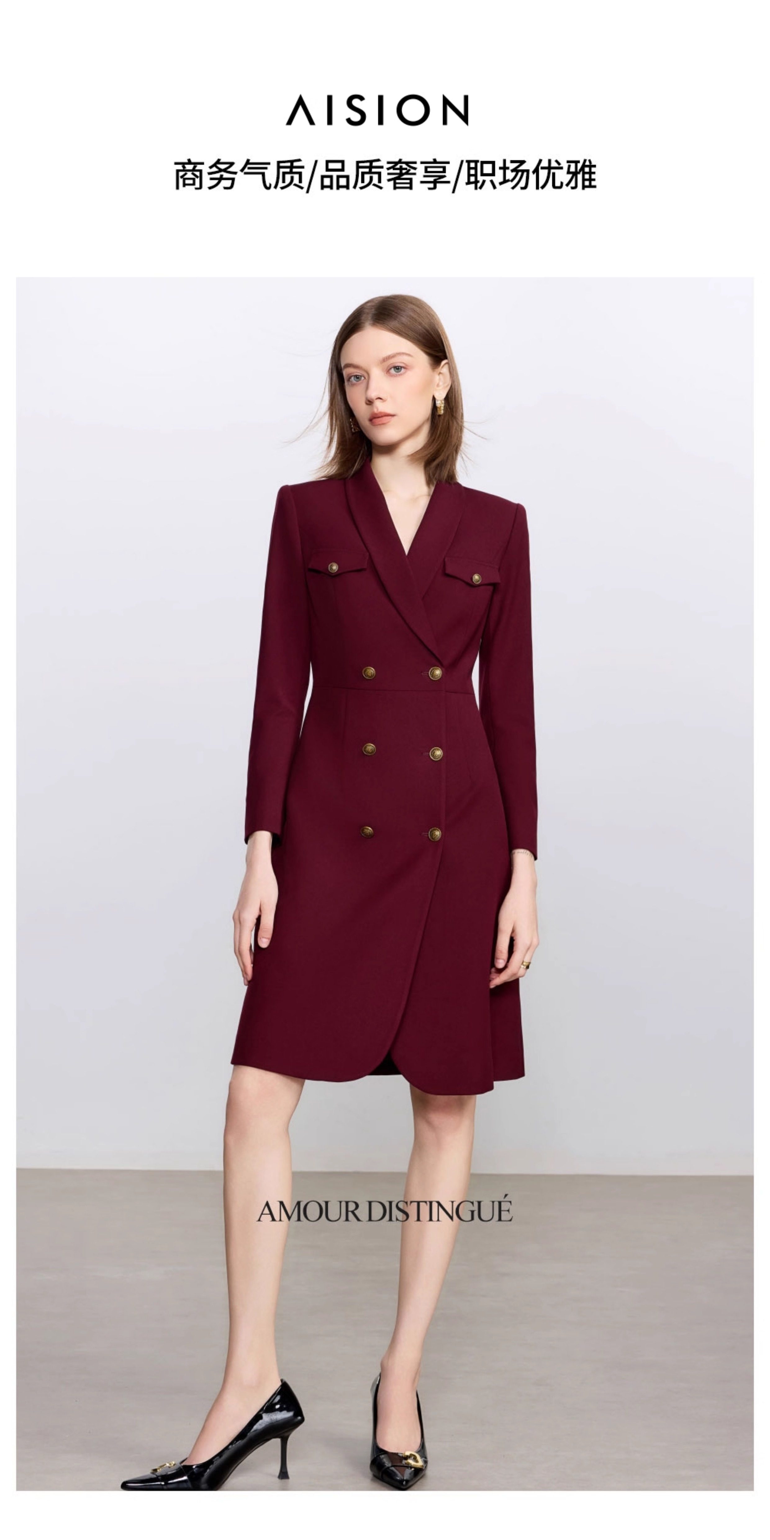 艾尚臣酒红色西装连衣裙女正式场合主持人西装裙女神范通勤职业装