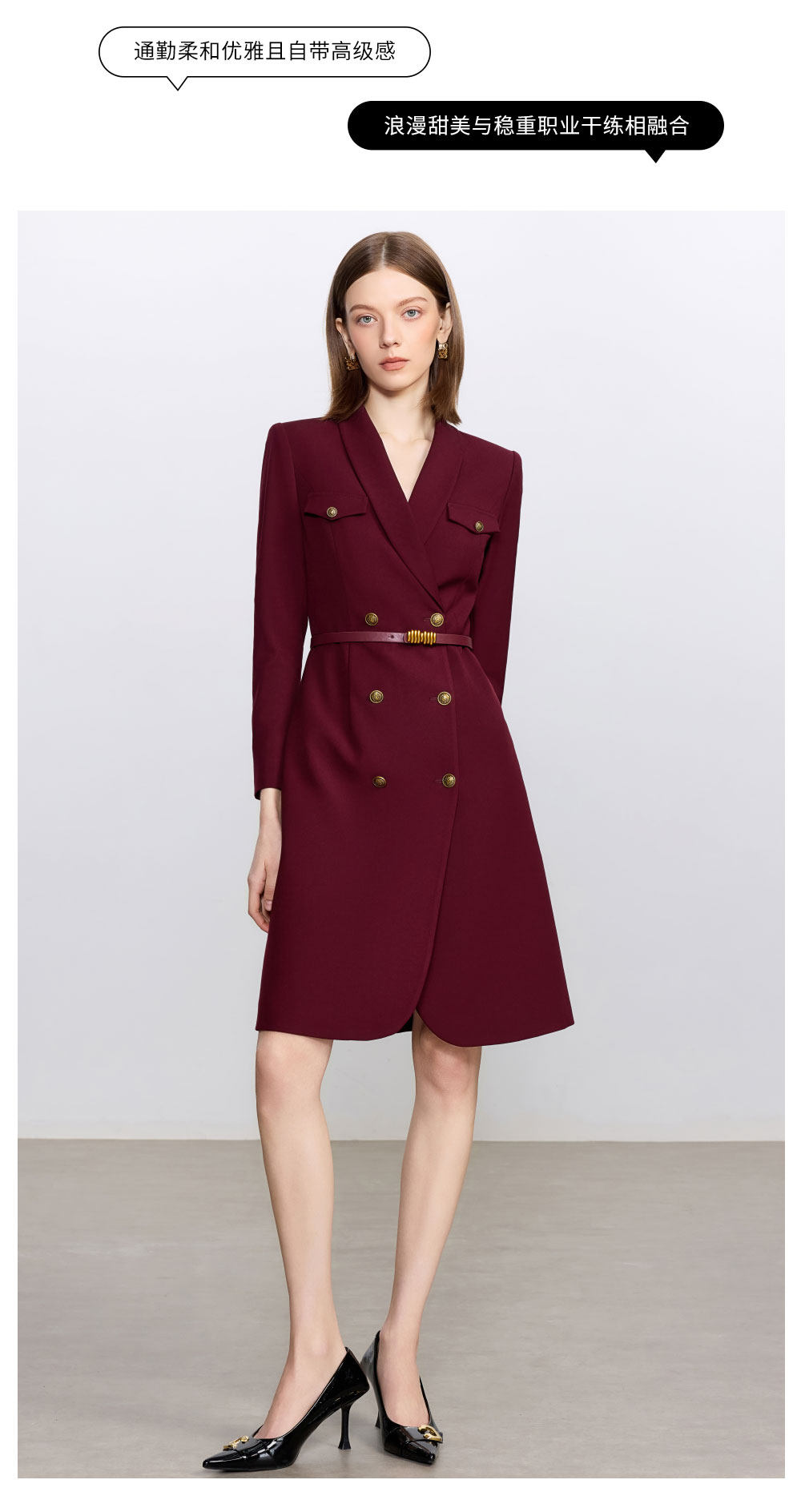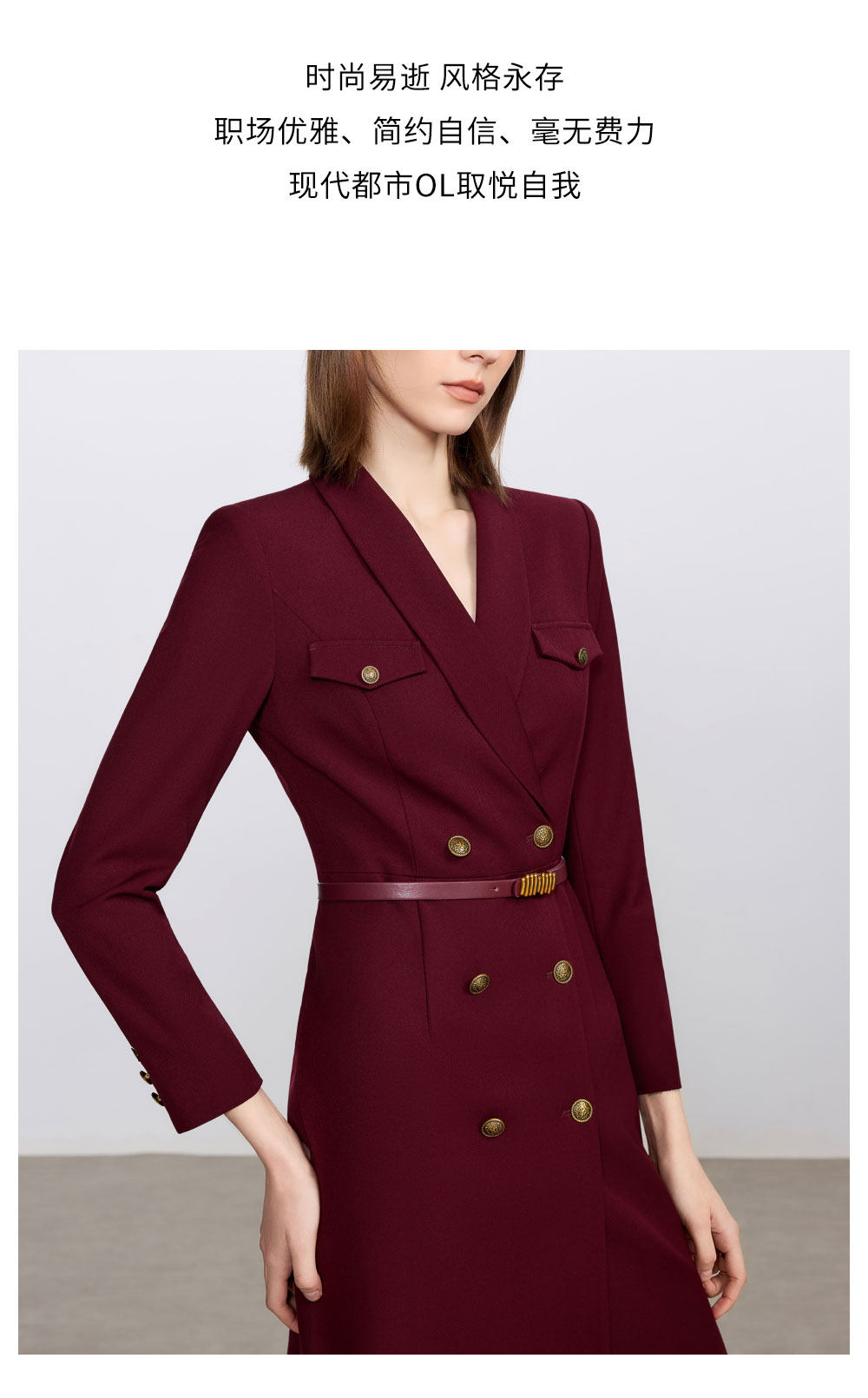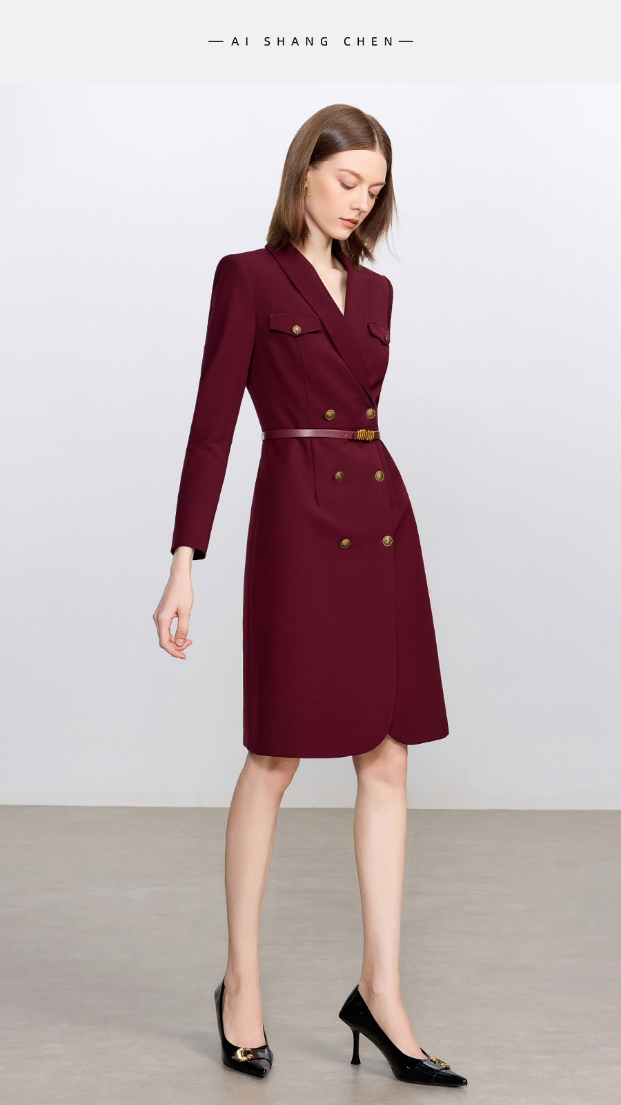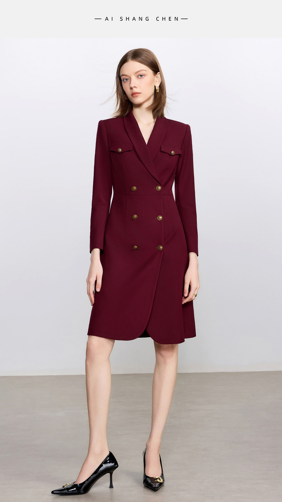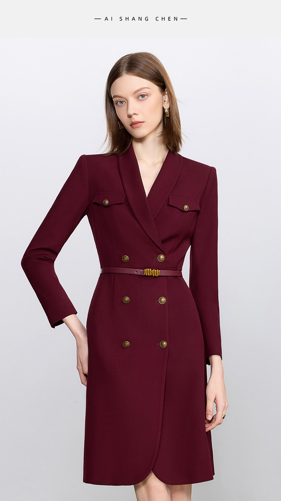 艾尚臣酒红色西装连衣裙女正式场合主持人西装裙女神范通勤职业装