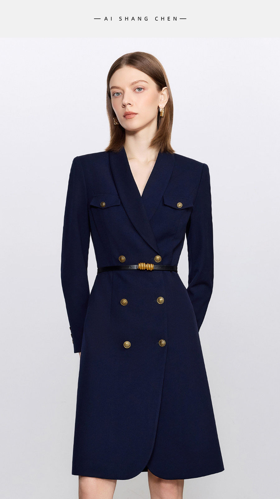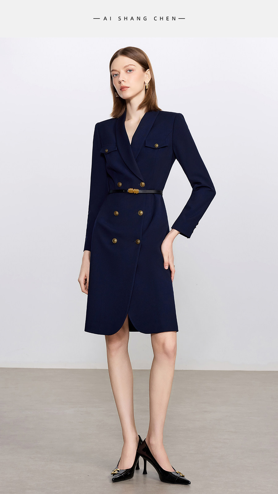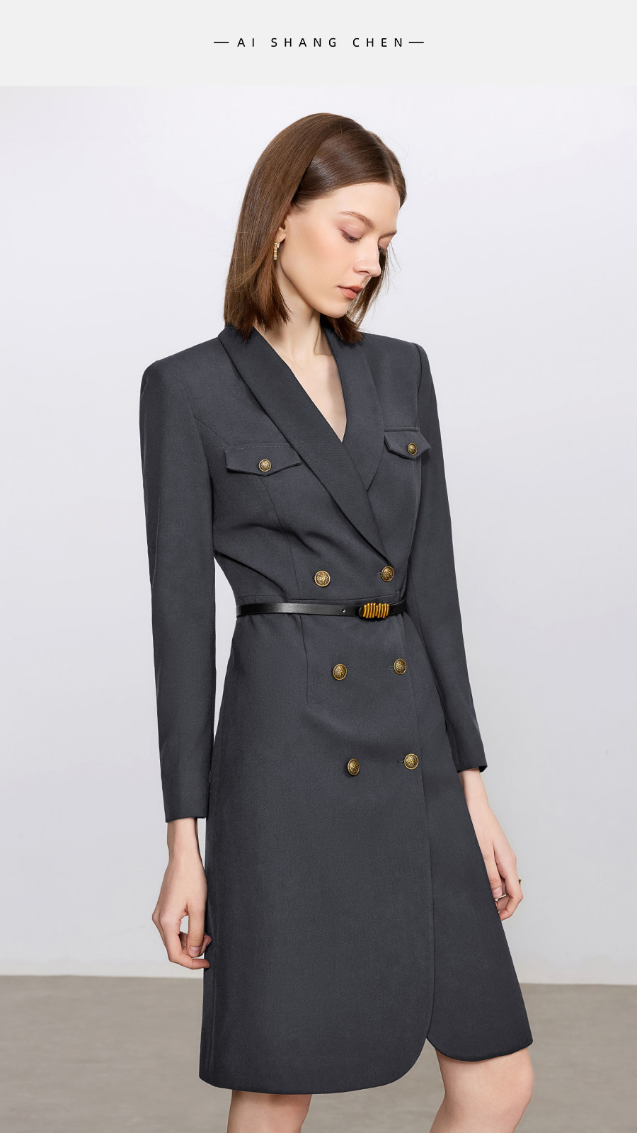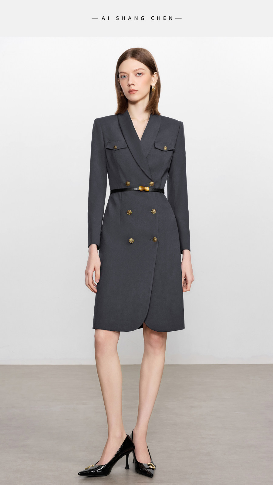 艾尚臣酒红色西装连衣裙女正式场合主持人西装裙女神范通勤职业装