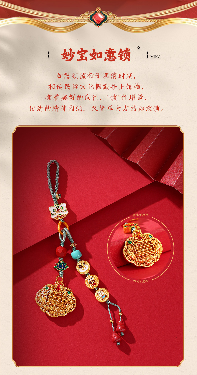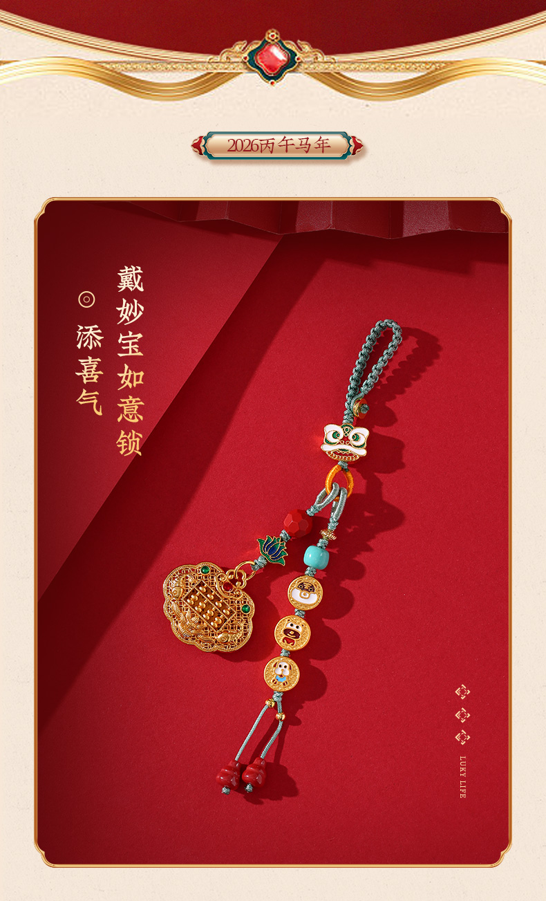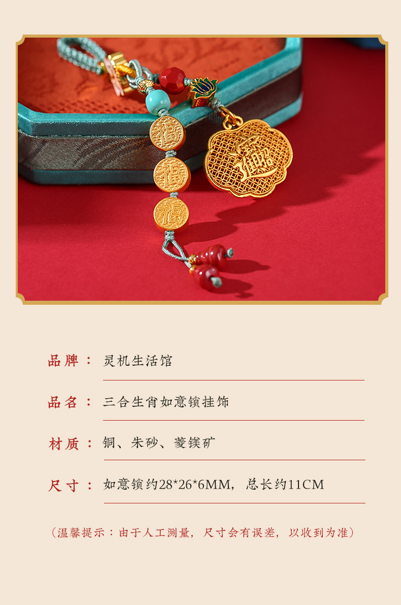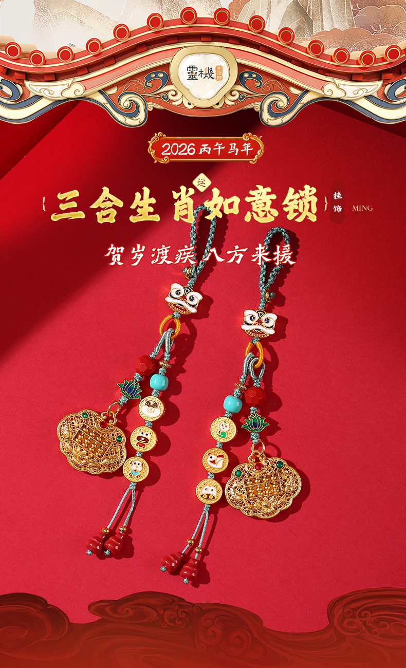 灵机生活馆 三合生肖如意锁挂饰沙金钥匙扣包包扣 贵人人缘
