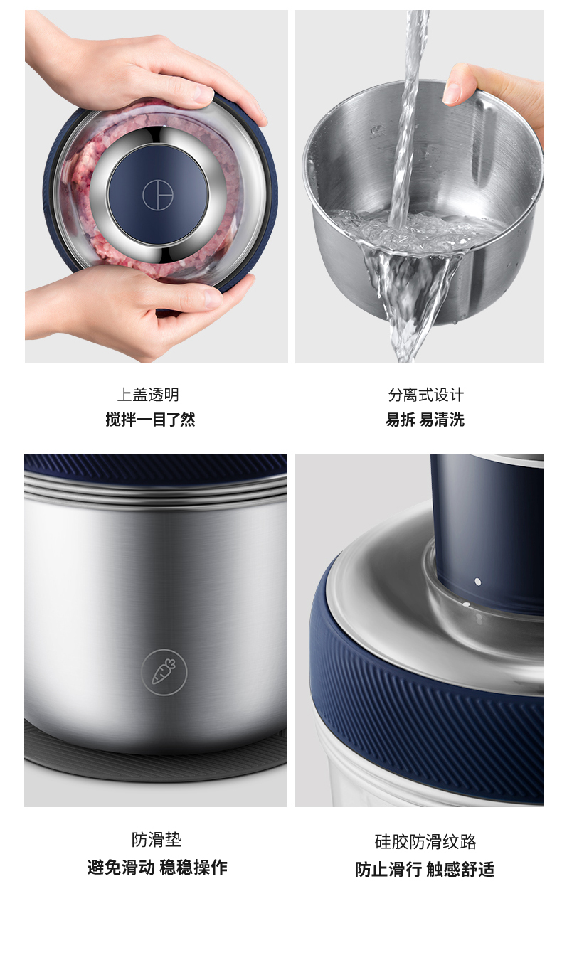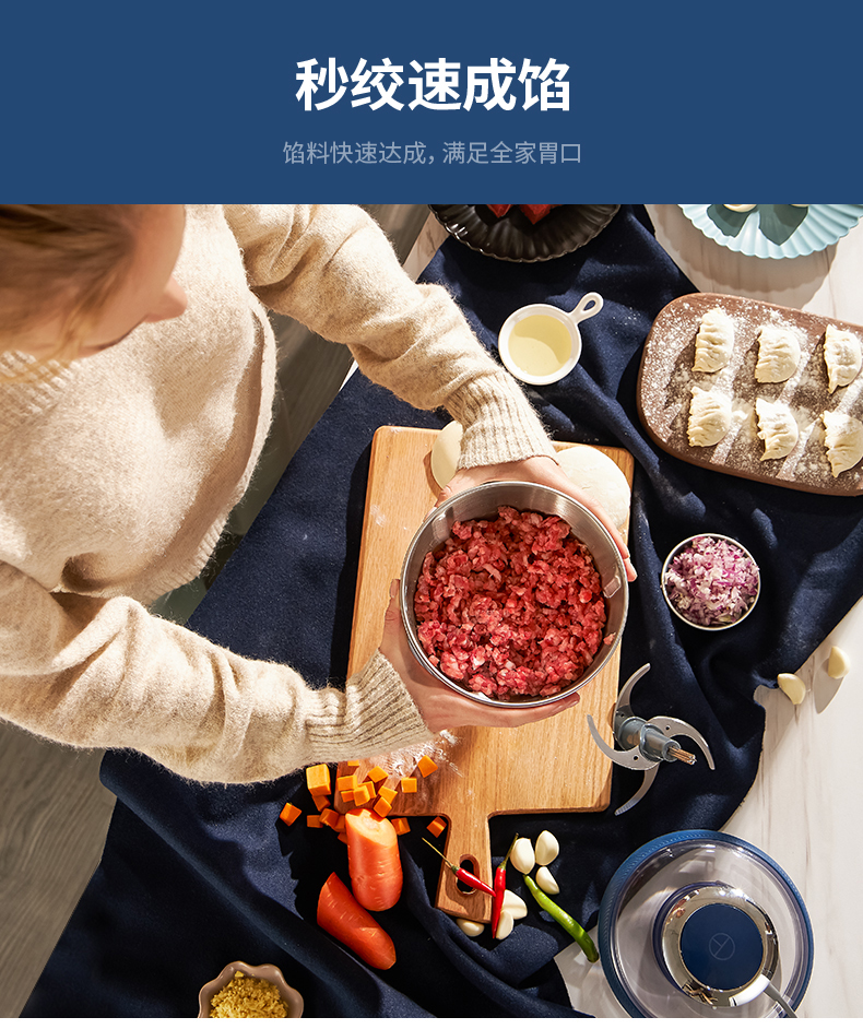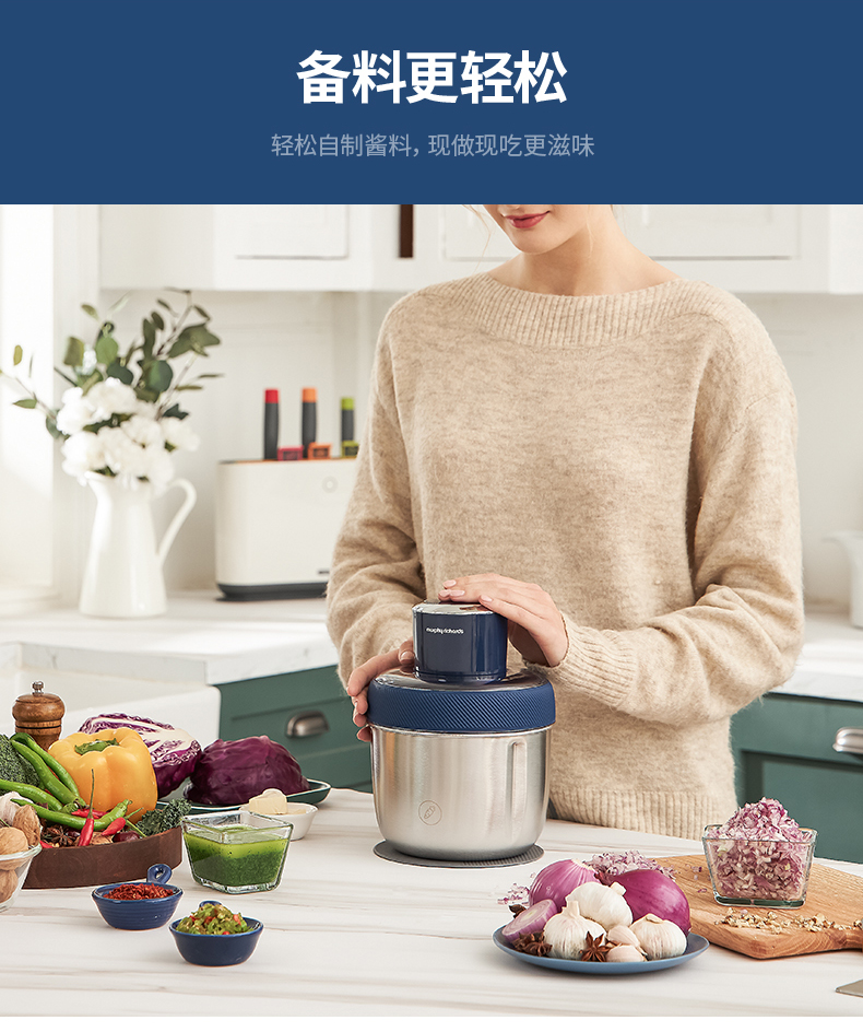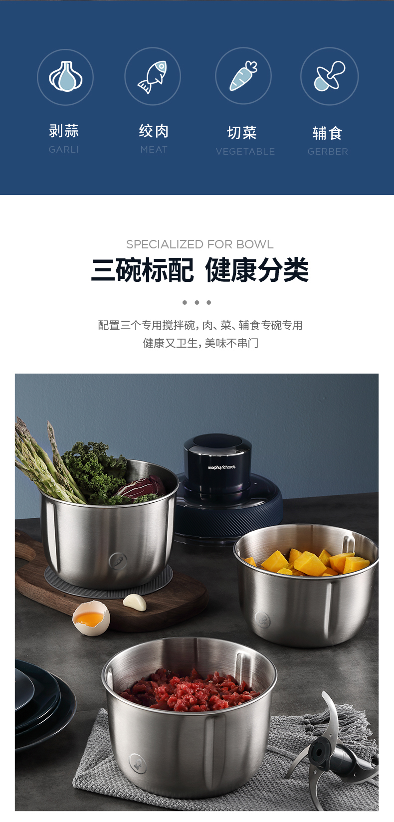 【摩飞 绞肉机 双层4刀 6秒绞碎】配置三个搅拌碗 健康不串味 绞肉剥蒜宝宝辅食 轻松做料理