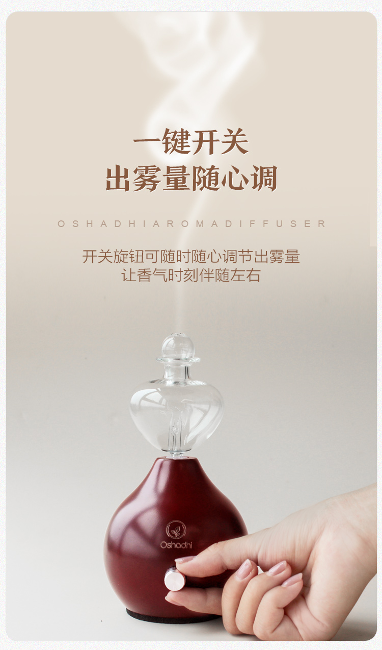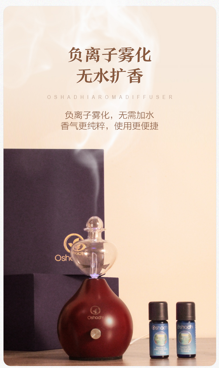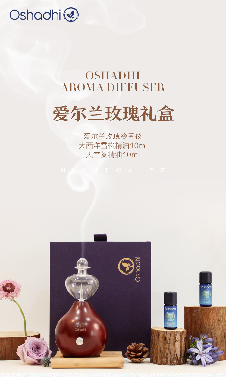 Oshadhi 爱尔兰玫瑰冷香仪礼盒 无水扩香 香薰仪 玻璃雾化片 实木底座