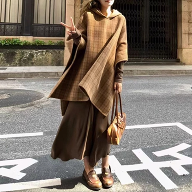 裁缝学苑AQ547复古赫本风连帽斗篷大衣纸样女装韩系中长款双面毛呢外套样板