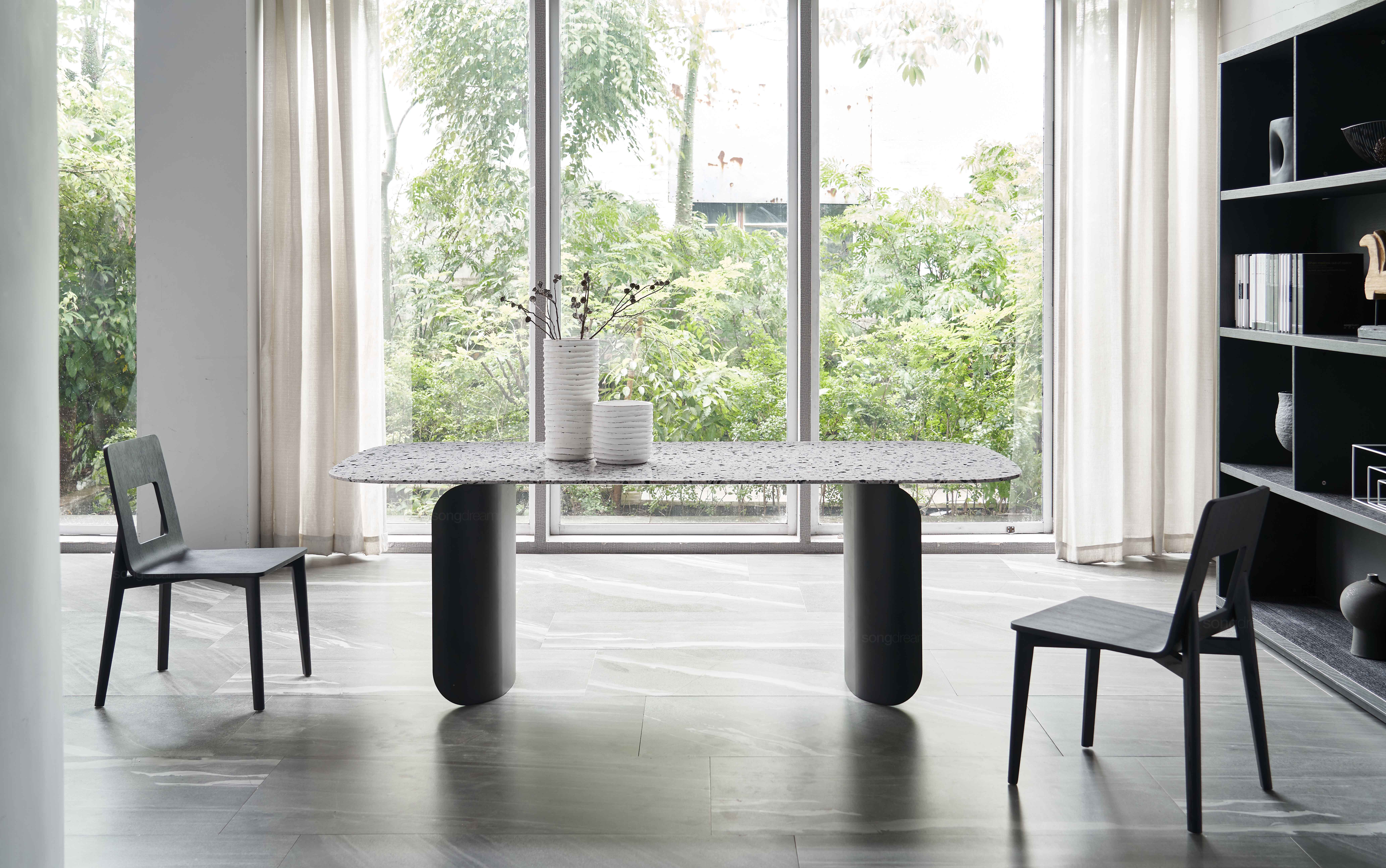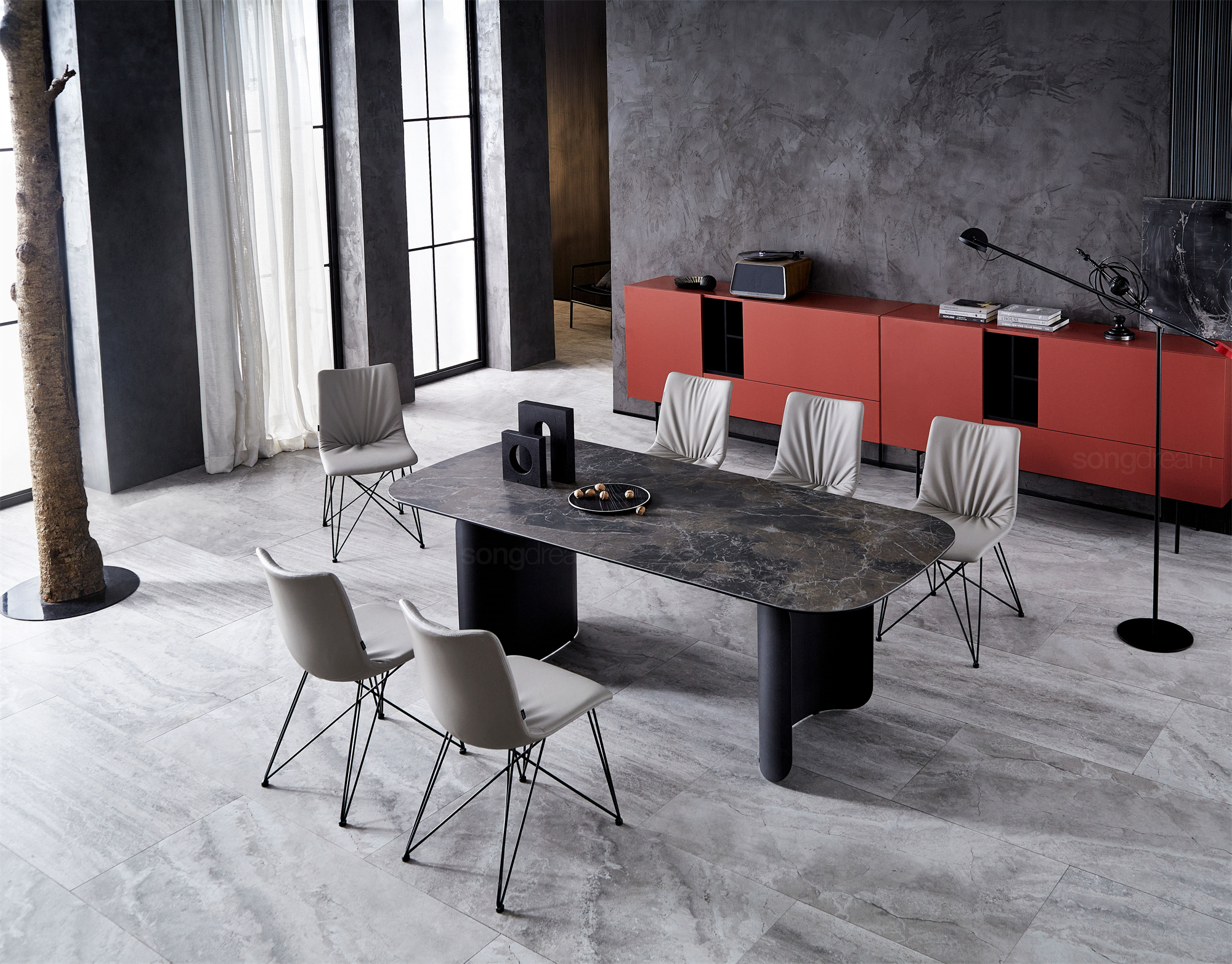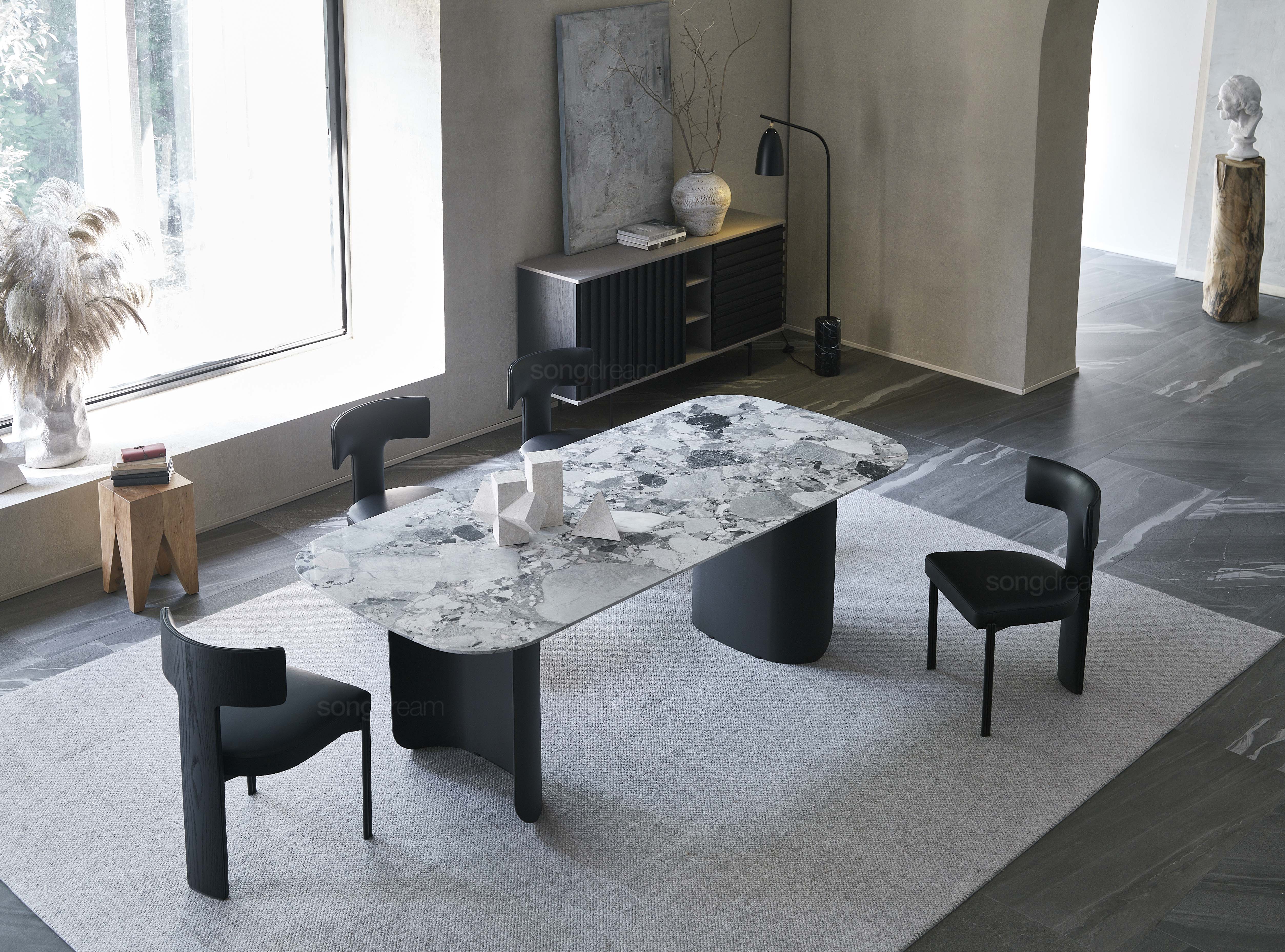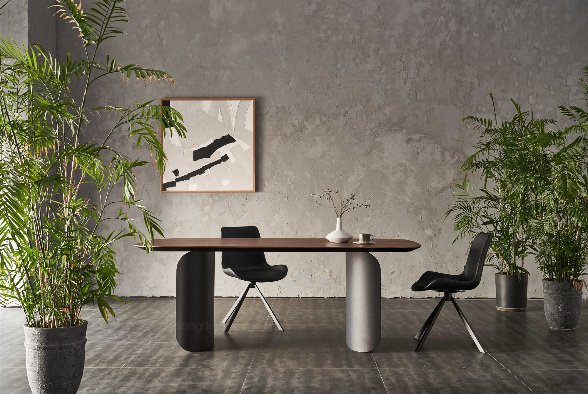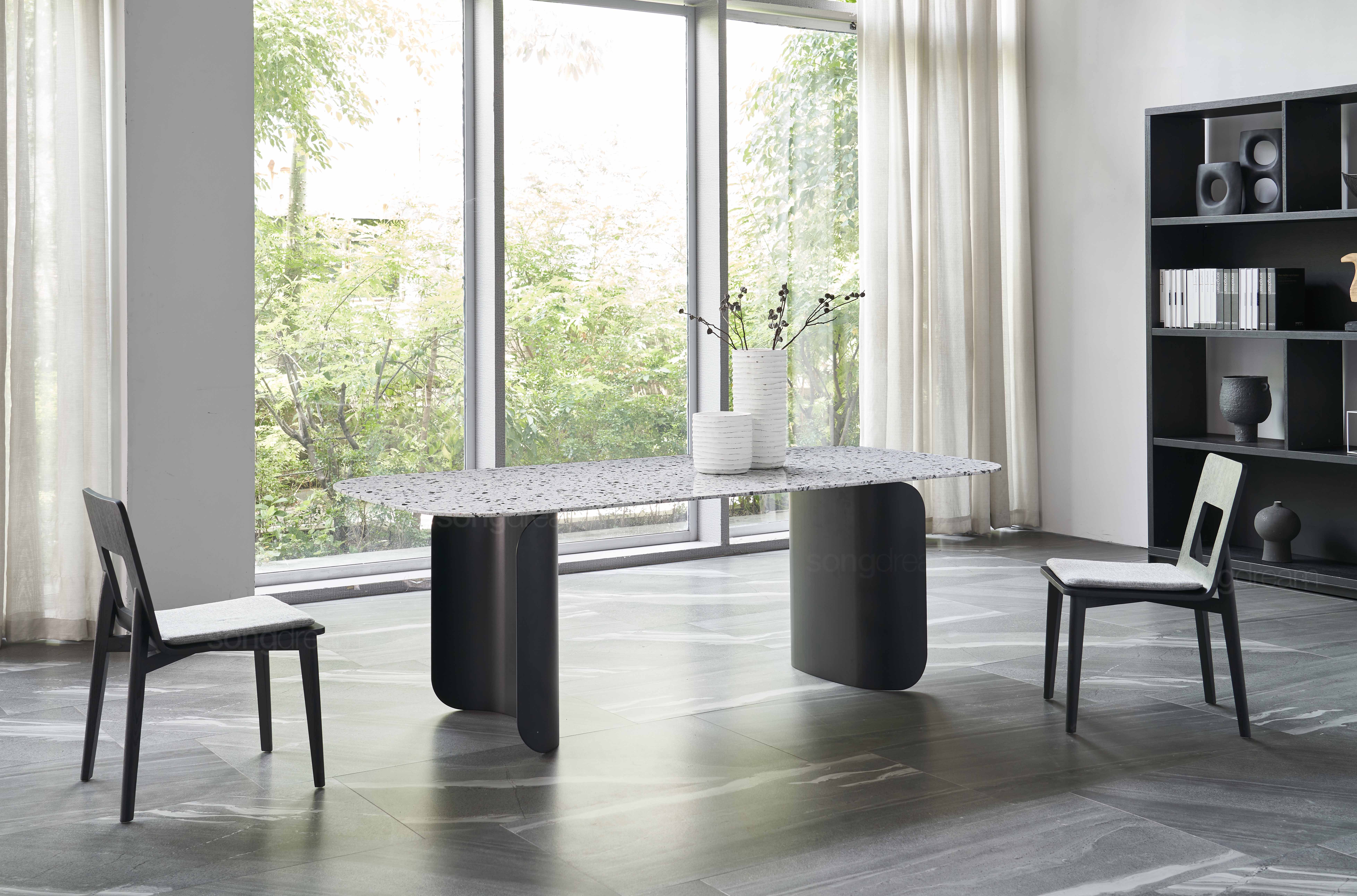 主材:胡原/橡黑(中纤板贴皮)/黑瓜子水磨石/进口岩板+金属支架+黑色喷涂