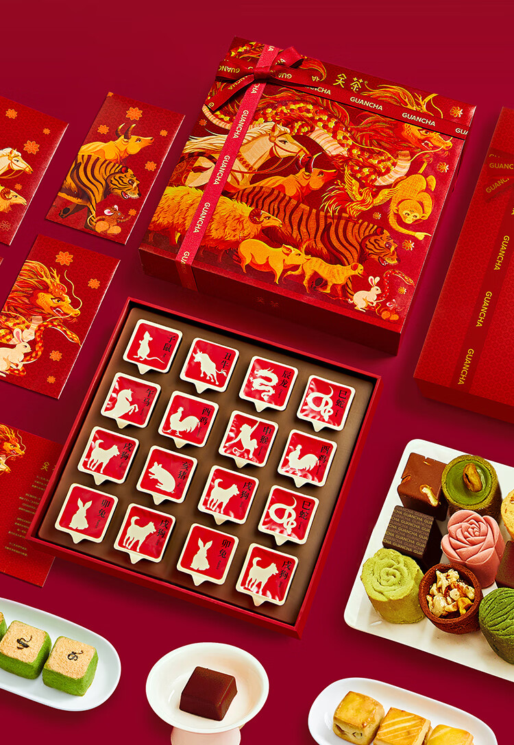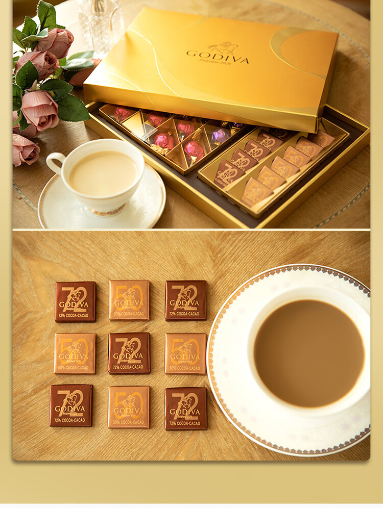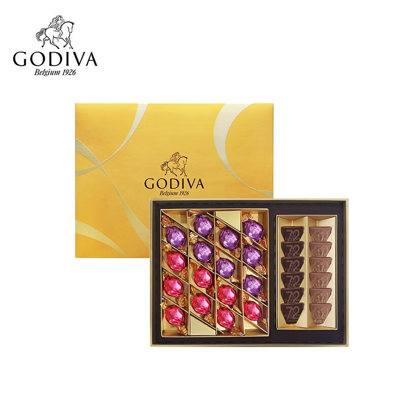 (分2个包裹发货)GODIVA巧克力精选礼盒28颗装 +2025关茶·茶菓子十二生肖16枚装【ZXADCJ5.0】