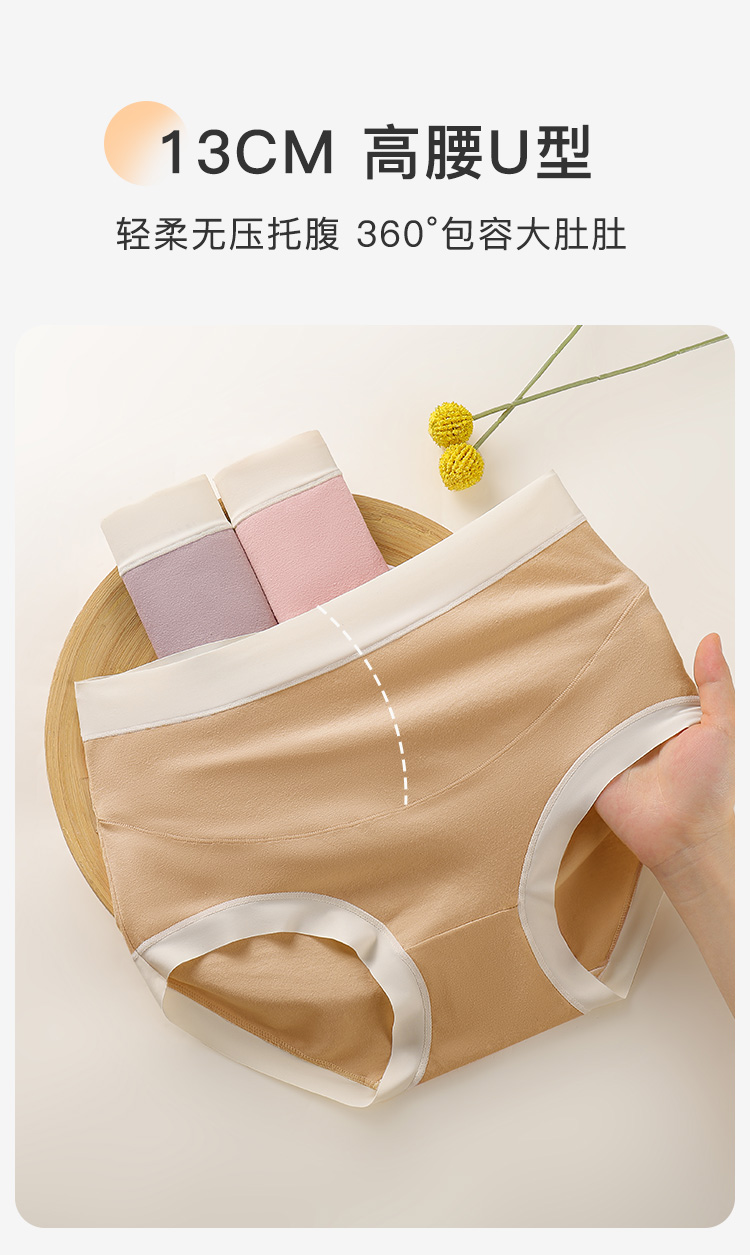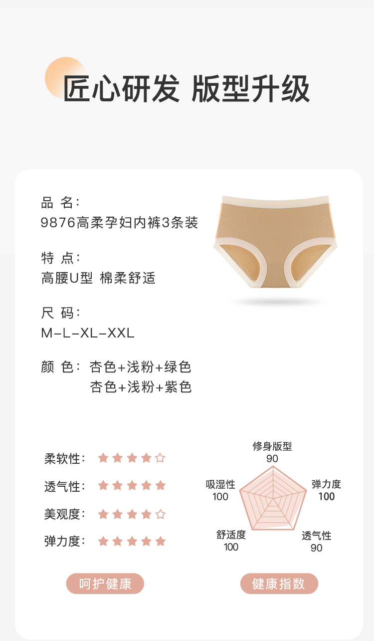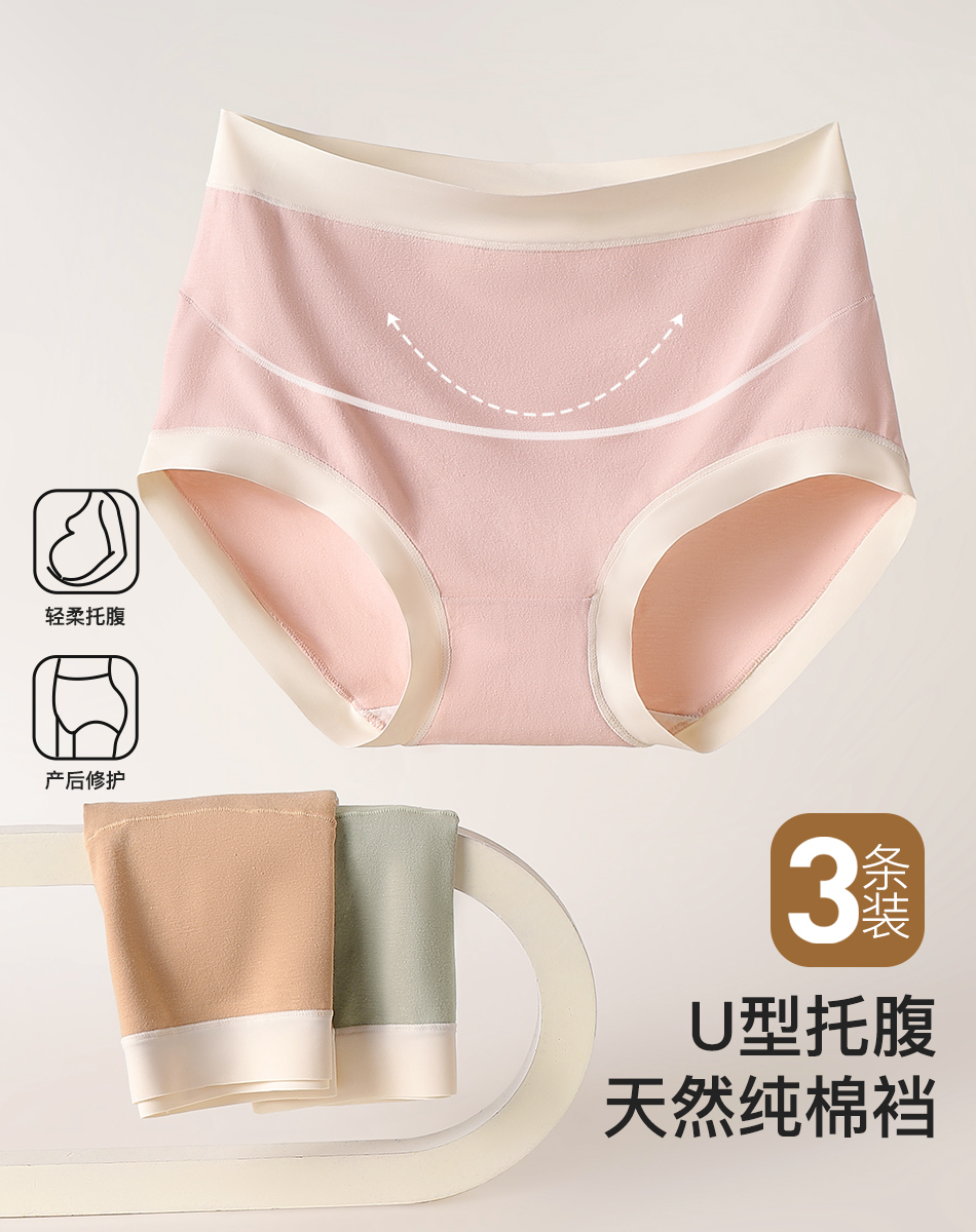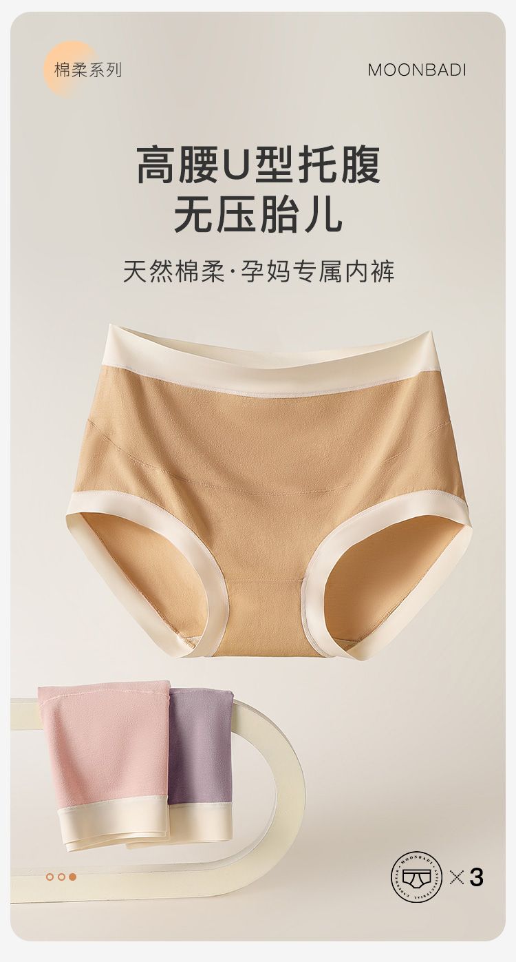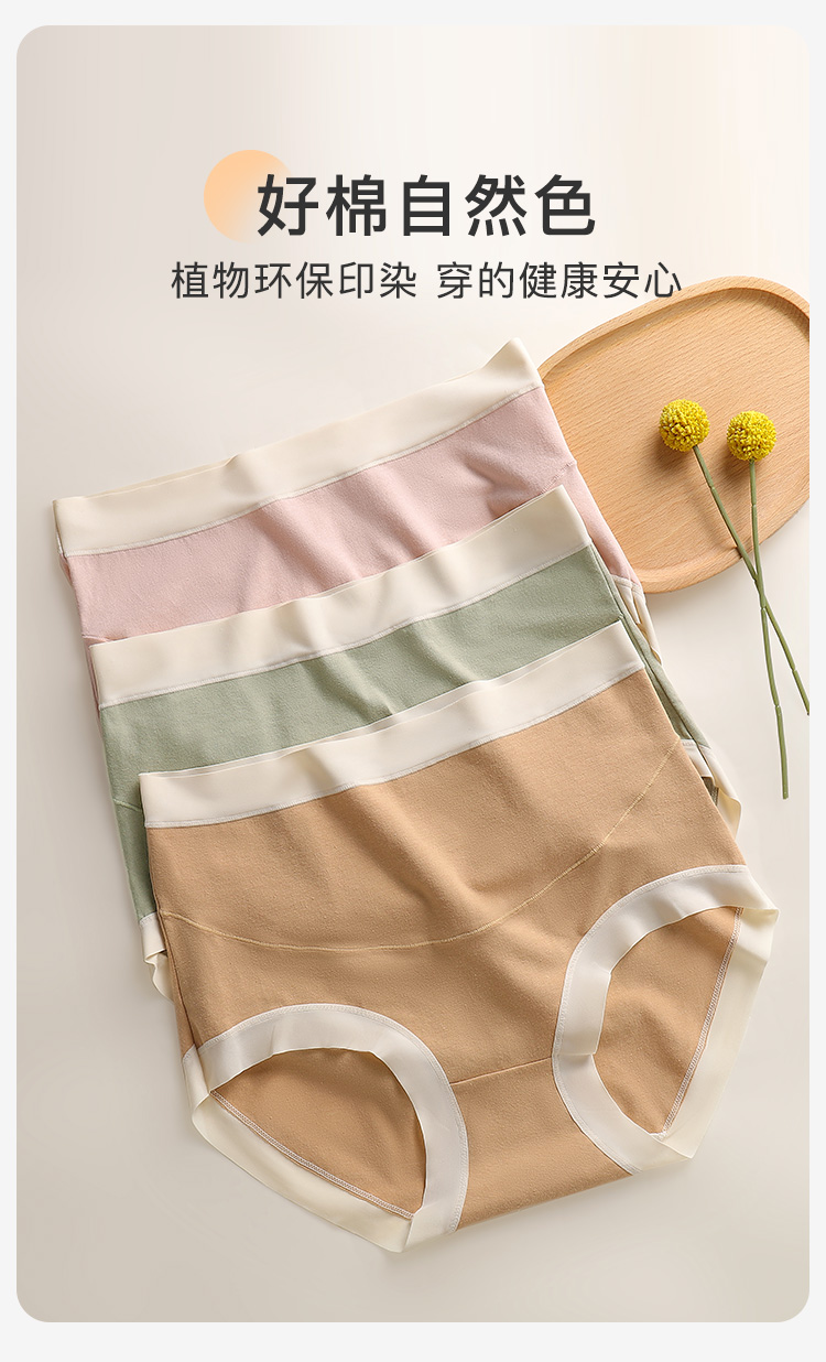【3条装】天然柔棉无痕高腰托腹不勒肚孕妇内裤女100%纯棉裆9876高柔孕妇内裤