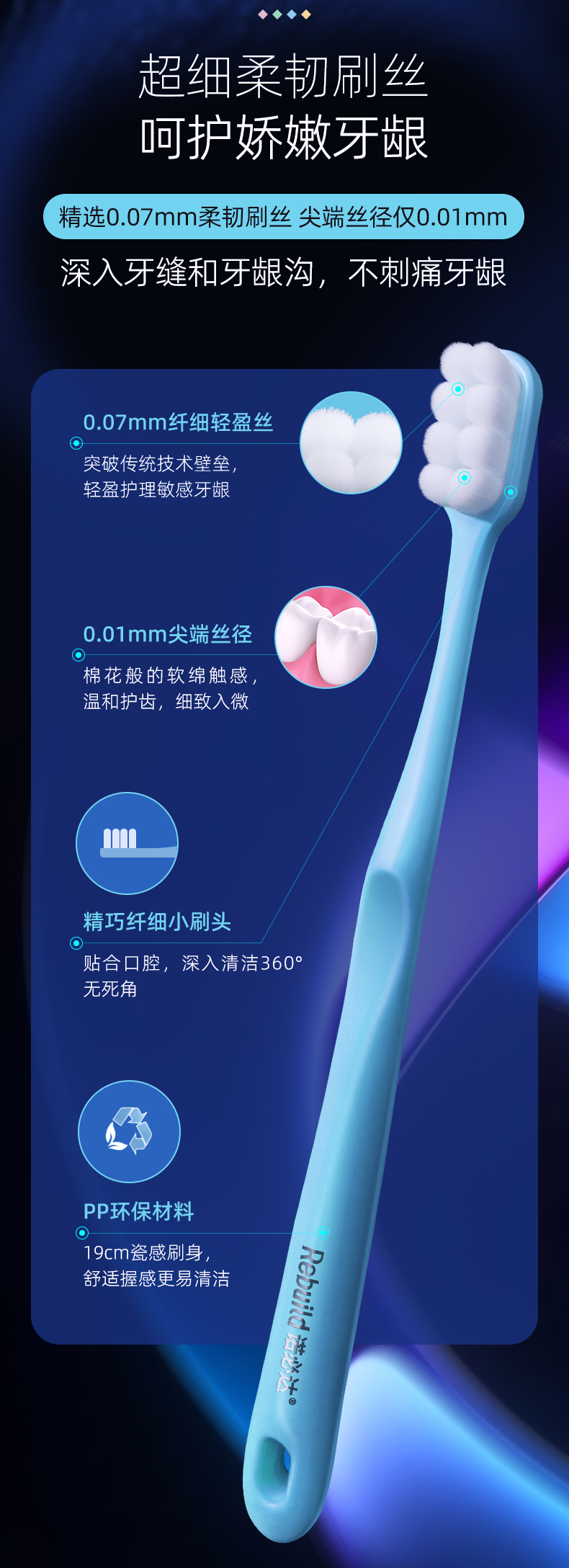 万毛牙刷【购买12支装赠诺必达护龈固齿牙膏50g装1支】诺必达Rebuild新一代万毛牙刷