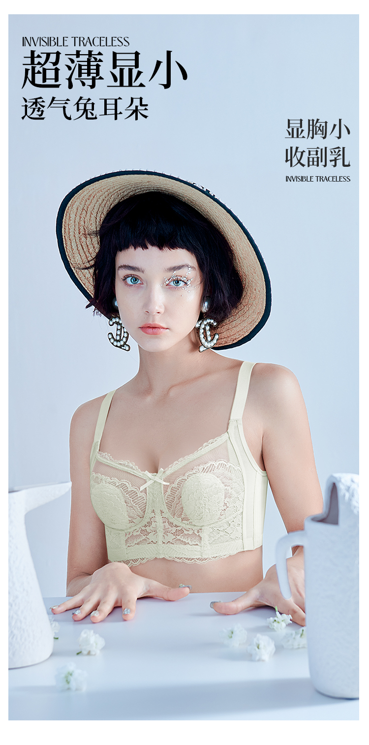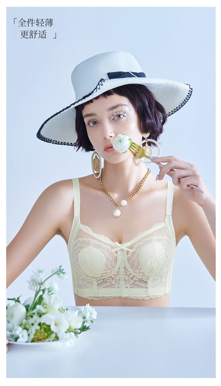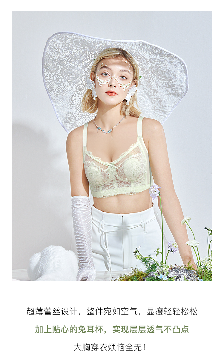 D2-【B-D杯】【大胸显小】润微轻薄水晶杯薄款全罩杯大胸显小收副乳调整型女内衣无钢圈文胸 花落缤纷