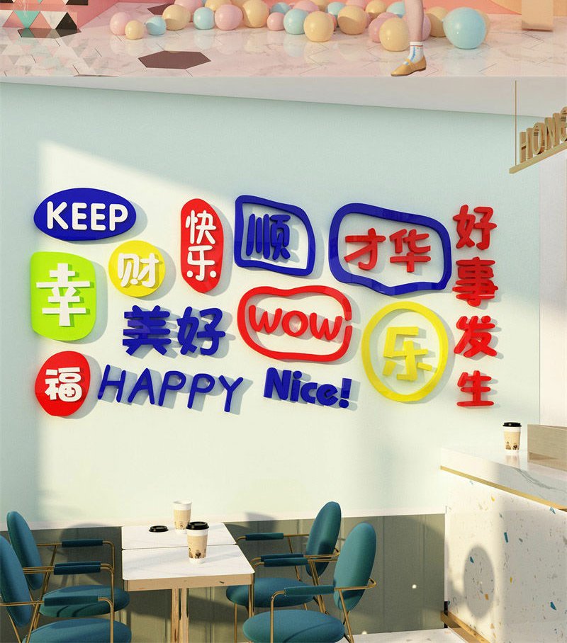 网红打卡拍照墙 创意奶茶店墙壁装饰甜品咖啡厅玻璃门贴
