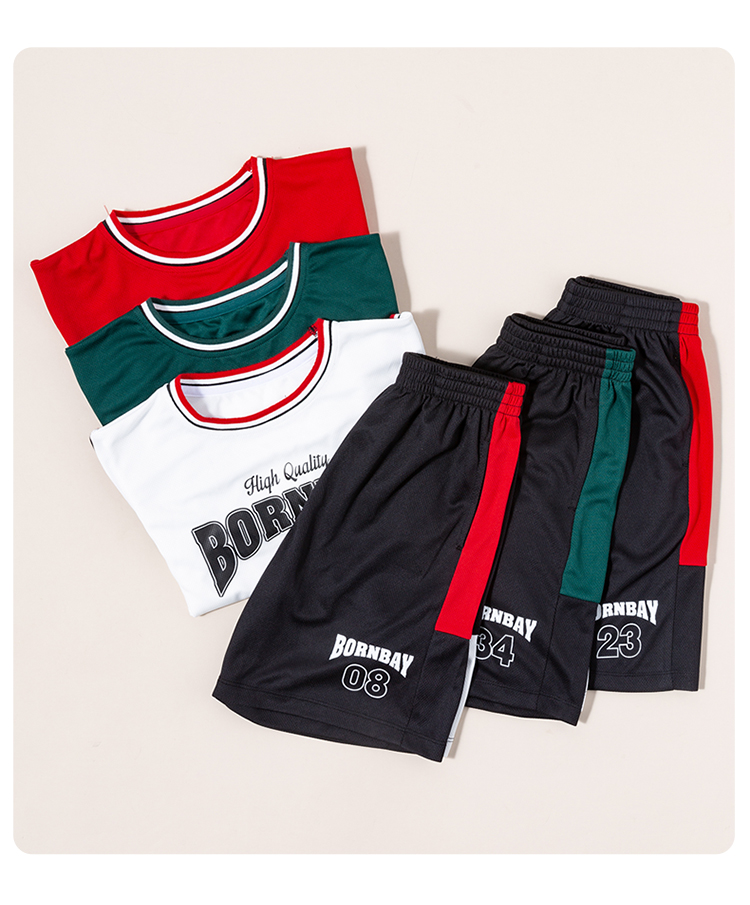 贝贝怡童装男女童套装透气夏装儿童速干短袖篮球服中大童运动服潮222T2436