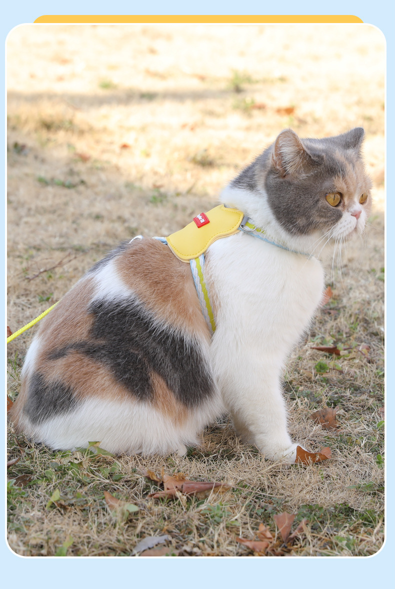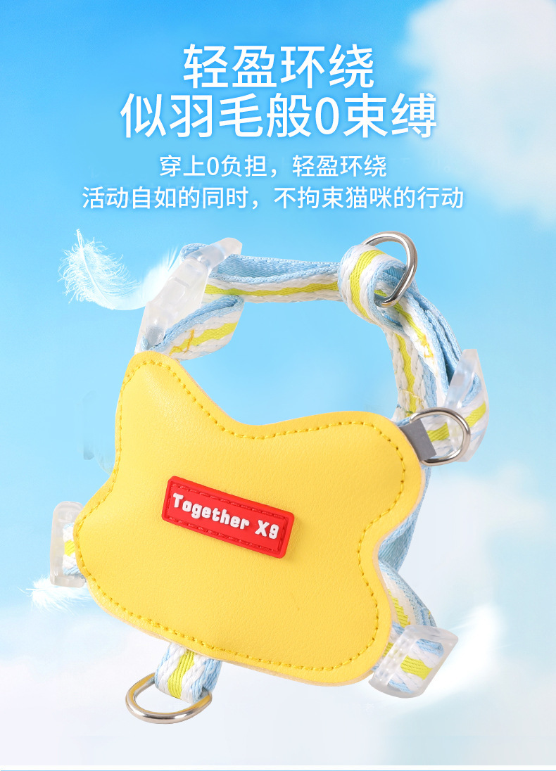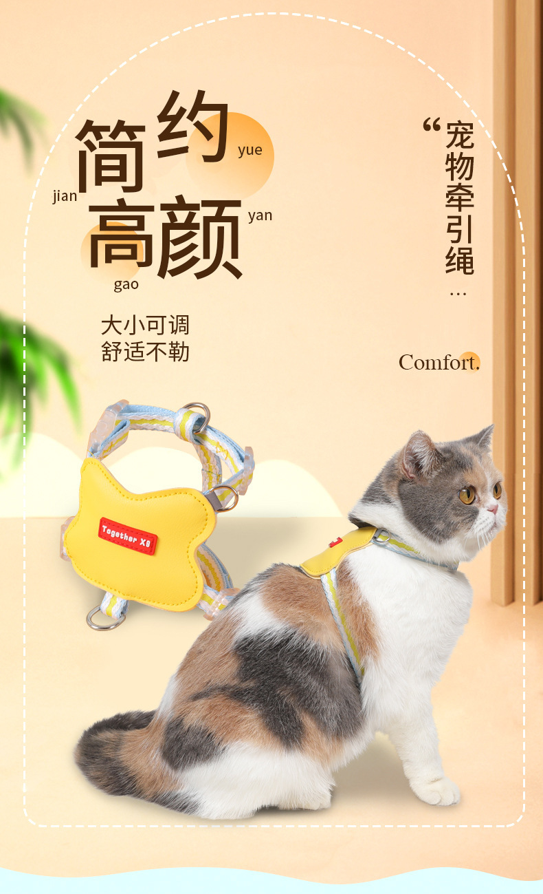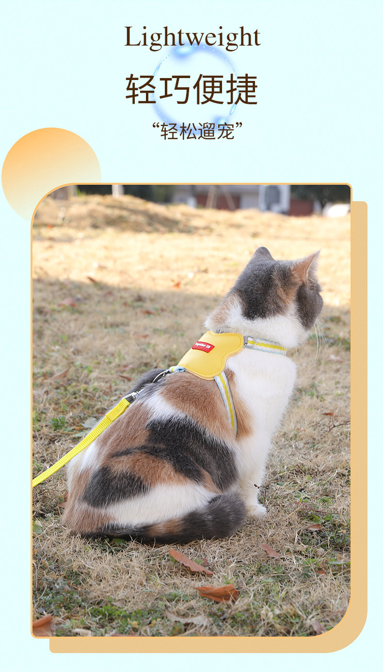 严选猫咪胸背带【桃皮绒亮黄色牵引绳S码】猫咪外出防挣脱工字牵引绳1个