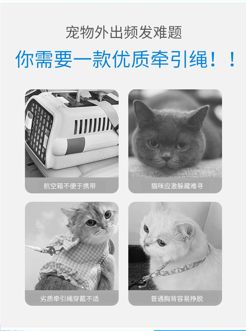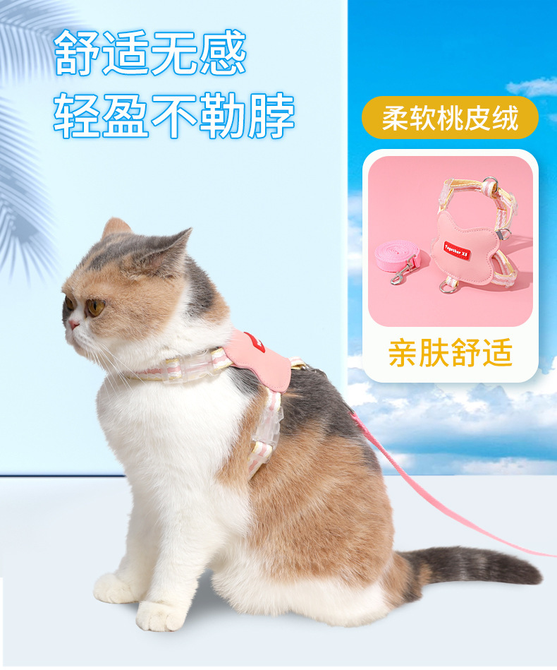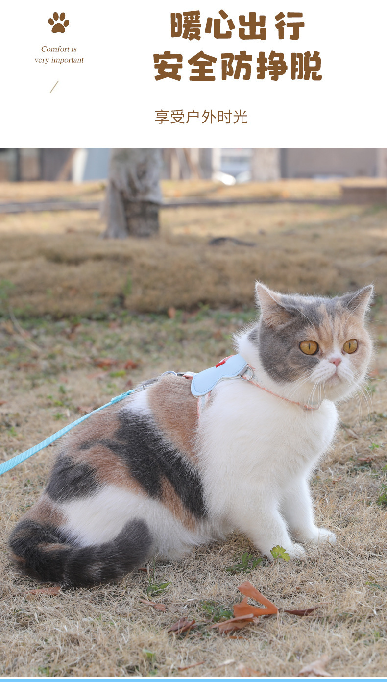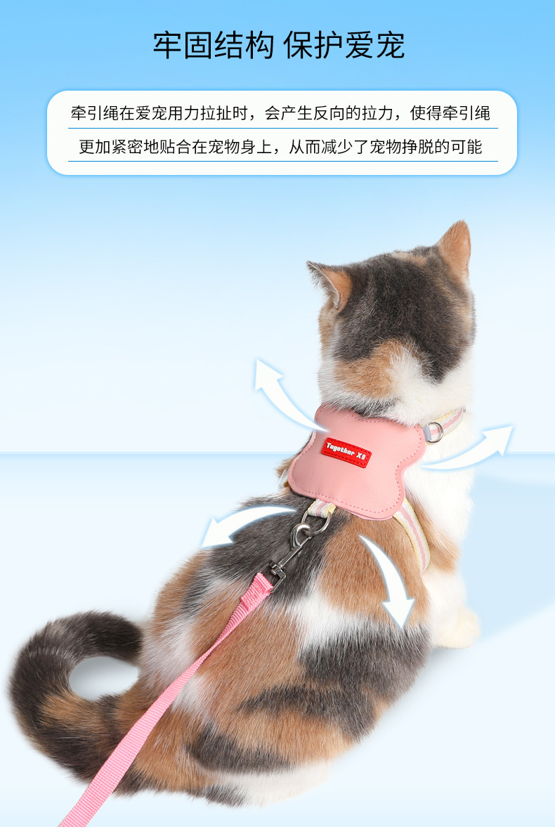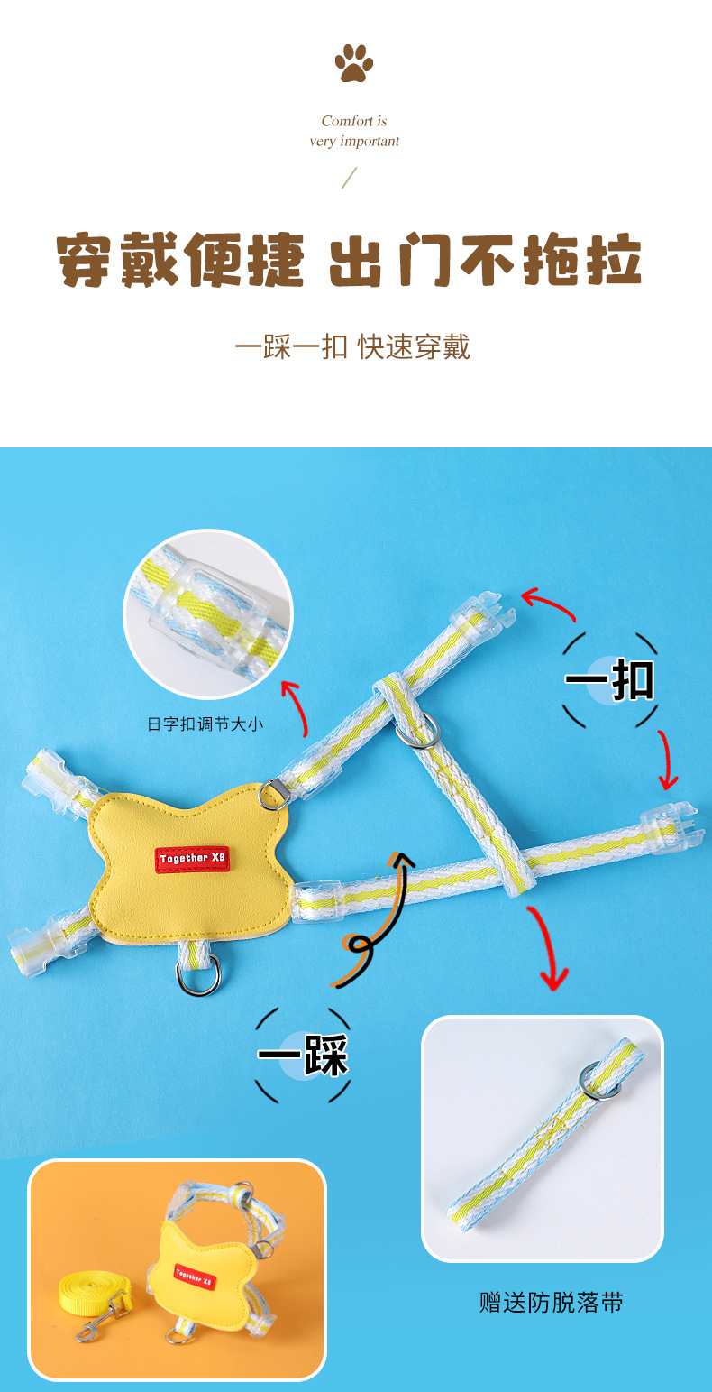严选猫咪胸背带【桃皮绒亮黄色牵引绳S码】猫咪外出防挣脱工字牵引绳1个