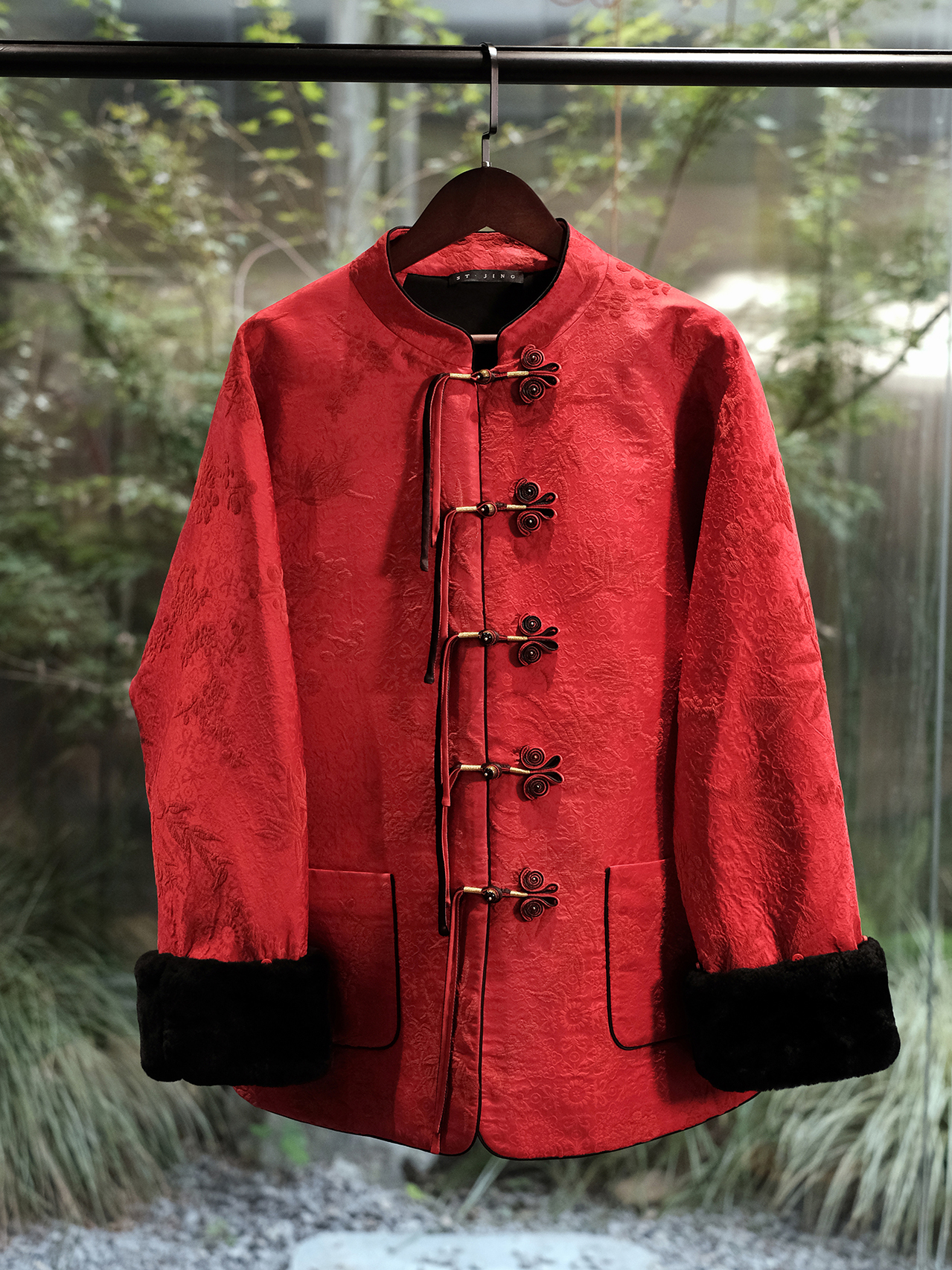盛唐婧 | 新中式提花绒羊毛袖花扣对襟外套