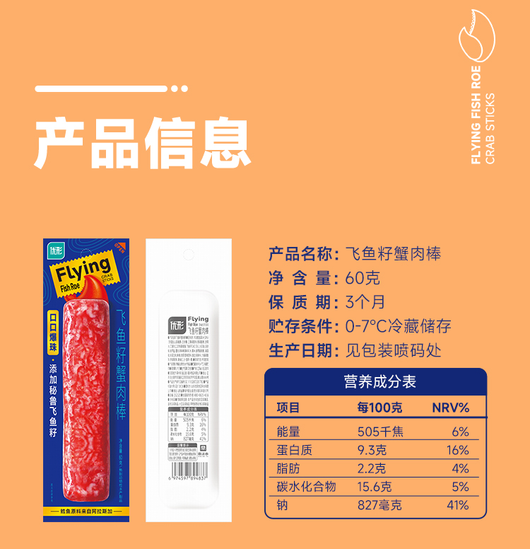 优形新品 飞鱼籽蟹肉棒60g*袋