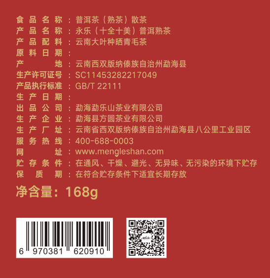 勐乐山和颐普洱系列(大叶陈香)熟饼357g