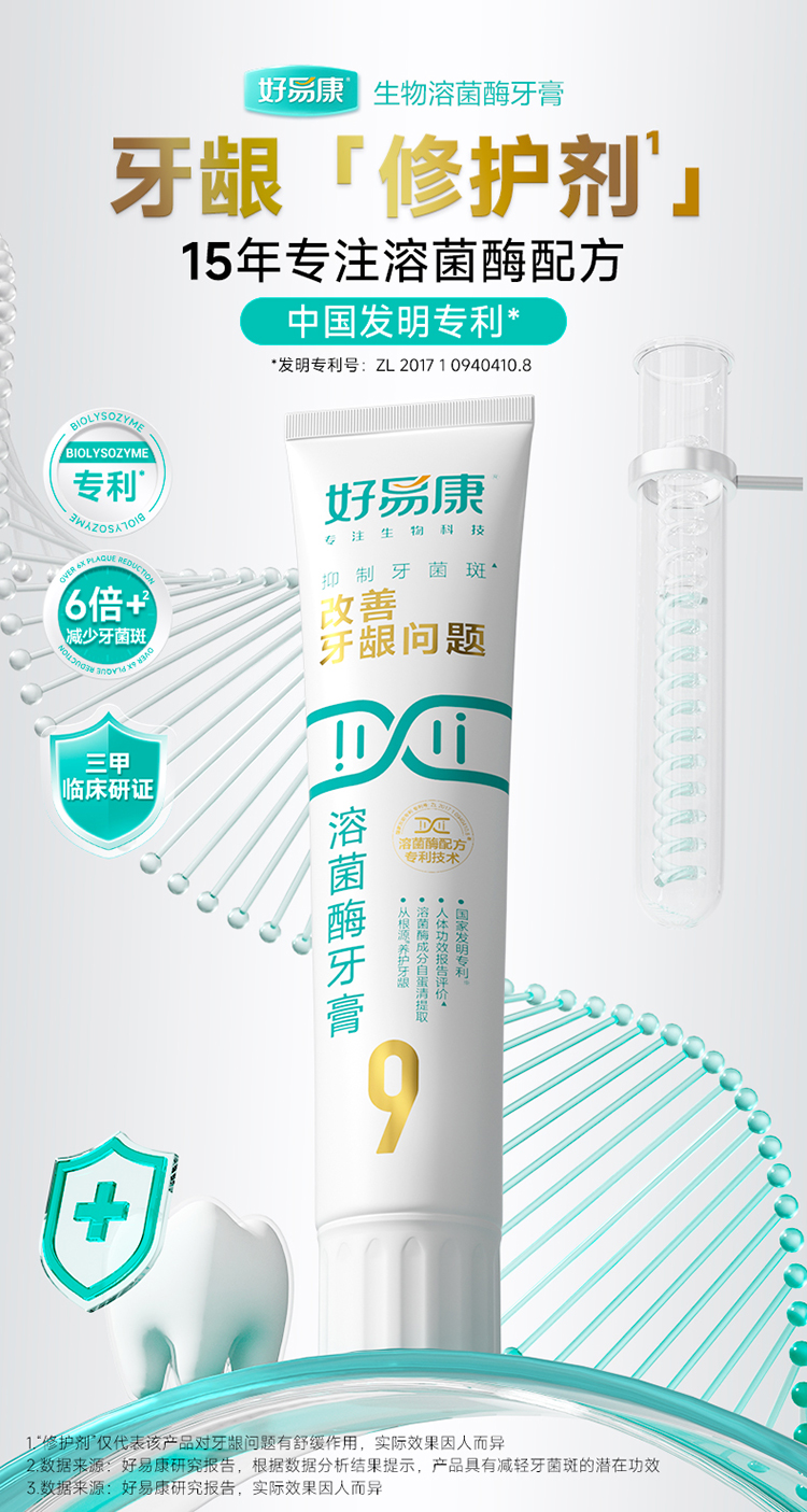 好易康改善牙龈问题溶菌酶牙膏(维护牙龈抑制牙菌斑清新口气牙齿亮白)【优选】