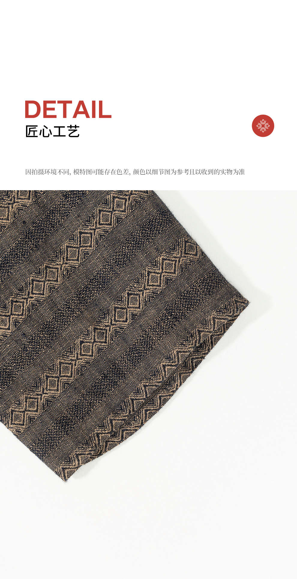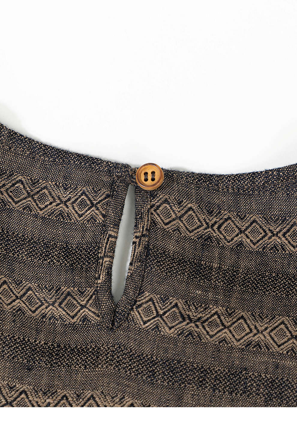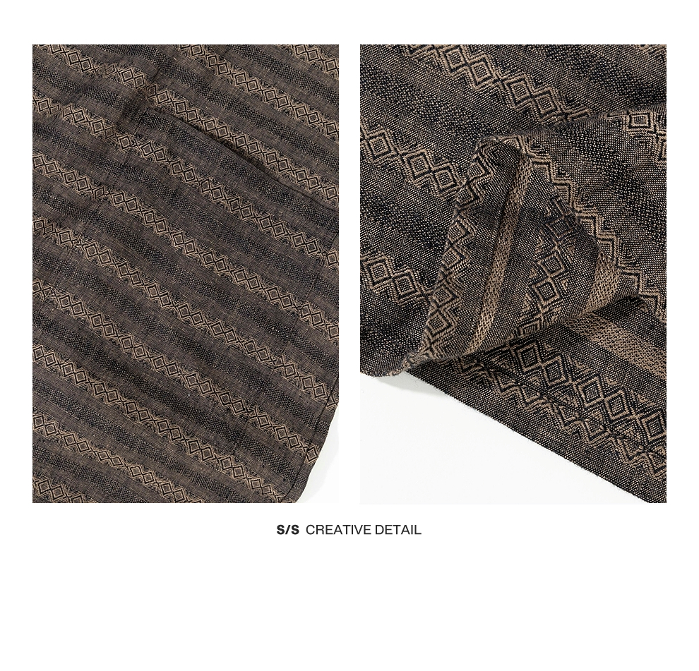 绽放女装585朵/色织亚麻提花圆领落肩袖大口袋长袖文艺连衣裙女秋