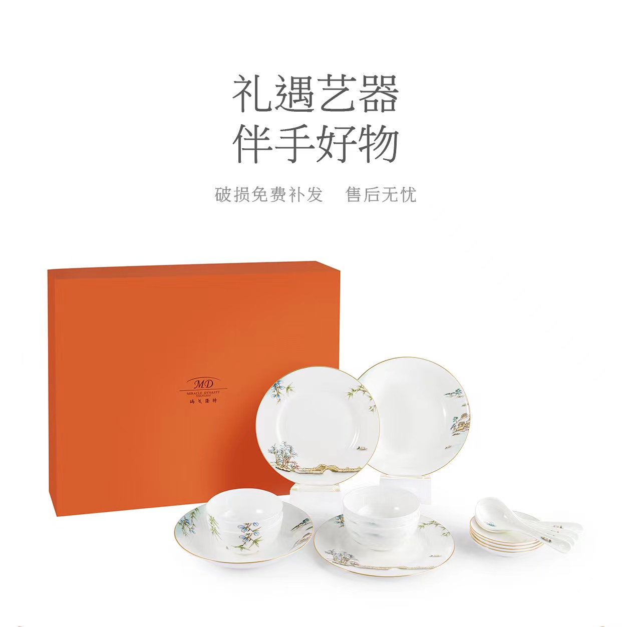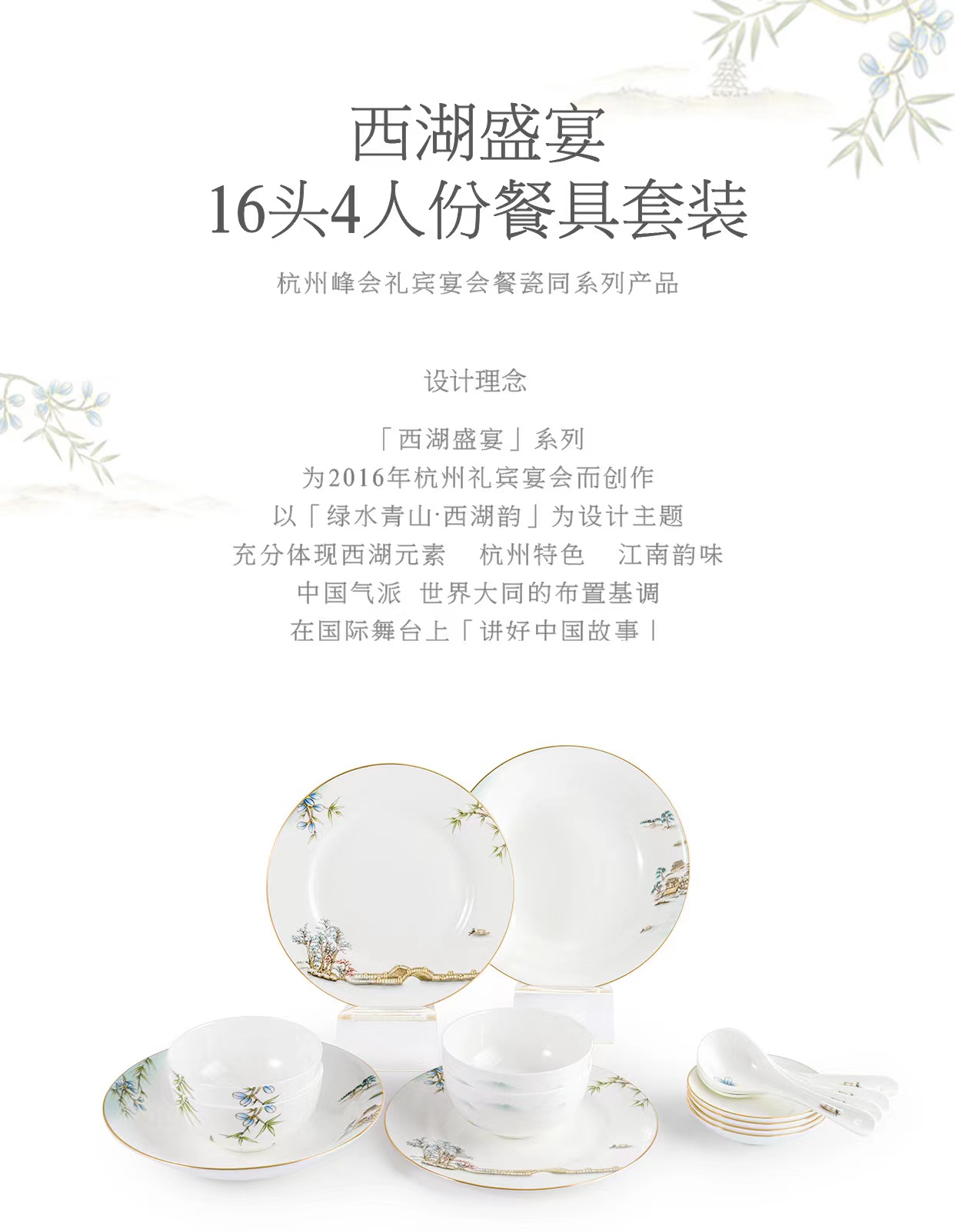 【6F】 玛戈隆特西湖盛宴 4人份餐具 釉中彩高档礼盒装16头餐具