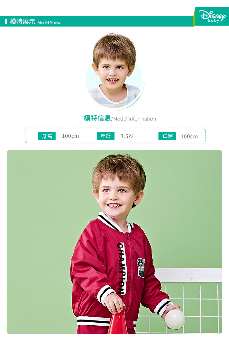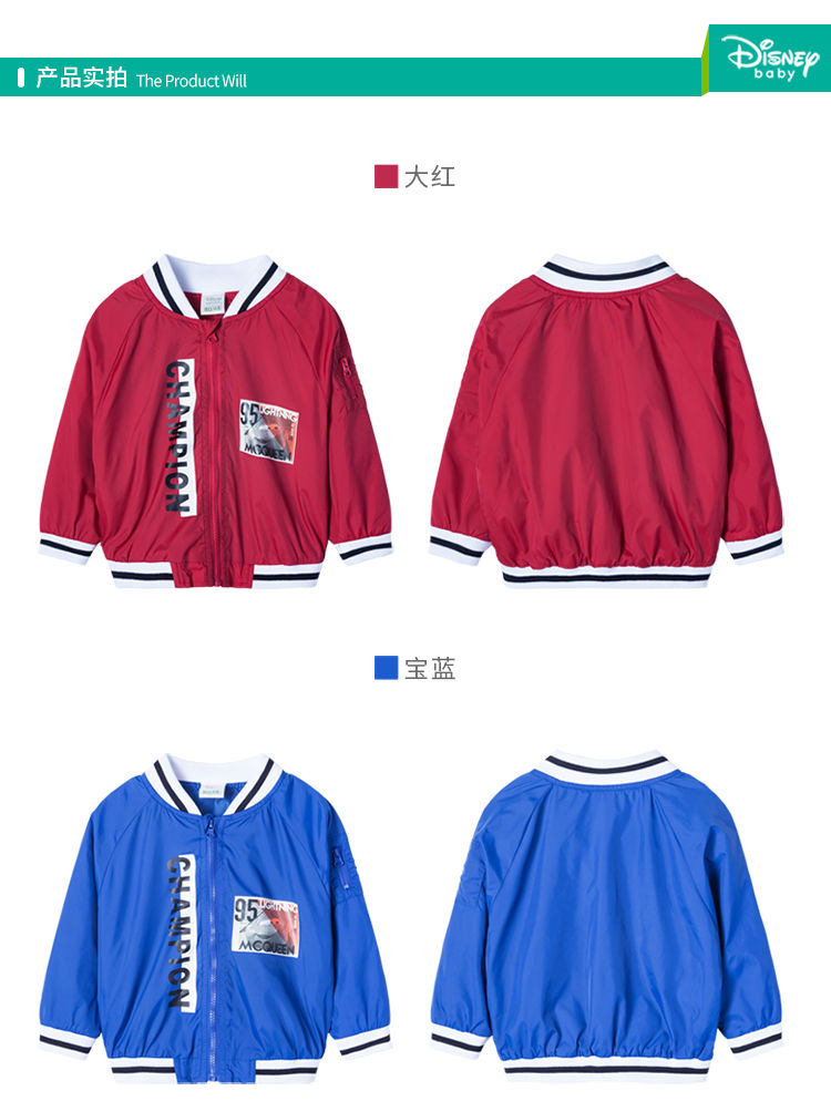 迪士尼童装 男童棒球服春装儿童上衣开衫外套中小童夹克191S1095