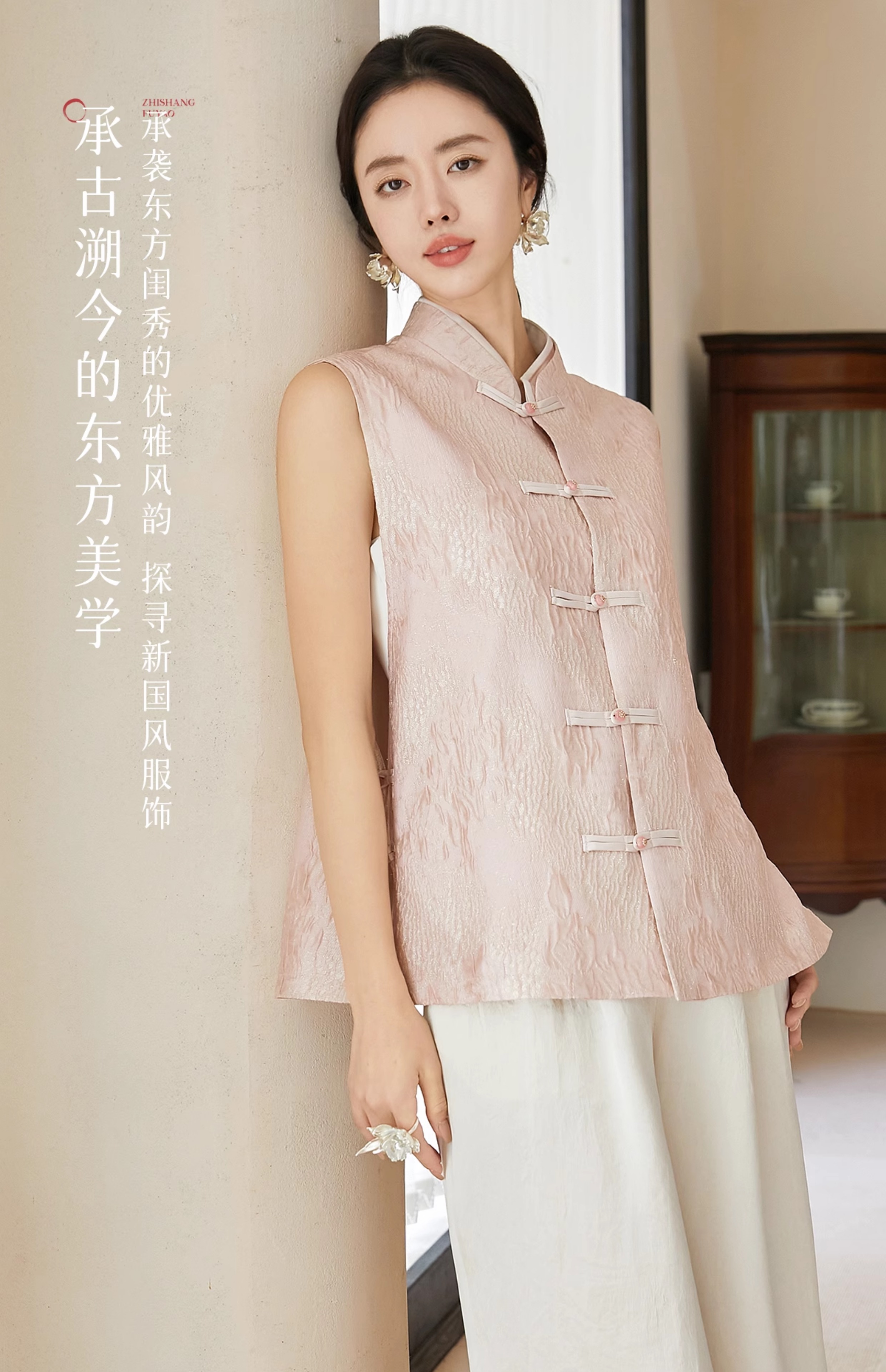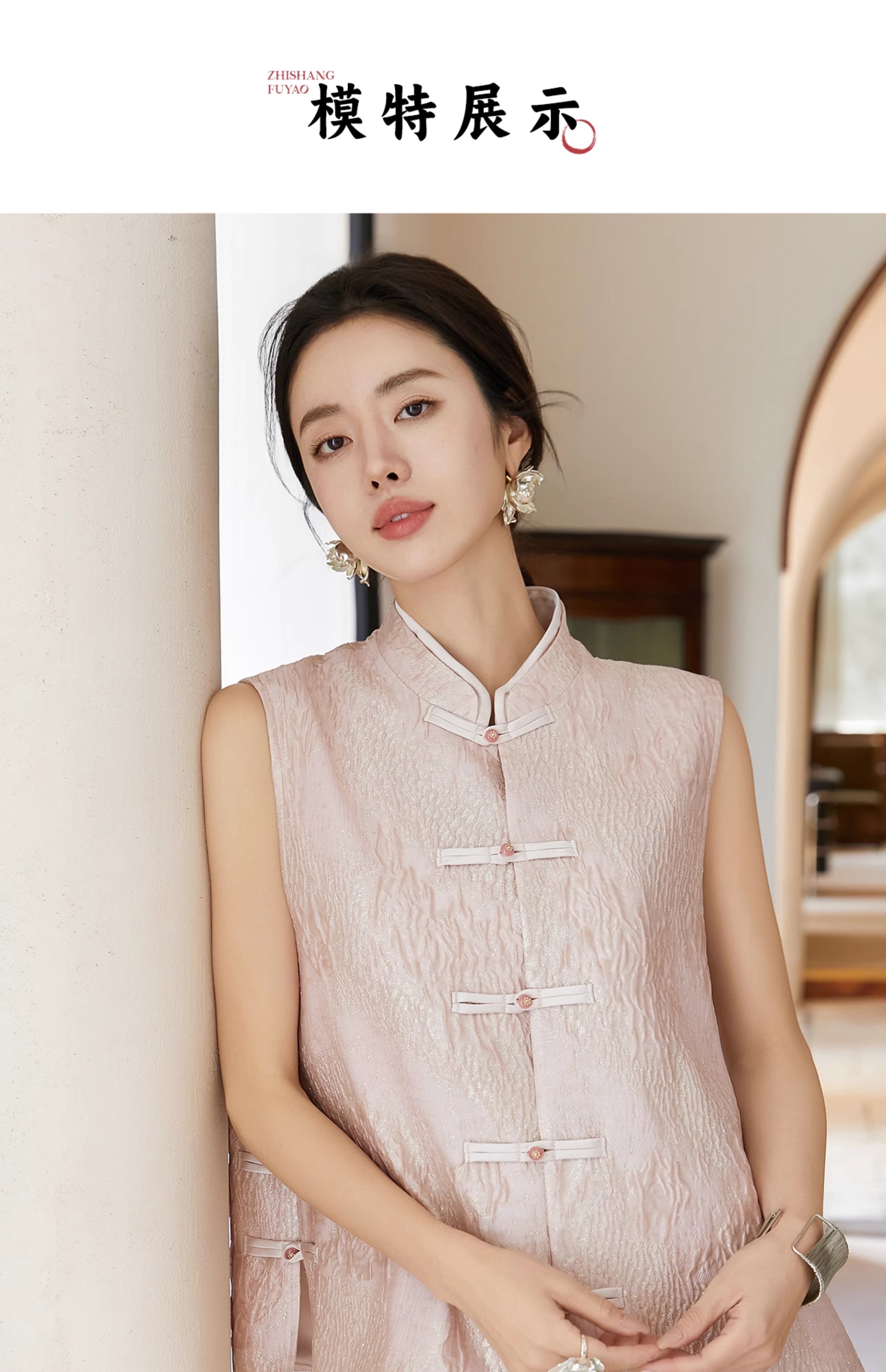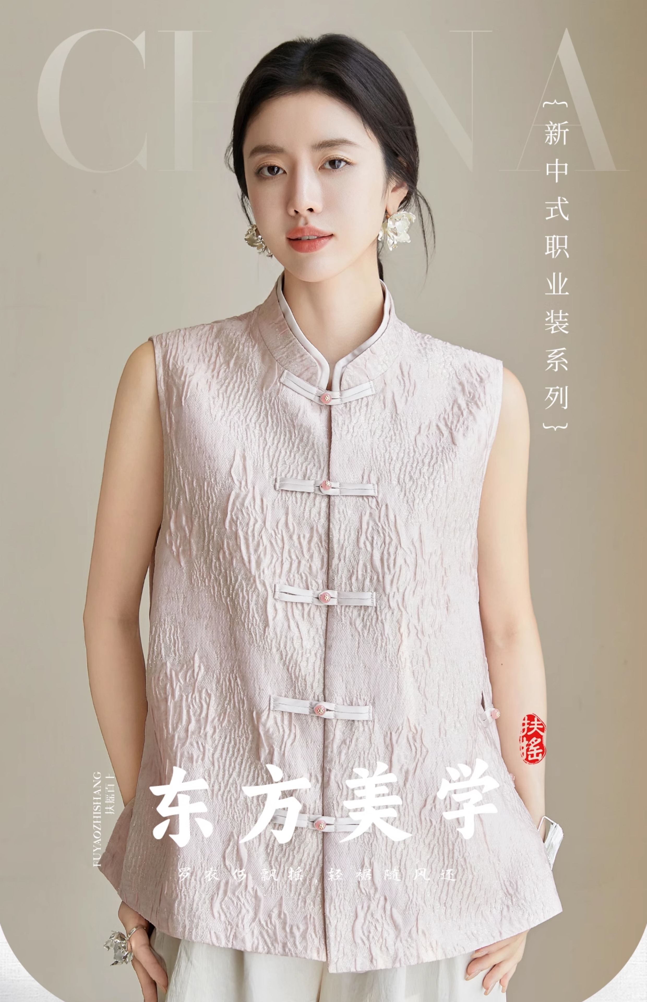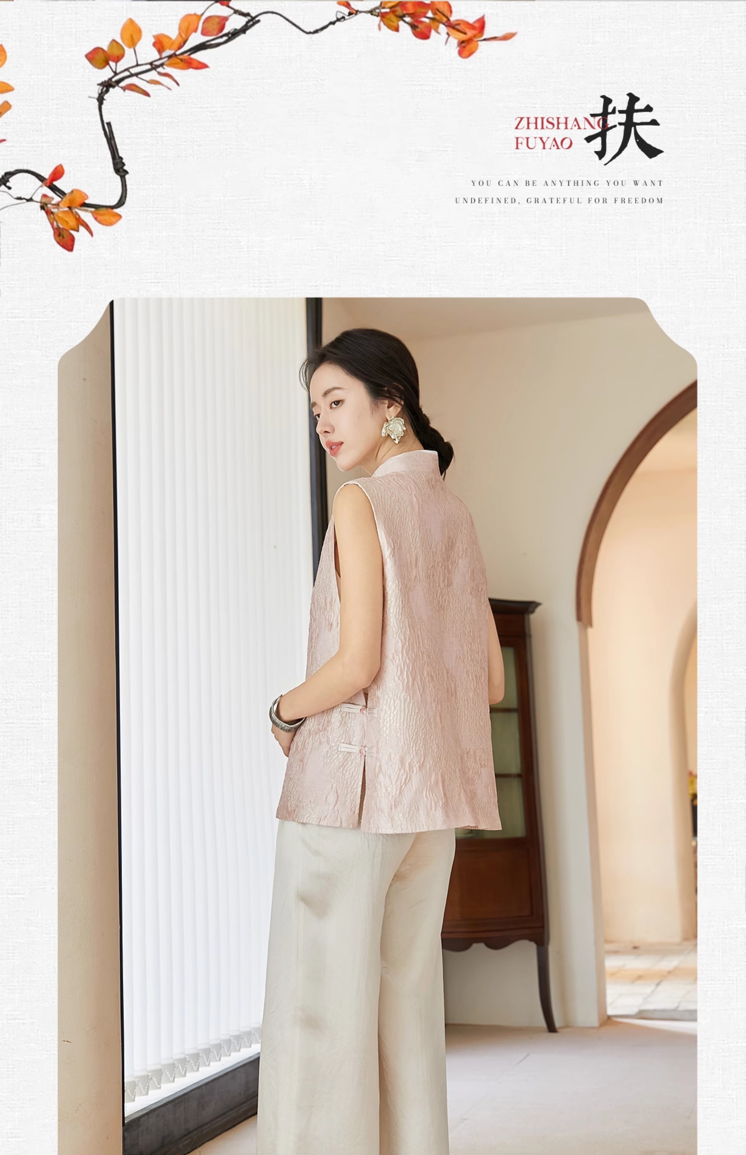 FUYAO扶摇【典雅东方美】新中式马甲女粉色浪漫立领国风古朴韵味
