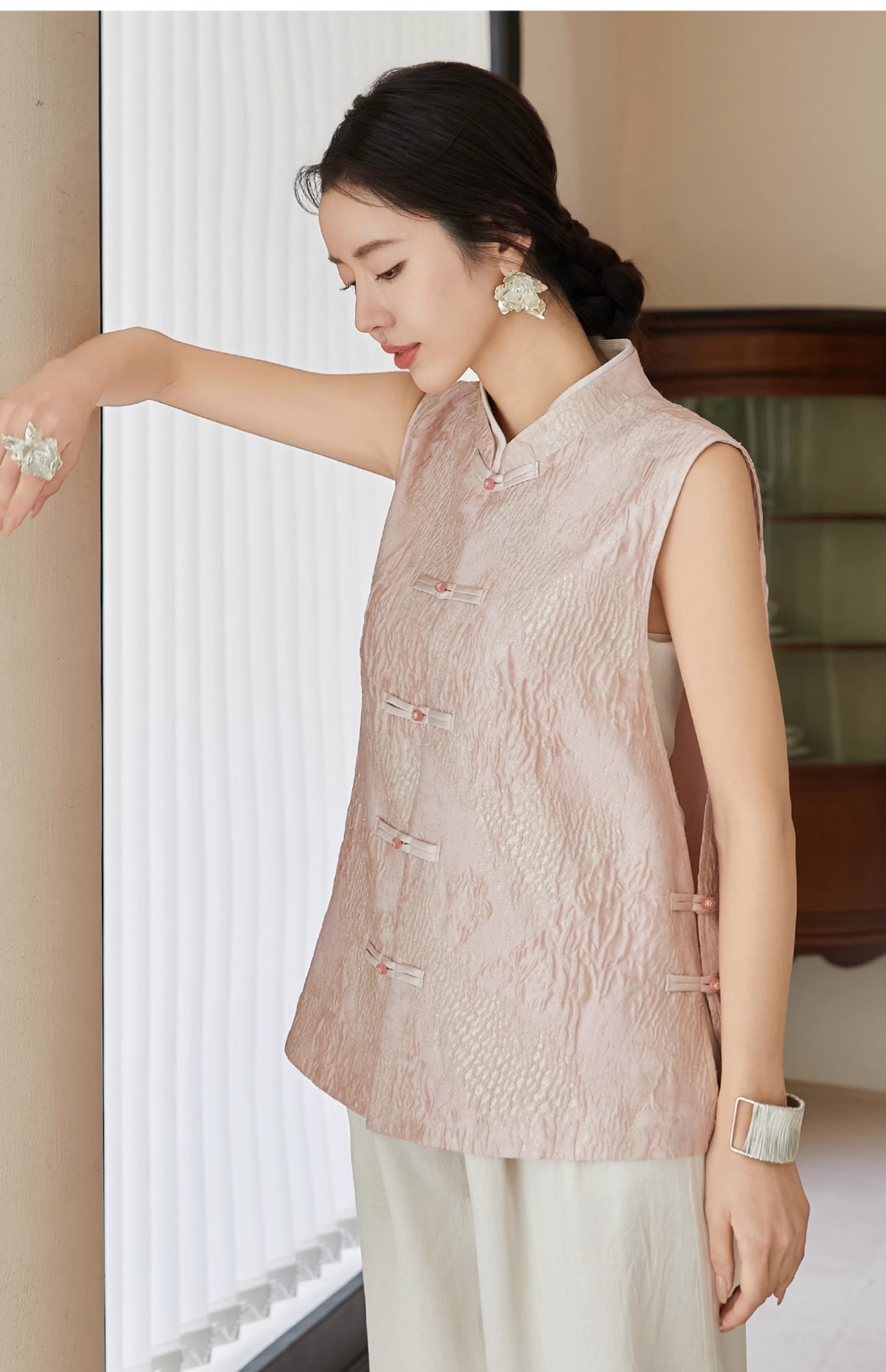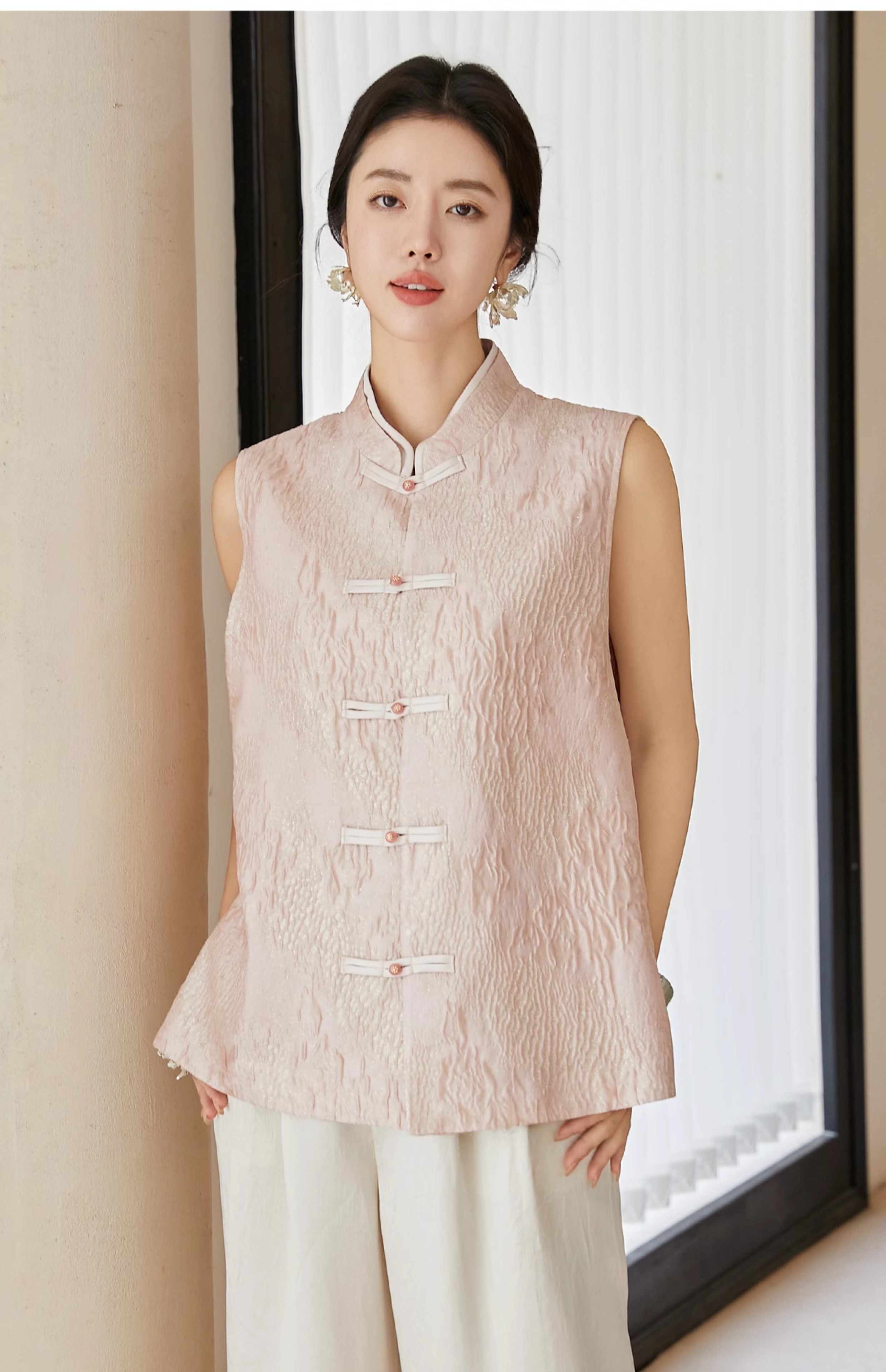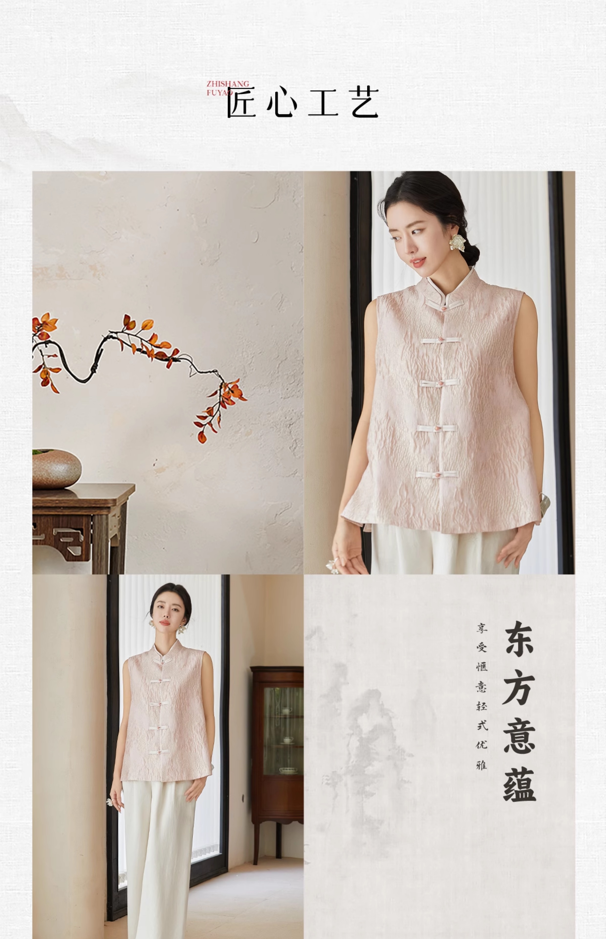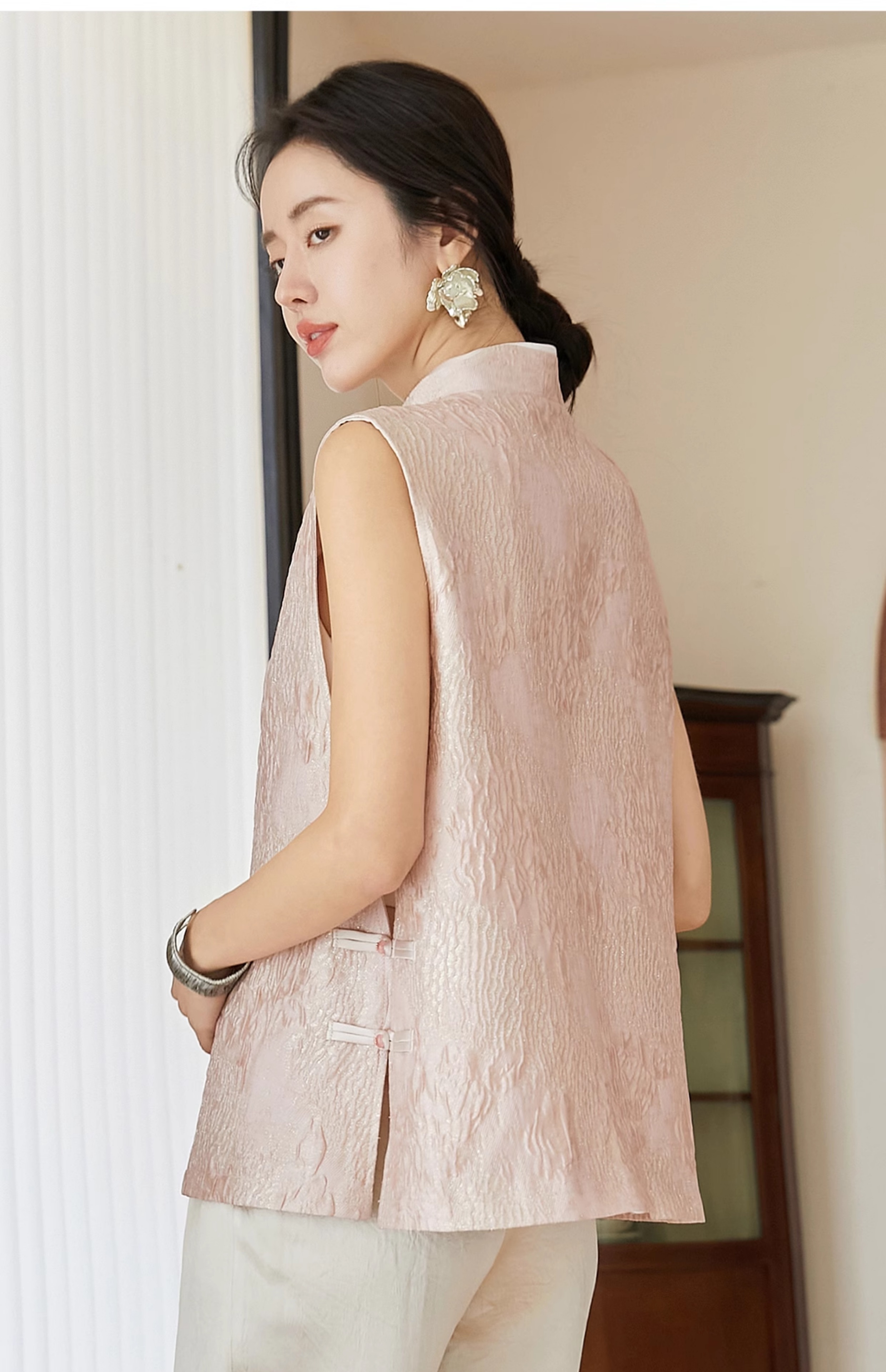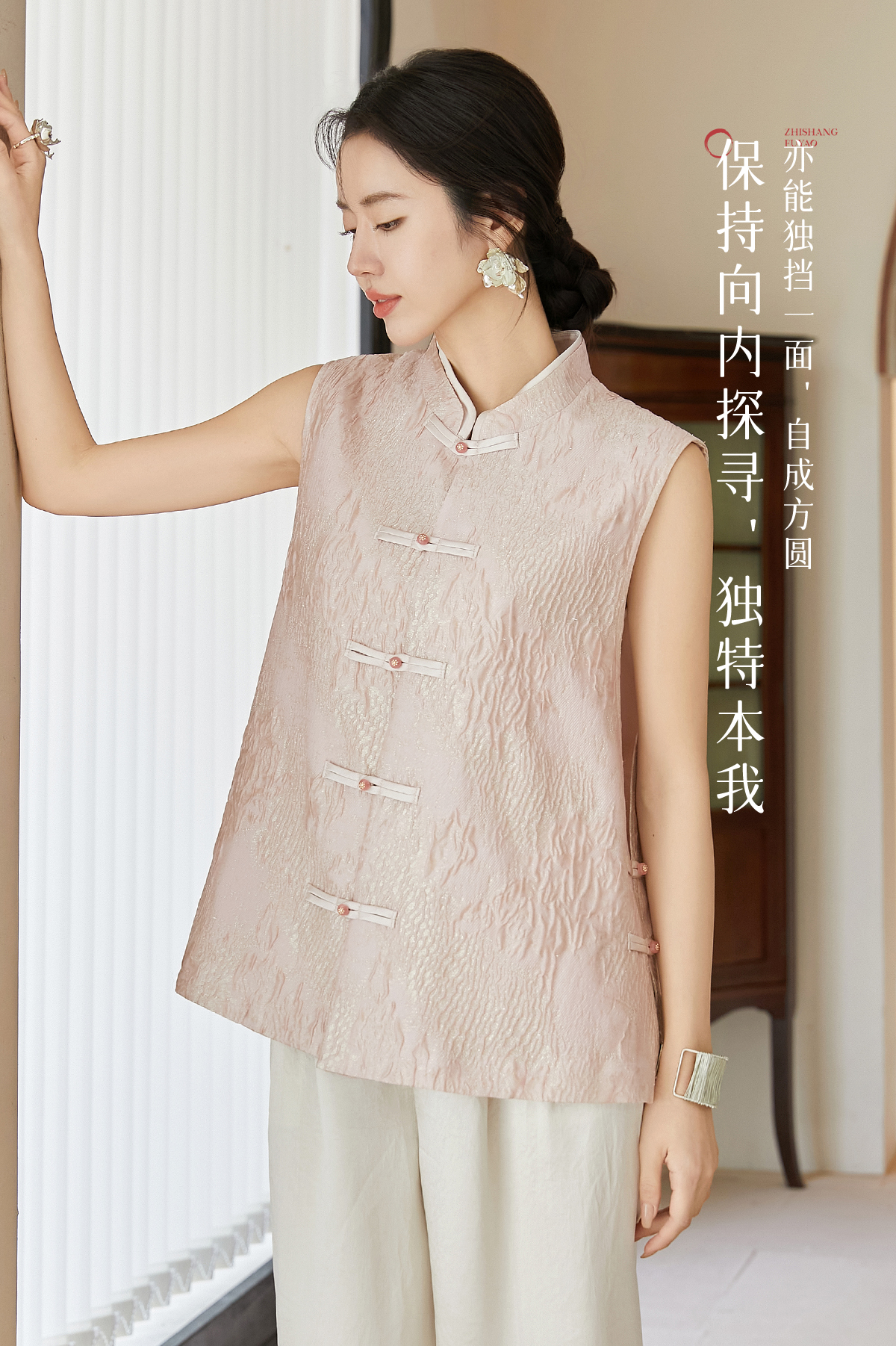 FUYAO扶摇【典雅东方美】新中式马甲女粉色浪漫立领国风古朴韵味