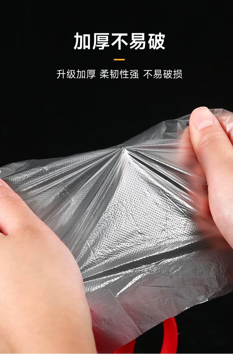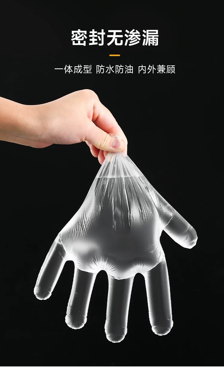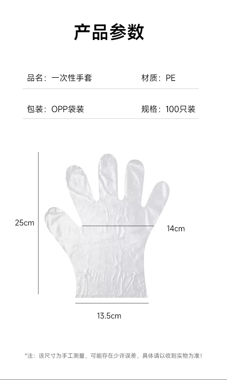 千奉 一次性手套100只 加厚食品级PE餐饮塑料薄膜家用透明手套/包