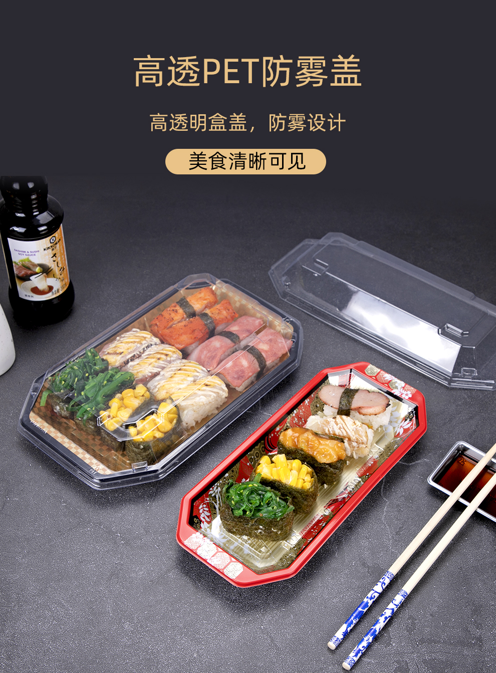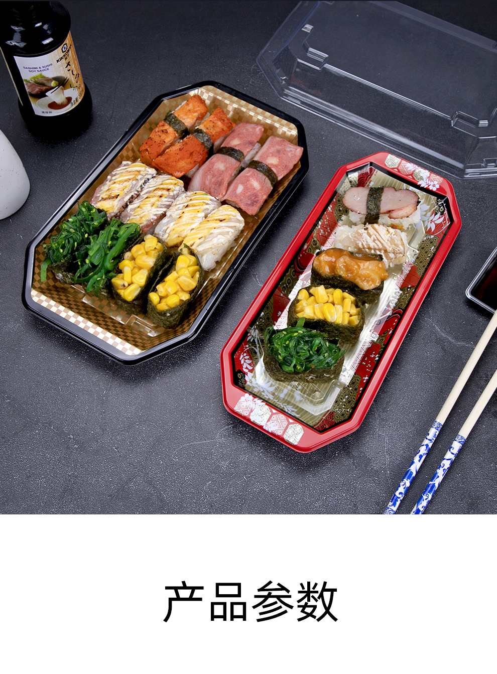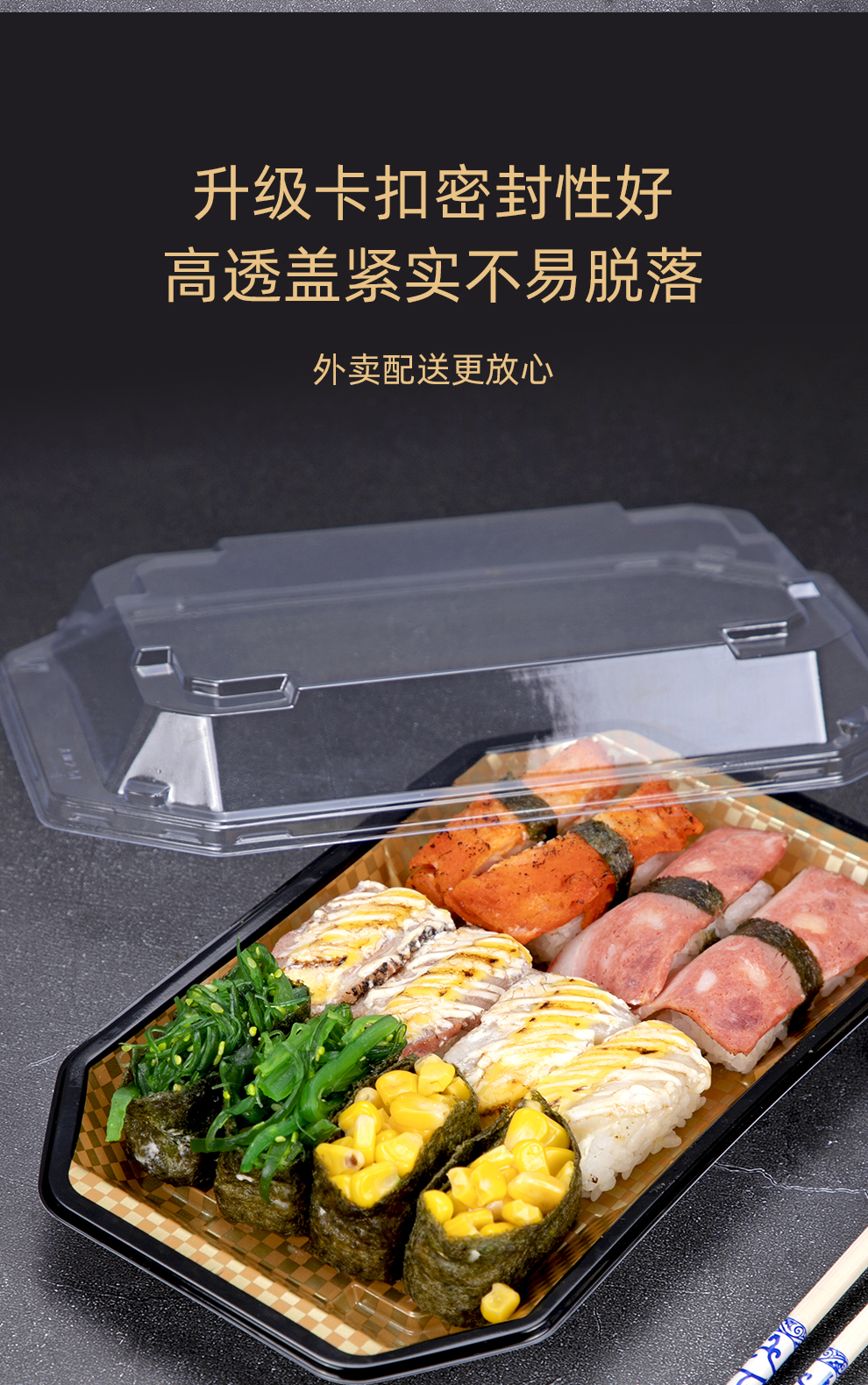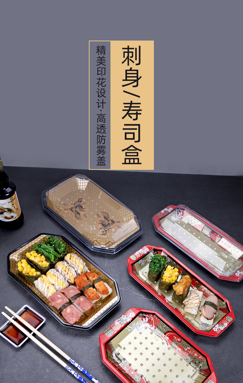 喇叭花一次性寿司打包盒商用外卖摆摊带盖餐具印花刺身三文鱼餐盒