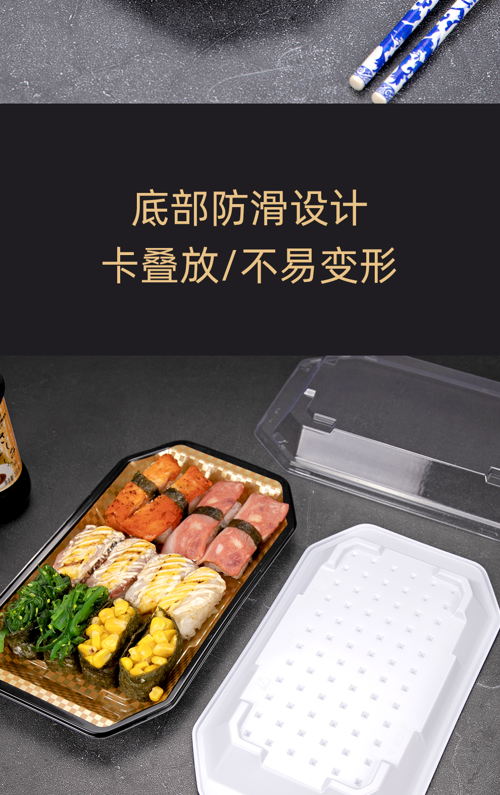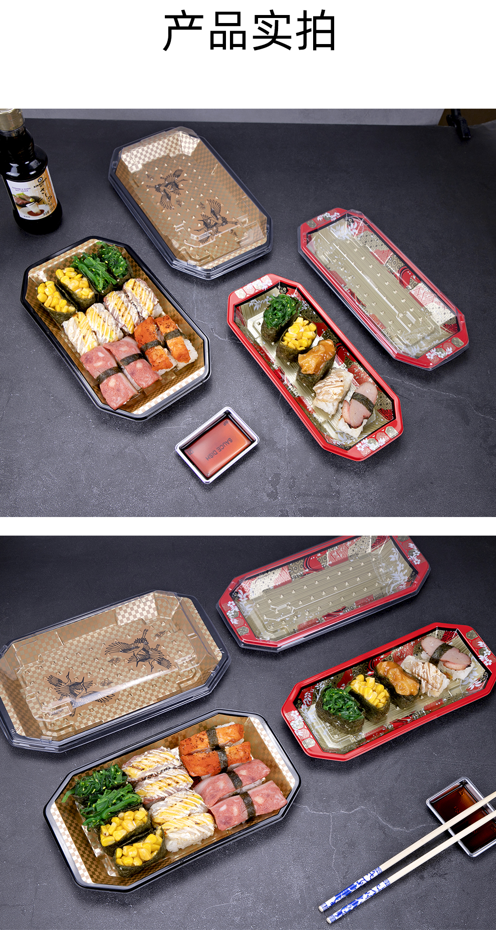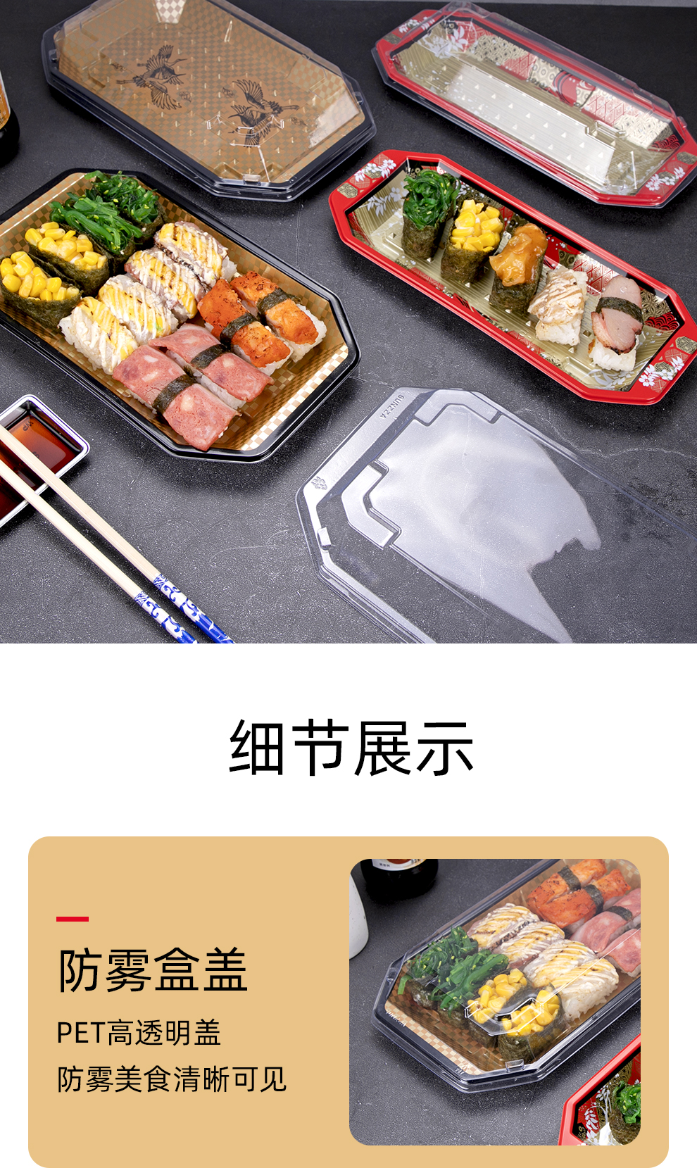 喇叭花一次性寿司打包盒商用外卖摆摊带盖餐具印花刺身三文鱼餐盒
