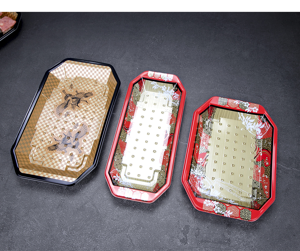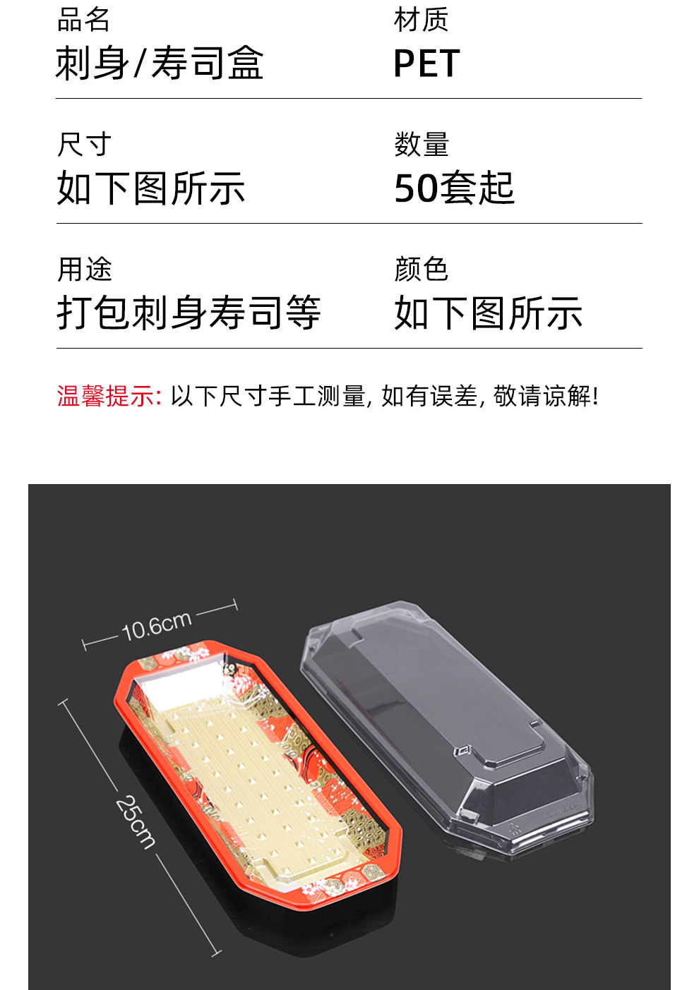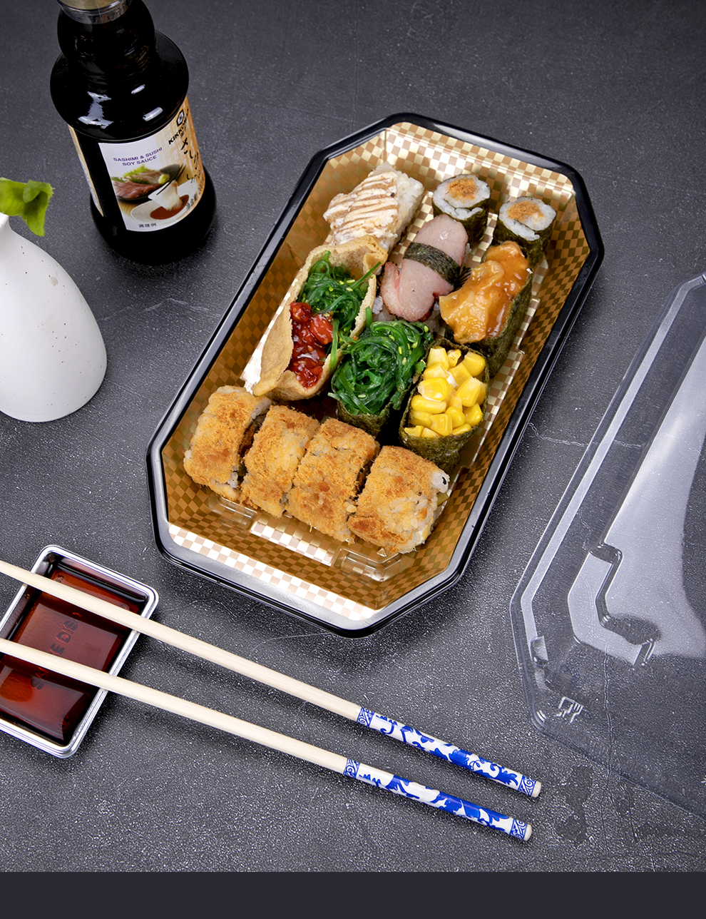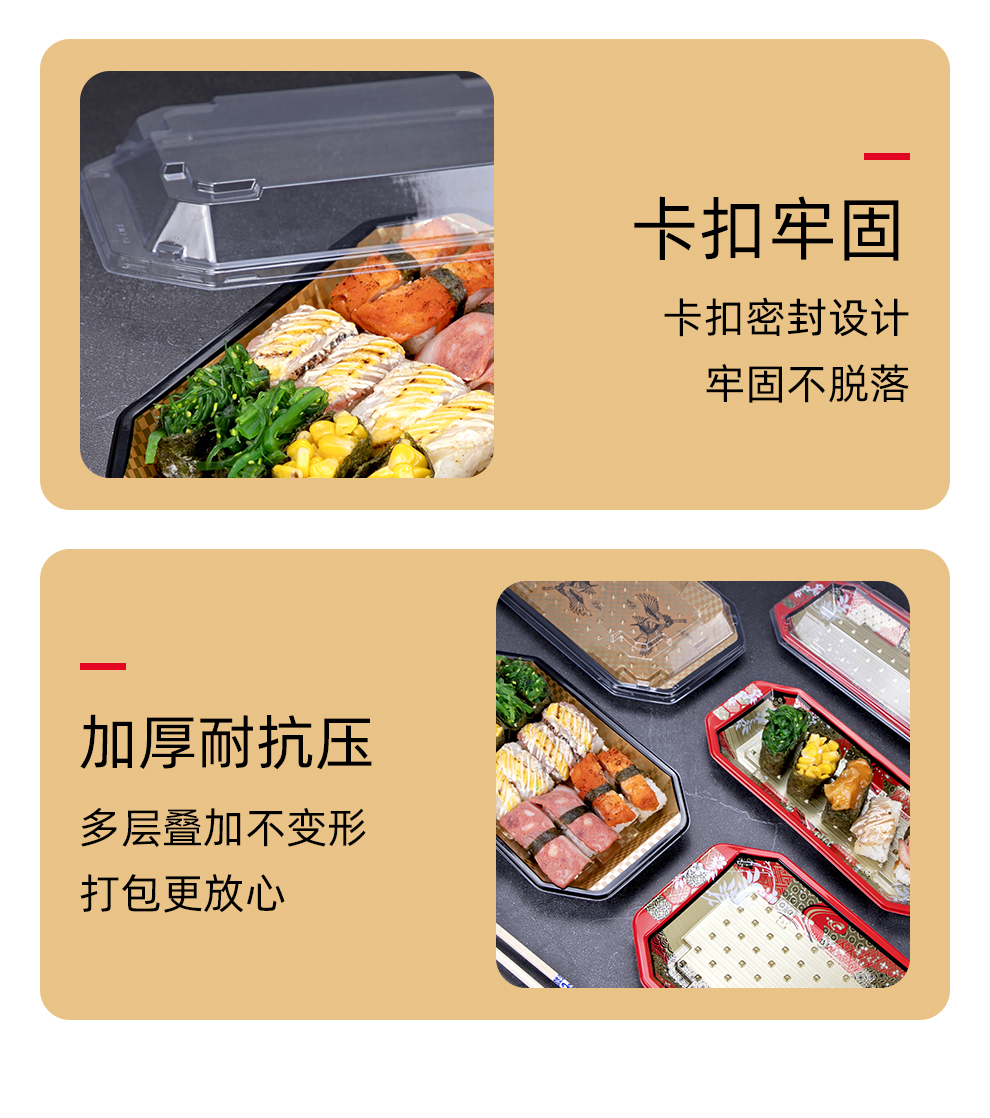 喇叭花一次性寿司打包盒商用外卖摆摊带盖餐具印花刺身三文鱼餐盒