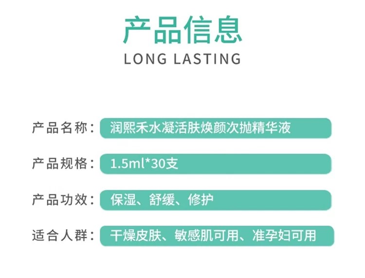 【产品名称】:润熙禾水凝活肤焕颜次抛精华液
