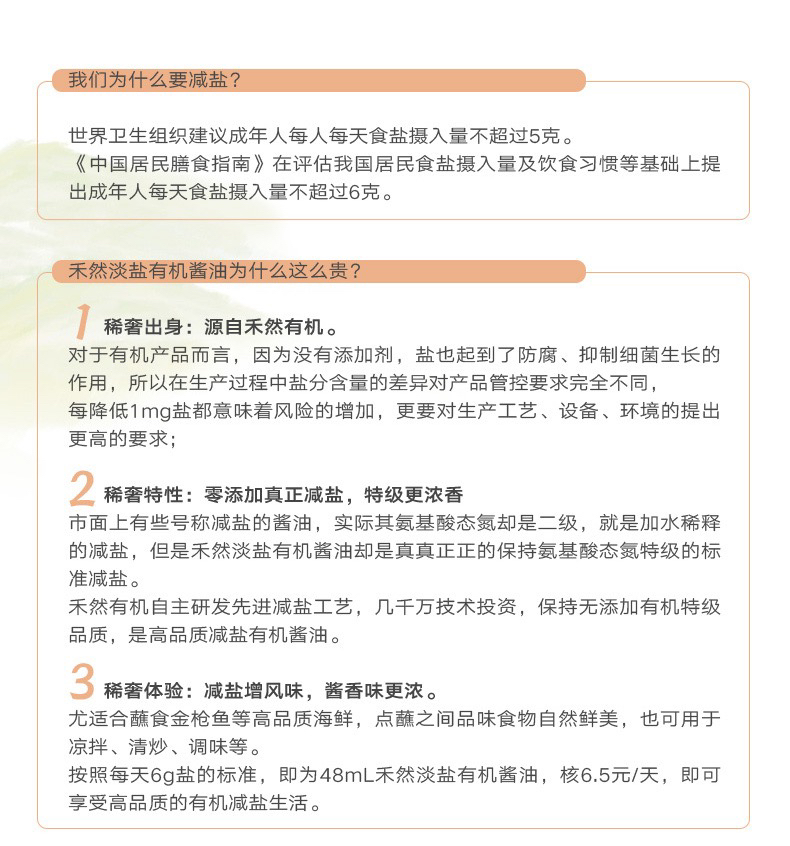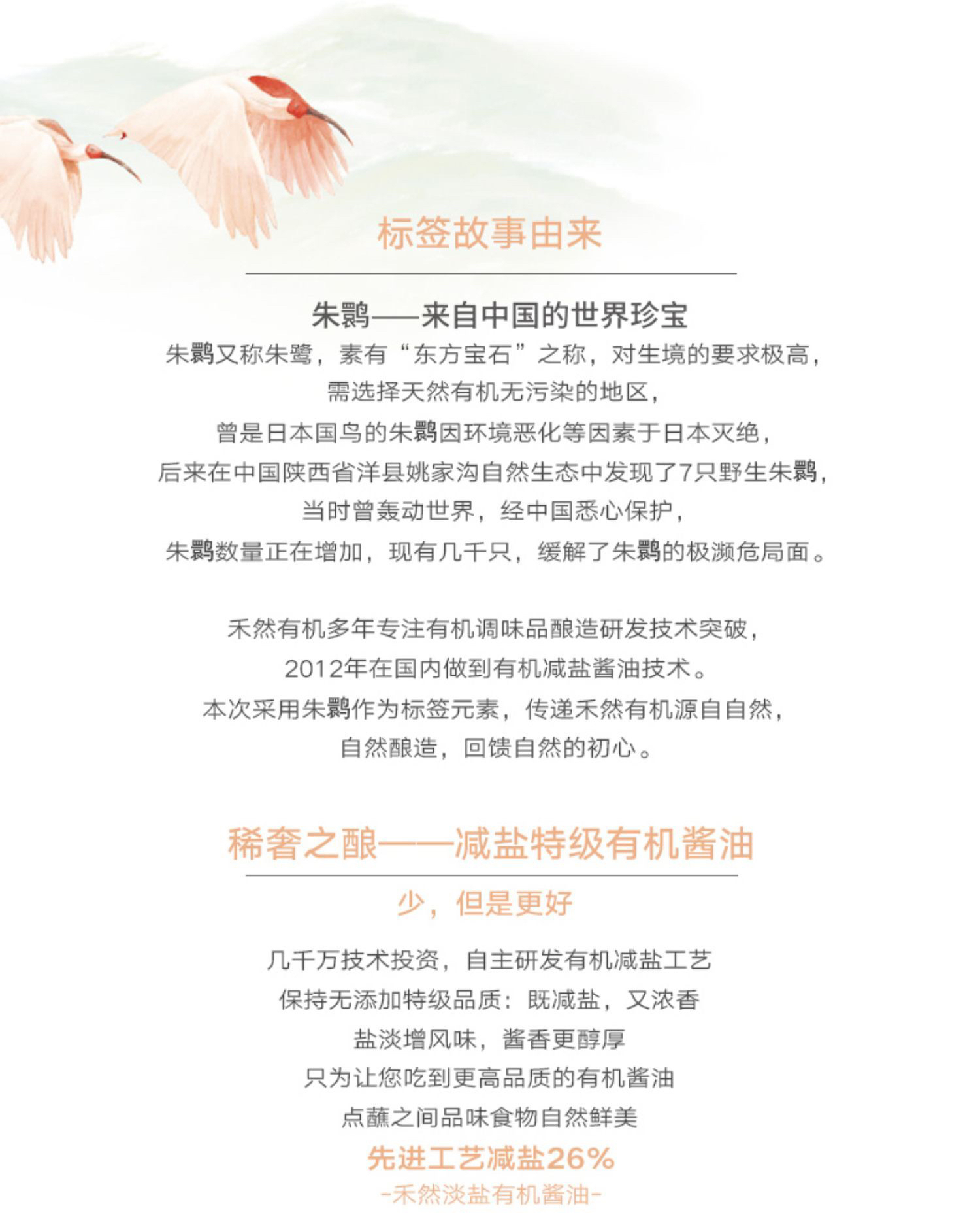 【新品上架,9折活动,原价136】禾然有机淡盐酱油 500ml*2瓶 特级生抽