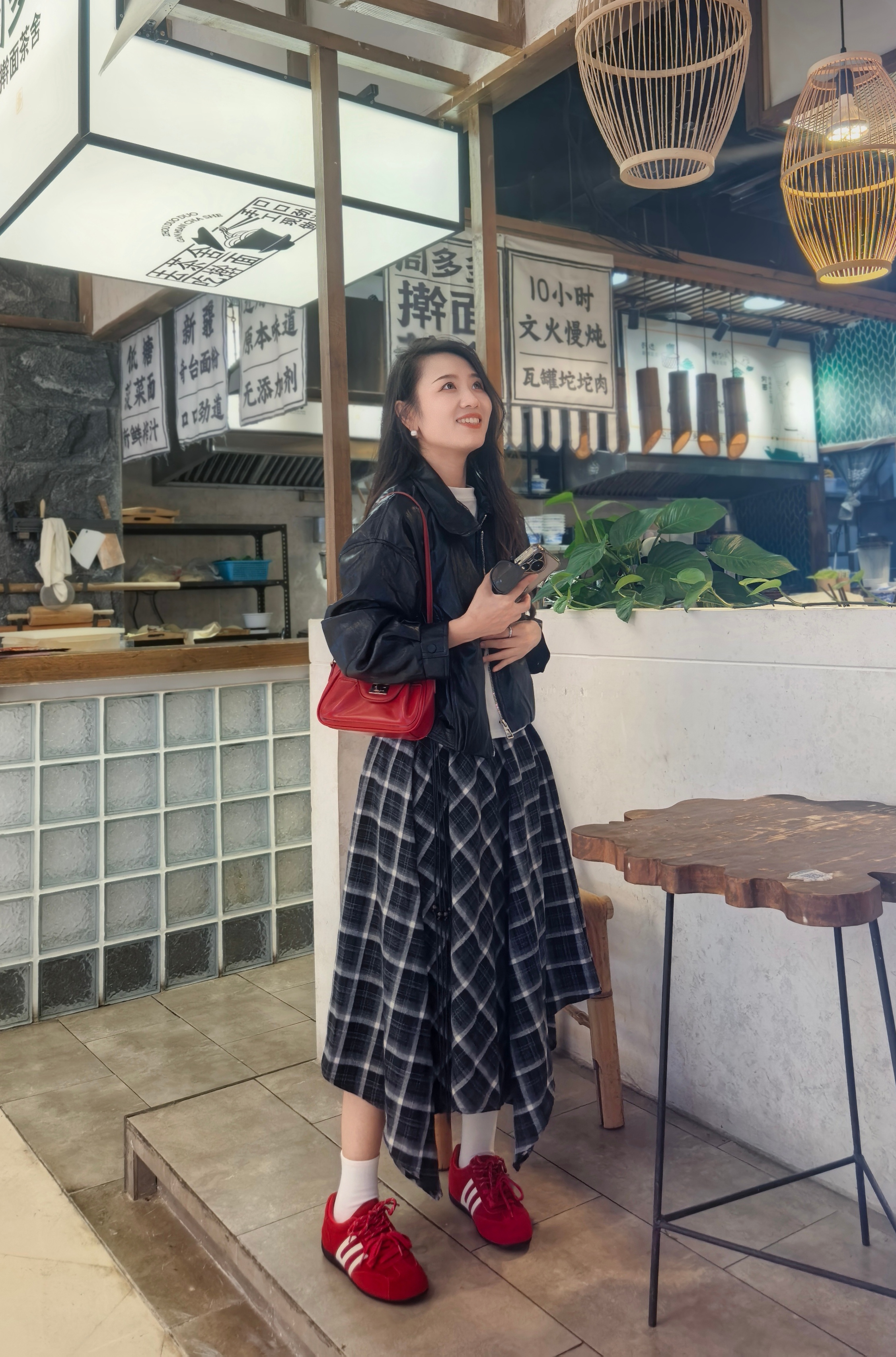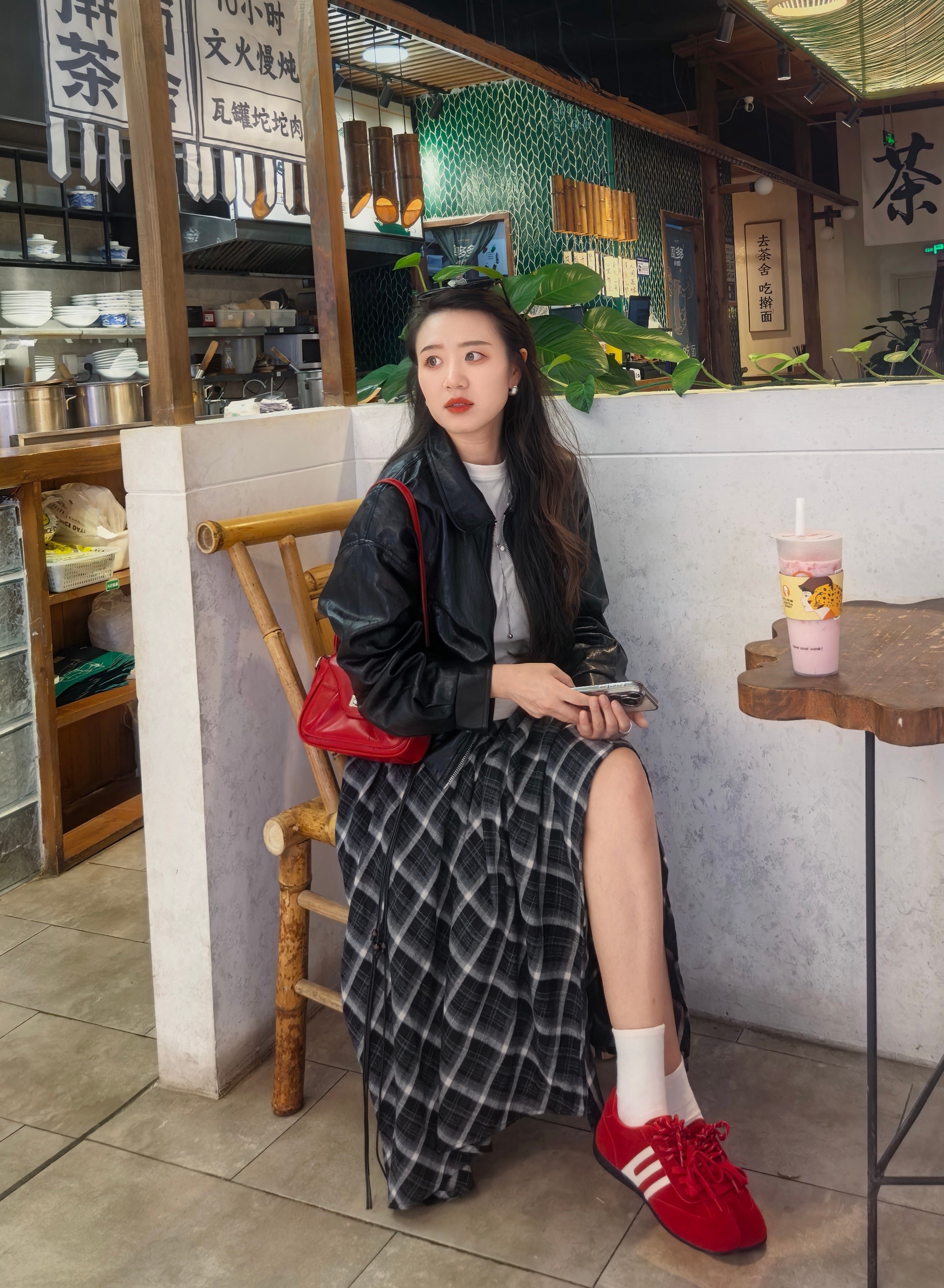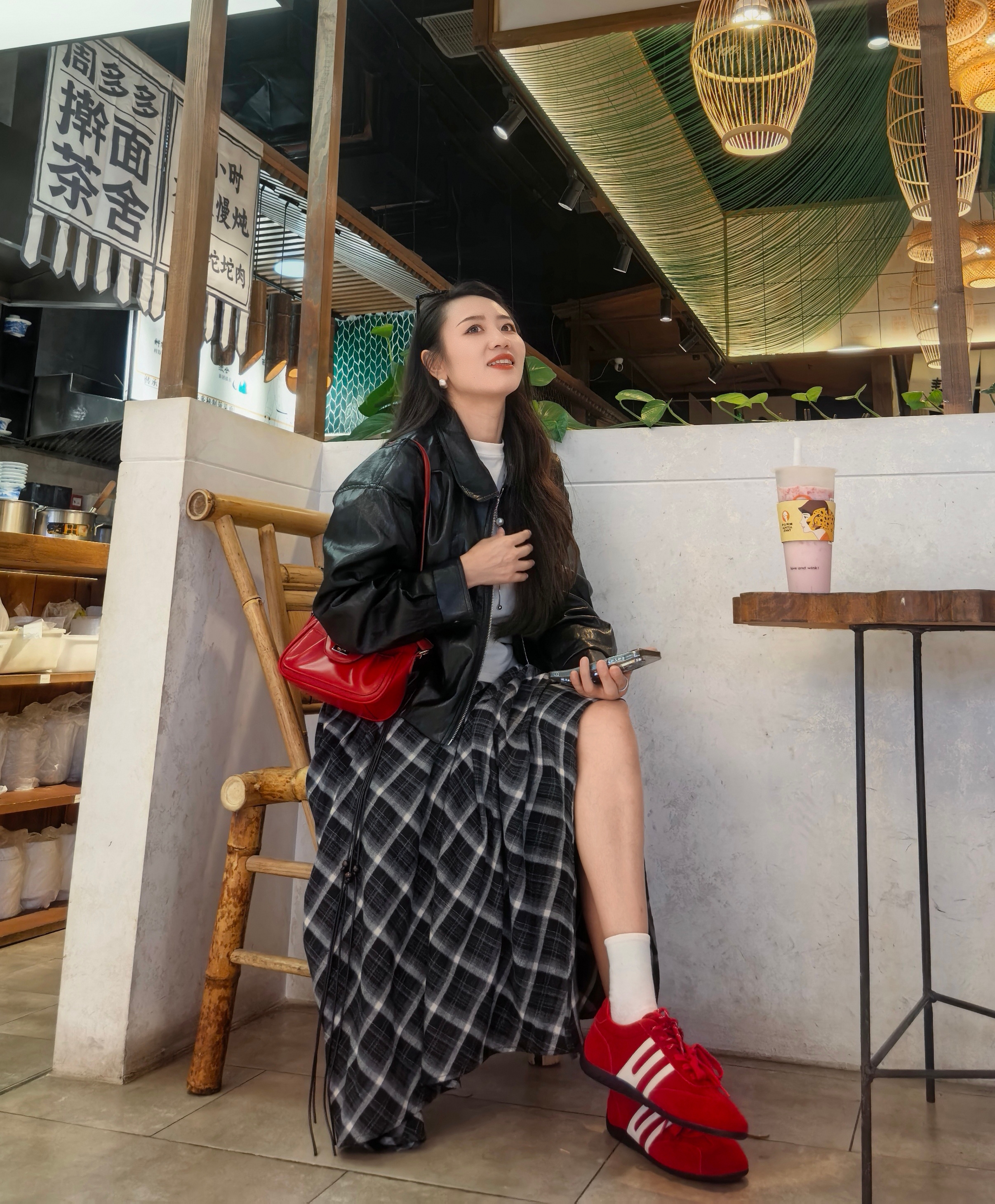 经典鲨2025秋专柜新品牛皮革网红爆款红色舒适平底德训鞋女KW313-537121