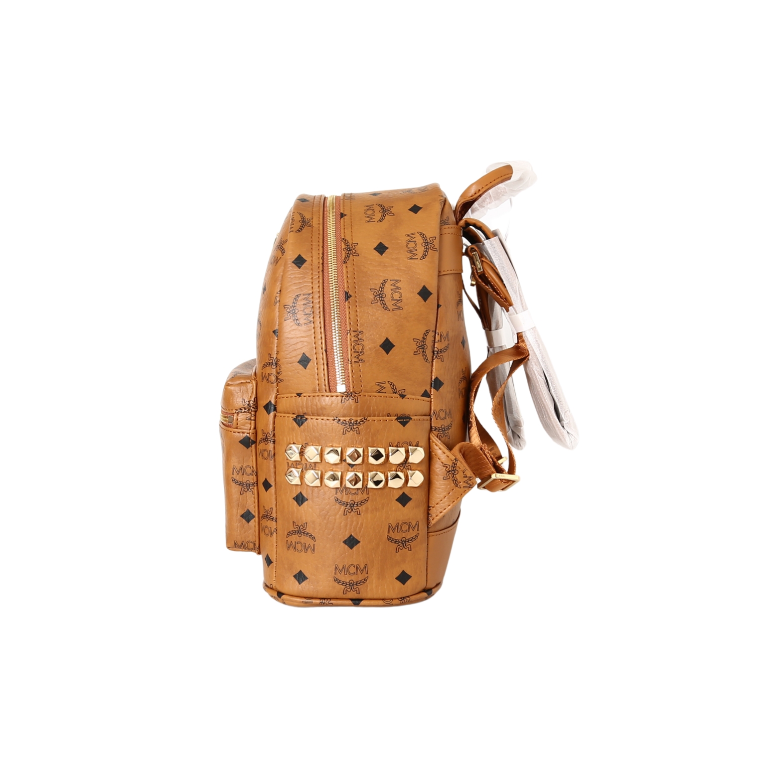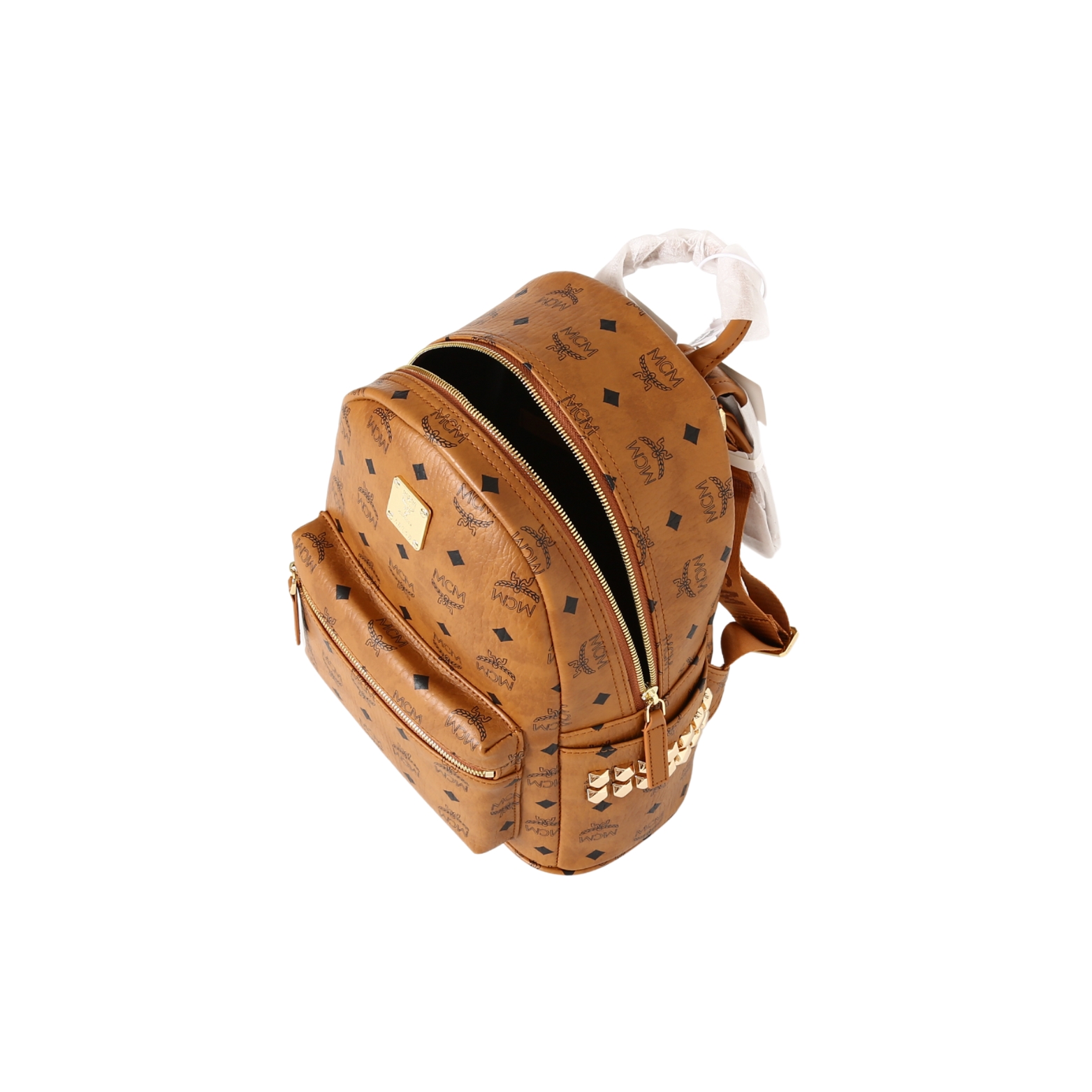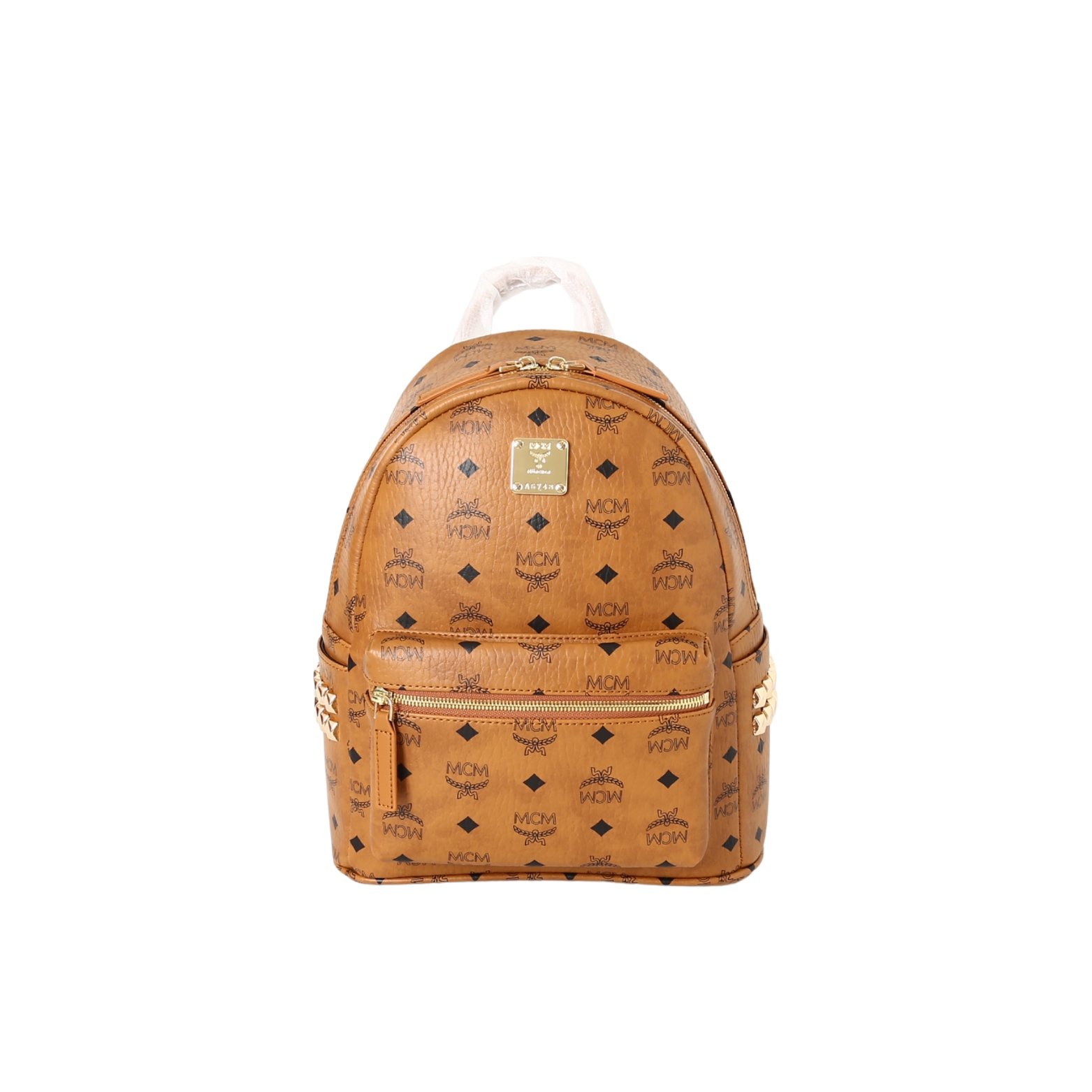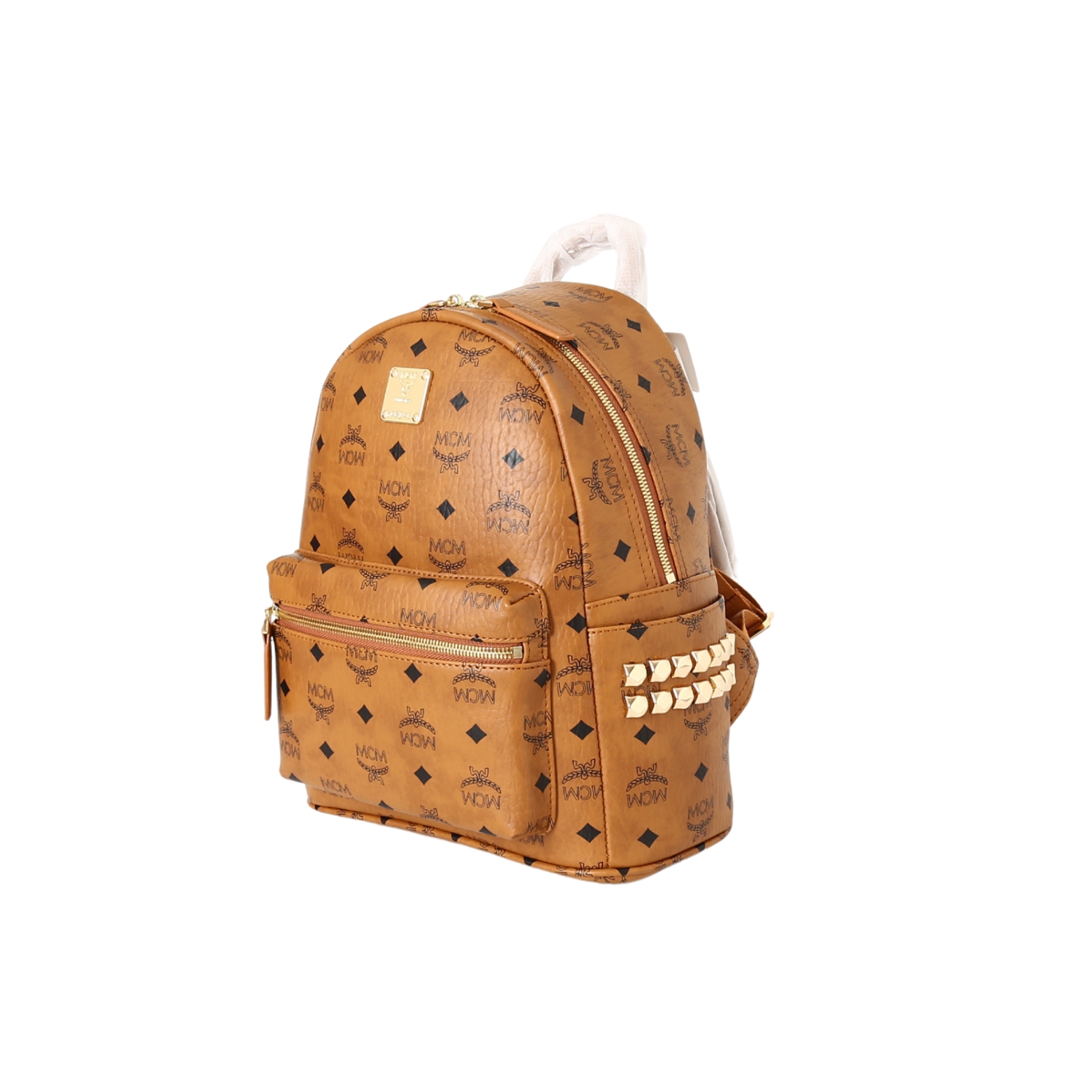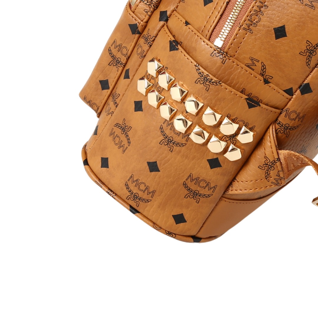 MCM Stark Visetos 经典老花双侧铆钉通勤聚会 帆布拼皮革 背包双肩包 小号 男女同款 棕色干邑色!MCM Stark Visetos 系列,以其标志性的 Visetos 涂层帆布为基,经典的图案交织着复古与现代的韵味,每一处纹理都散发着品牌独有的魅力,辨识度极高。双侧前卫的铆钉装饰,宛如暗夜中的星辰,打破常规,为背包注入硬朗帅气的风格。金属光泽与帆布质感相互碰撞,无论是漫步在繁华都市的街头,还是置身于时尚派对的现场,它都能让你瞬间成为众人瞩目的焦点,轻松展现与众不同的个性态度。主体选用耐磨且防水的 Visetos 涂层帆布,面对日常出行的各种状况,它都能从容应对,不易磨损,无惧风雨侵袭,始终保持完美外观。内里搭配柔软的仿纳帕革或聚酯纤维内衬,不仅提升了物品放置时的舒适度,更增添了一份奢华质感。精心挑选的材质,经 MCM 精湛工艺的雕琢,缝线均匀细密,每一处细节都处理得恰到好处,彰显出品牌对品质的执着追求,让这款背包在美观的同时,拥有长久的耐用性。这款背包堪称设计巧妙的典范。通过灵活调节肩带,它能在斜挎包、双肩背包、腕挎包、手提包等多种形态间自由切换,满足你在不同场景下的使用需求。无论是匆忙的通勤路上,还是悠闲的聚会时光,亦或是充满未知的旅行途中,它都能以最合适的方式陪伴你。多个实用口袋分布合理,主袋内设有拉链口袋与开放式口袋,方便分类存放手机、钱包、钥匙等随身小物;前部的磁扣翻盖口袋,让你能够快速拿取常用物品;侧边外部的平口袋,可放置雨伞、水杯等,贴心设计,尽显便捷。此外,部分款式还配备了内部笔记本电脑隔层,妥善保护你的电子产品,为你的工作与学习提供便利。尺寸:长26cm 宽13cm 高33cm