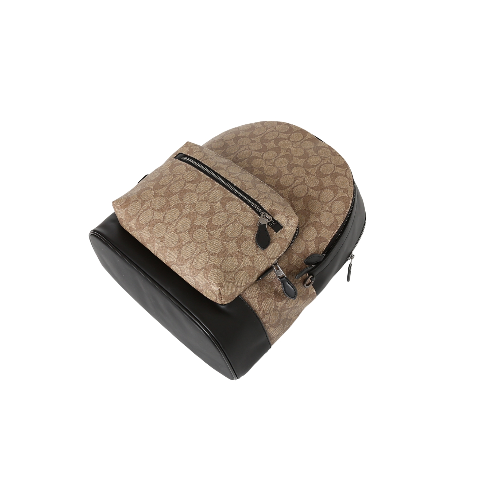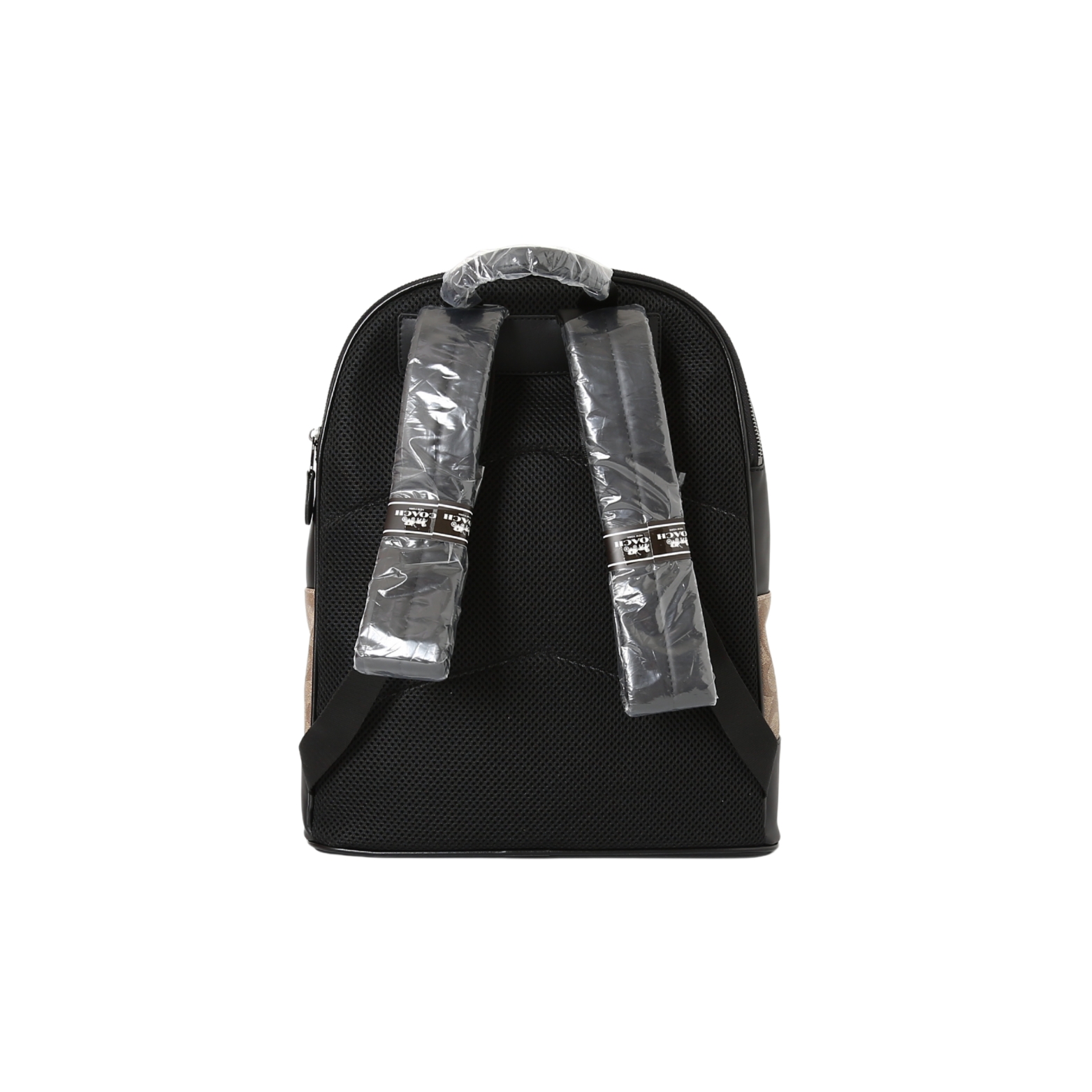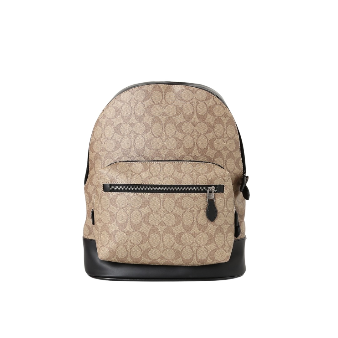 COACH蔻驰 West 32 经典老花拉链开合 PVC拼牛皮革拼织物 背包双肩包 大号 男女同款情侣款 卡其色!