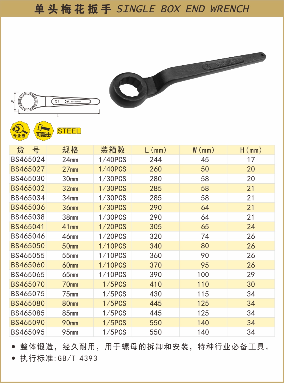 波斯单头梅花扳手 BS465024/465027/465030/32/34/465036/465038/465041/465046/465050/55/60/65/70/75/80/85/90/95