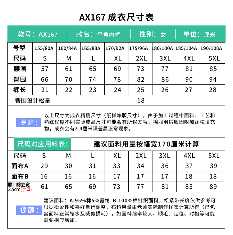 裁缝学苑AX167平角内裤纸样女装运动中腰四角裤防走光女式短裤样板