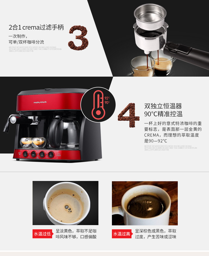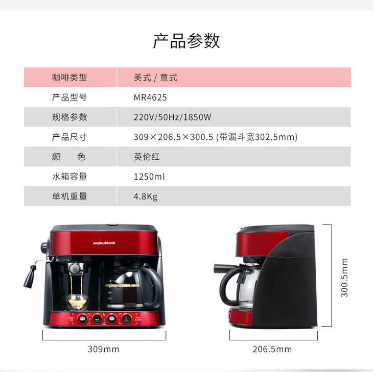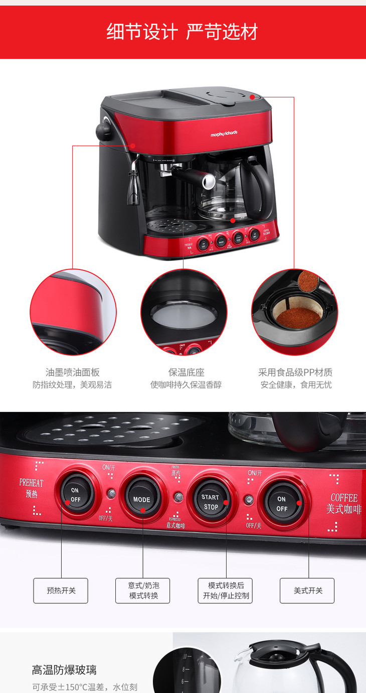 *MORPHY RICHARDS/摩飞电器 MR4625半自动美式意式二合一咖啡机