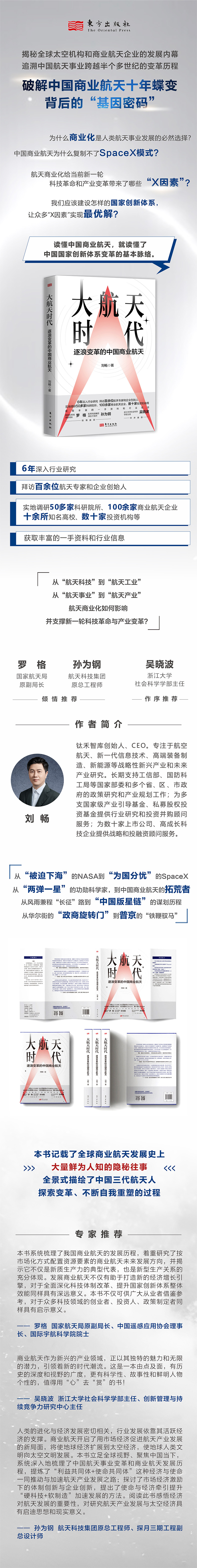本书正是对这一伟大时代的深刻洞察和系统总结。作者认为,我们正在进入一个崭新的“大航天时代”,科学家和创业家们携手造梦,依托半个多世纪积累的航天科技工业体系铸箭造星、再问苍穹,推动人类对太空的认知和利用边界不断延伸。相比于欧美等发达国家,中国的商业航天发展起步虽晚,但发展迅速,已经成为国家战略性新兴产业体系中快速崛起的新质生产力中的一支重要力量。