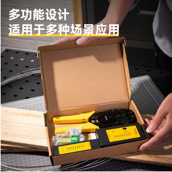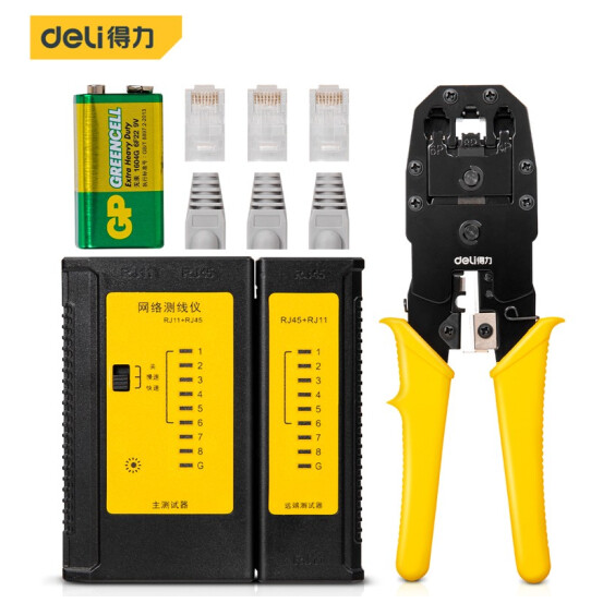 得力DL380004网线钳牛皮盒套装4件套(黄)