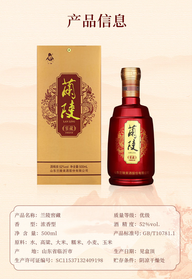 兰陵52度窖藏浓香型白酒500ml*2瓶纯粮酒礼盒送礼自饮喜宴用酒