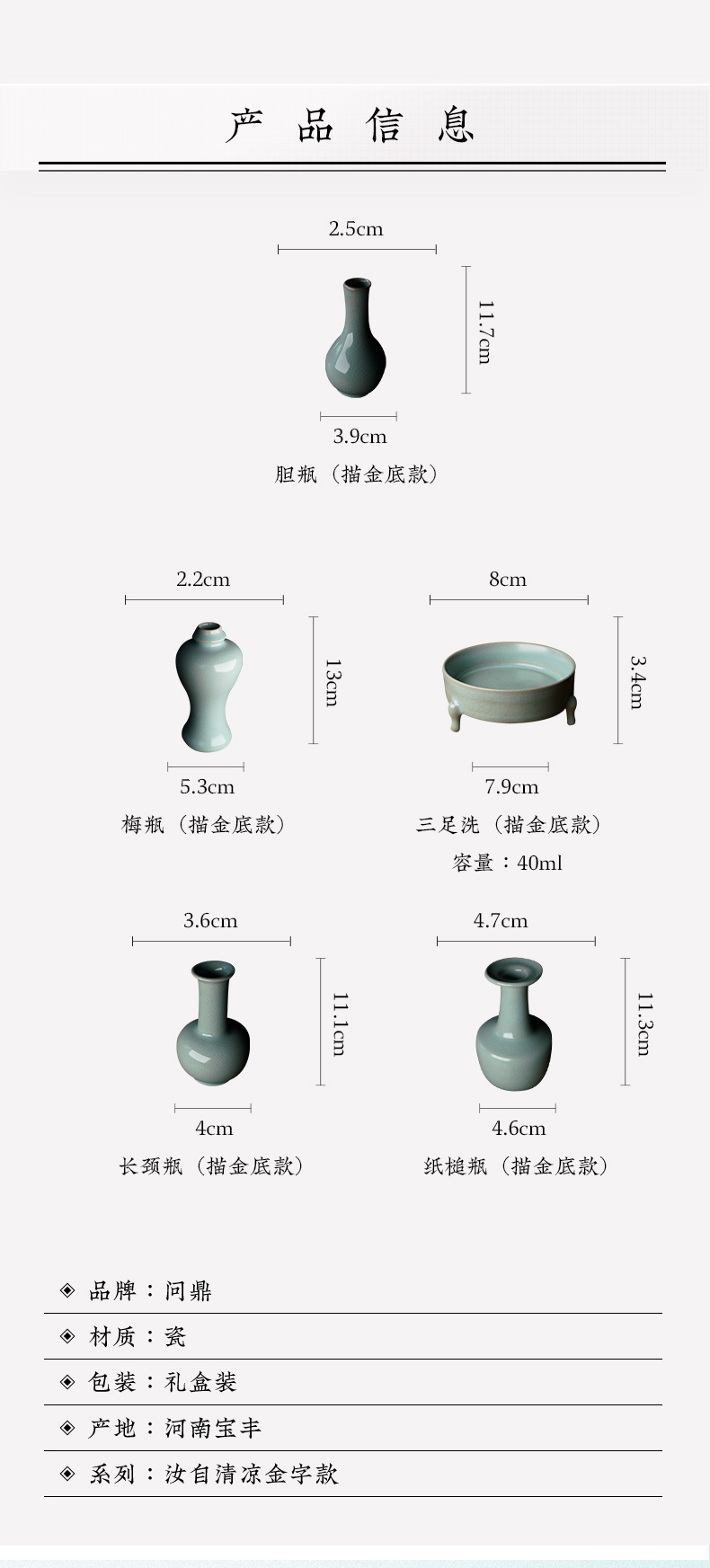 问鼎汝自清凉胆瓶 梅瓶 三足洗 长颈瓶 纸槌瓶(缺货)
