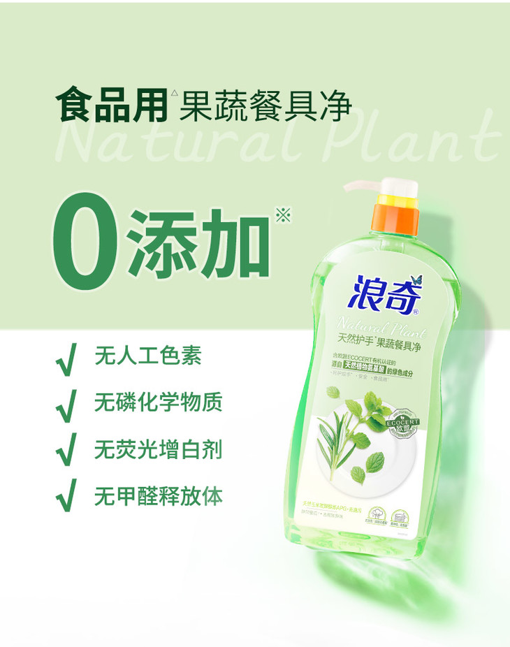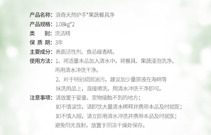 浪奇天然护手果蔬餐具净1.08kg*2瓶