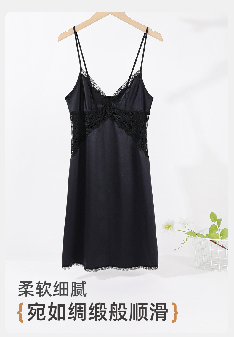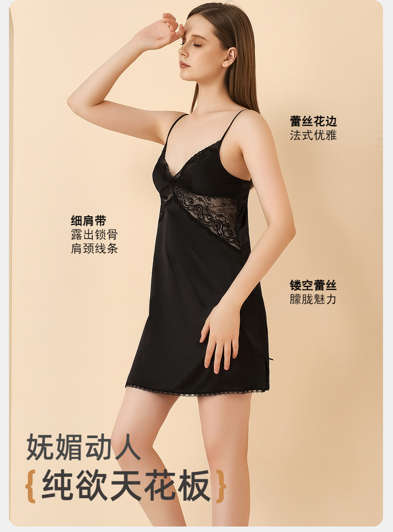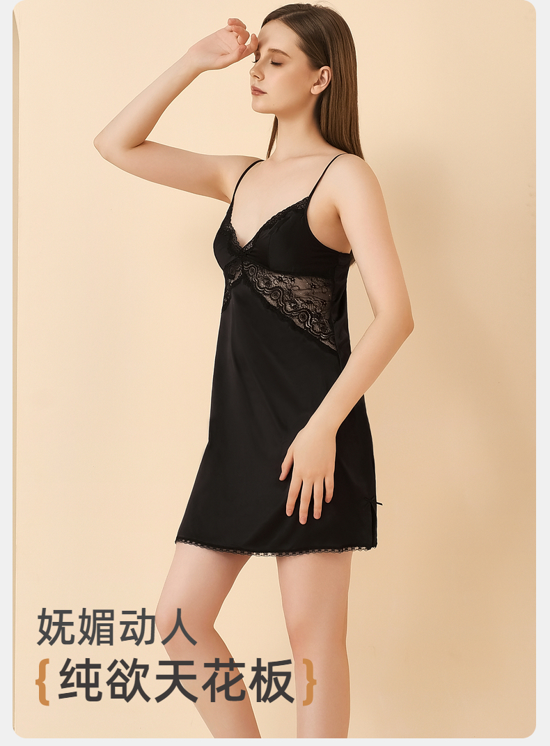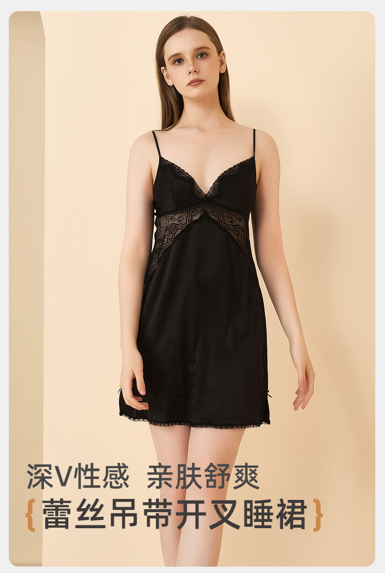 雅黛俪夏季冰丝吊带内衣睡衣睡裙女性感蕾丝纯欲风无痕美背家居服