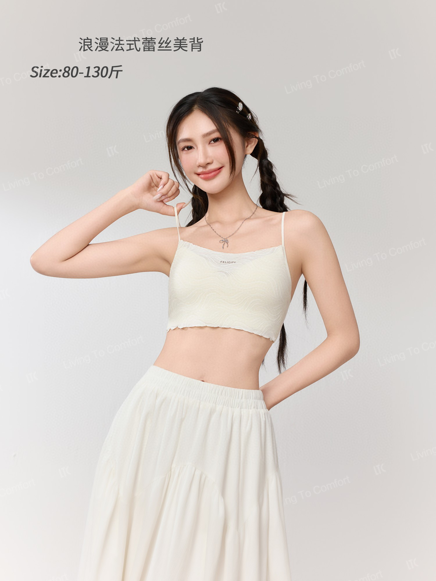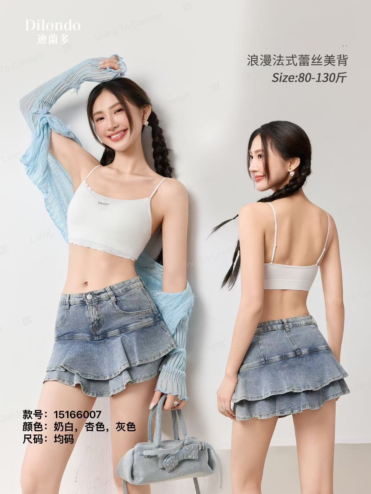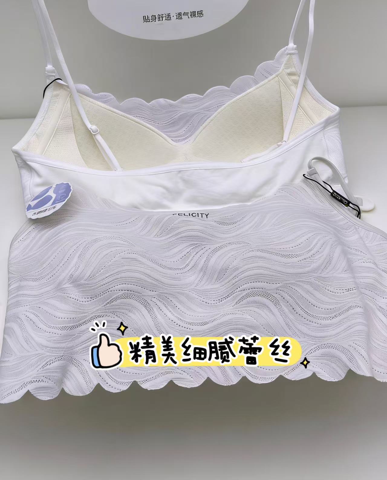 法式蕾丝托胸固定杯美背背心15166007