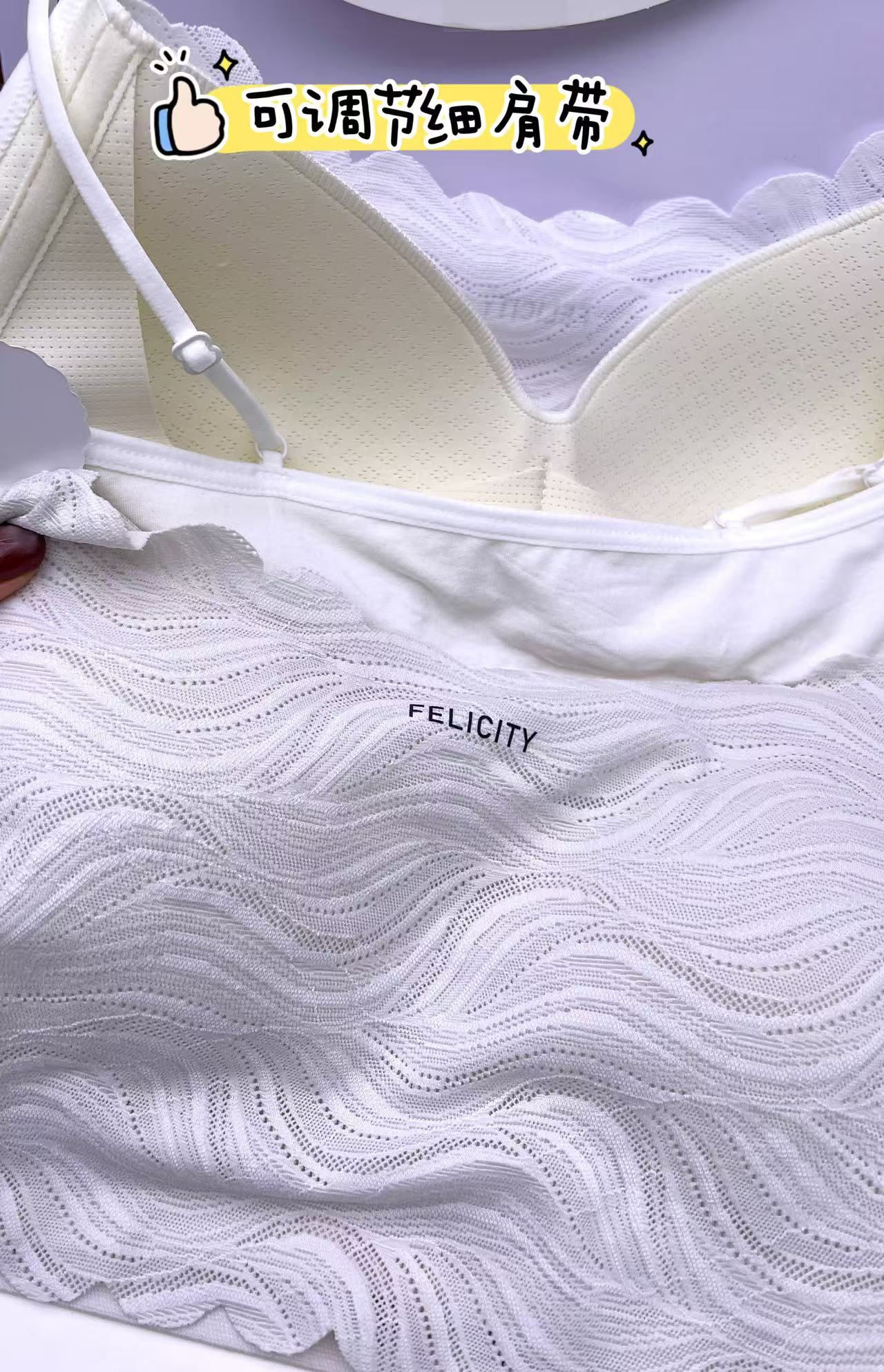 新品大胸薄杯时尚蕾丝宽肩带聚拢内衣女无磁收副乳调整无钢圈文胸2118449
