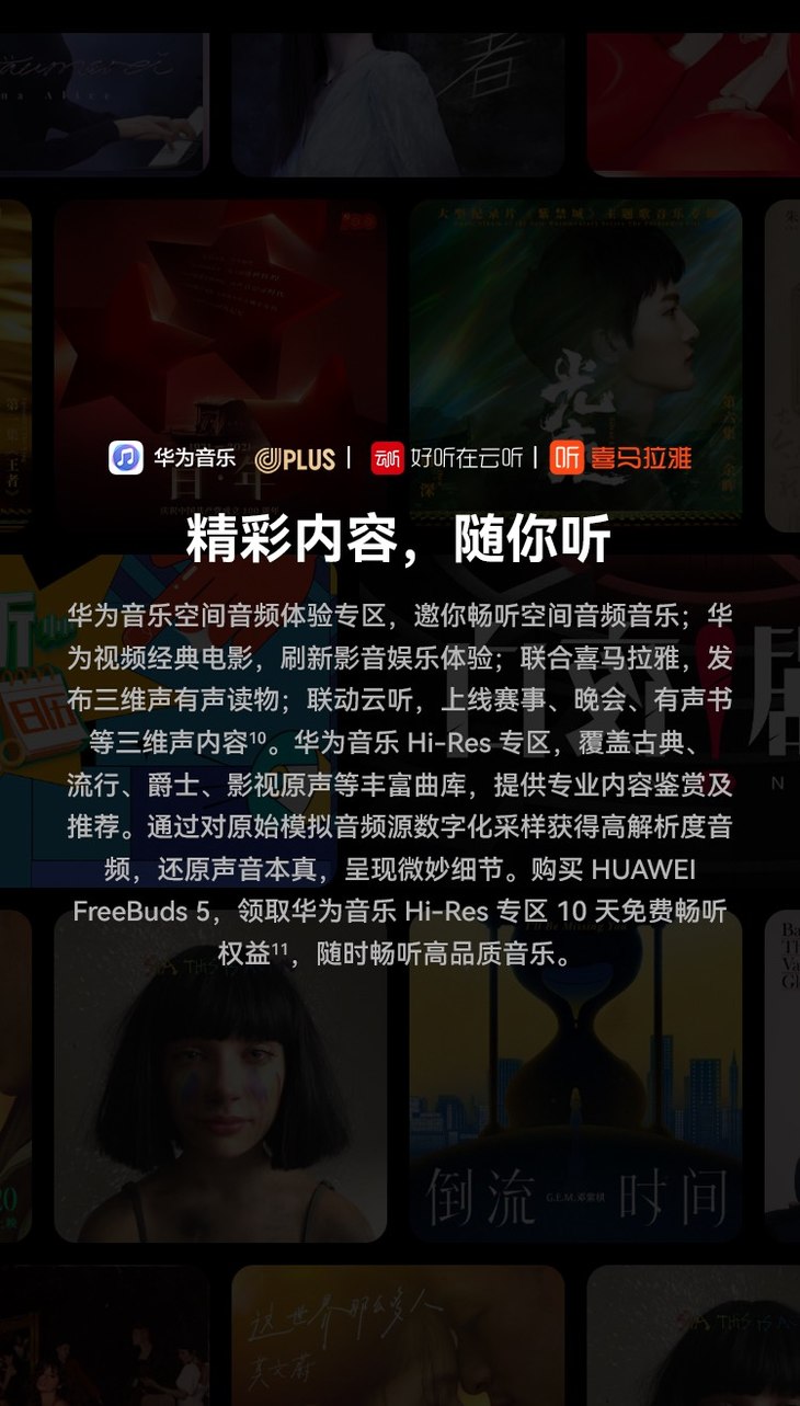 华为FreeBuds 5 至臻版 真无线蓝牙运动耳机 无线充版 半入耳式 舒适降噪 超级快充