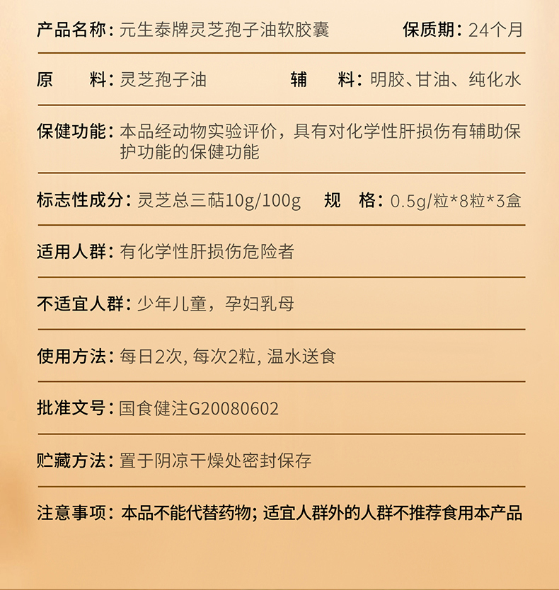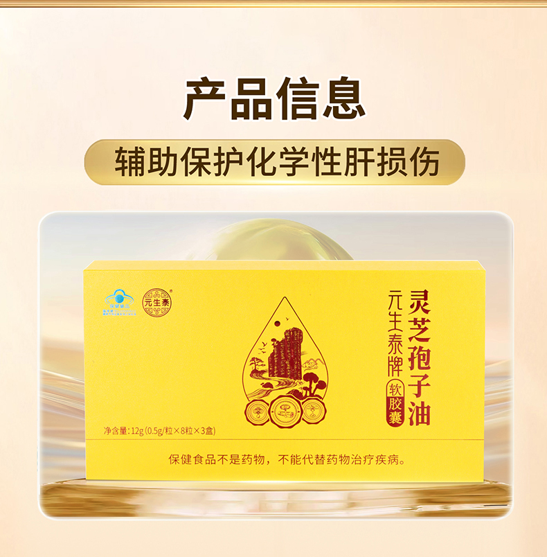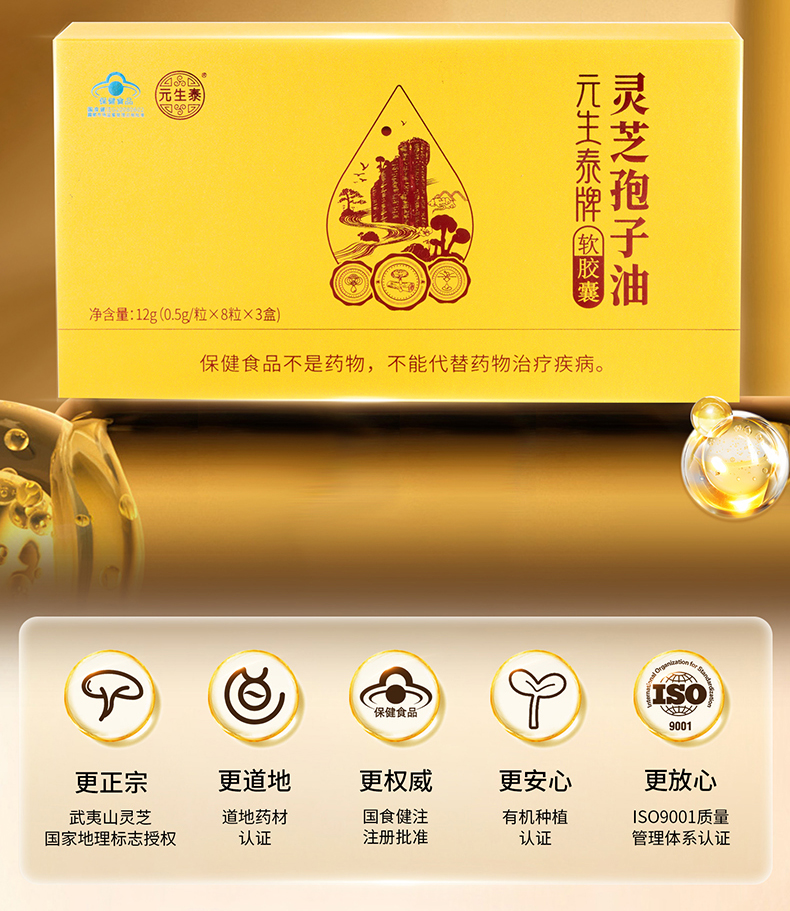 【畅销17年】元生泰牌灵芝孢子油软胶囊0.5g*24粒保肝护肝礼盒 萃取破壁灵芝孢子粉精华中老年人营养滋补保健品